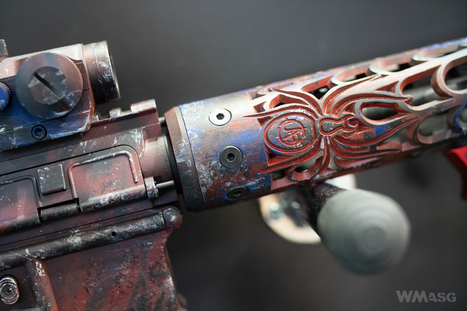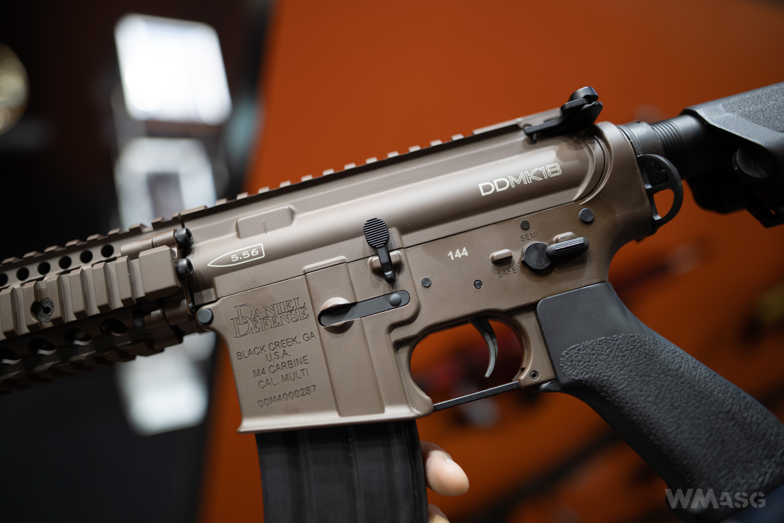 W ekspozycji znaleźliśmy między innymi niemal zewnętrznie idealnie wykonaną replikę karabinka Daniel Defense Mk18 w kolorze Mil Spec +( również palne modele DD są dostępne w tym kolorze).