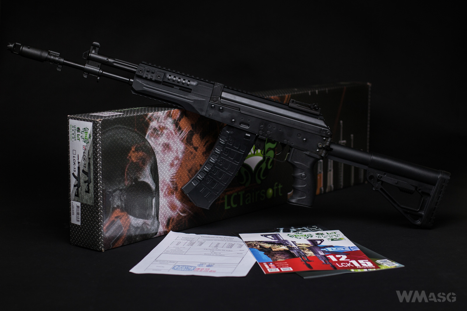 Zestaw jest bardzo skromny. Poza repliką i magazynkiem otrzymujemy jedynie indywidualną metryczkę konkretnego egzemplarza z fabrycznym pomiarem prędkości wylotowej, dwujęzyczną "obrazkową" instrukcją obsługi oraz składany katalog wyrobów LCT. Warto podkreślić, że na krótszym boku pudła przedstawiono dwie repliki oznaczone jako LCK-12 i LCK-15 z "checkboxem" przy każdej. W sprzedaży będą obie wersje: AK-12 i AK-15. W oryginale różnią się amunicją, do której są przystosowane (AK-12 to 5,45x39, AK-15 7,62x39 mm). Na poniższym zdjęciu są karabinki bojowe, AK-12 u góry.