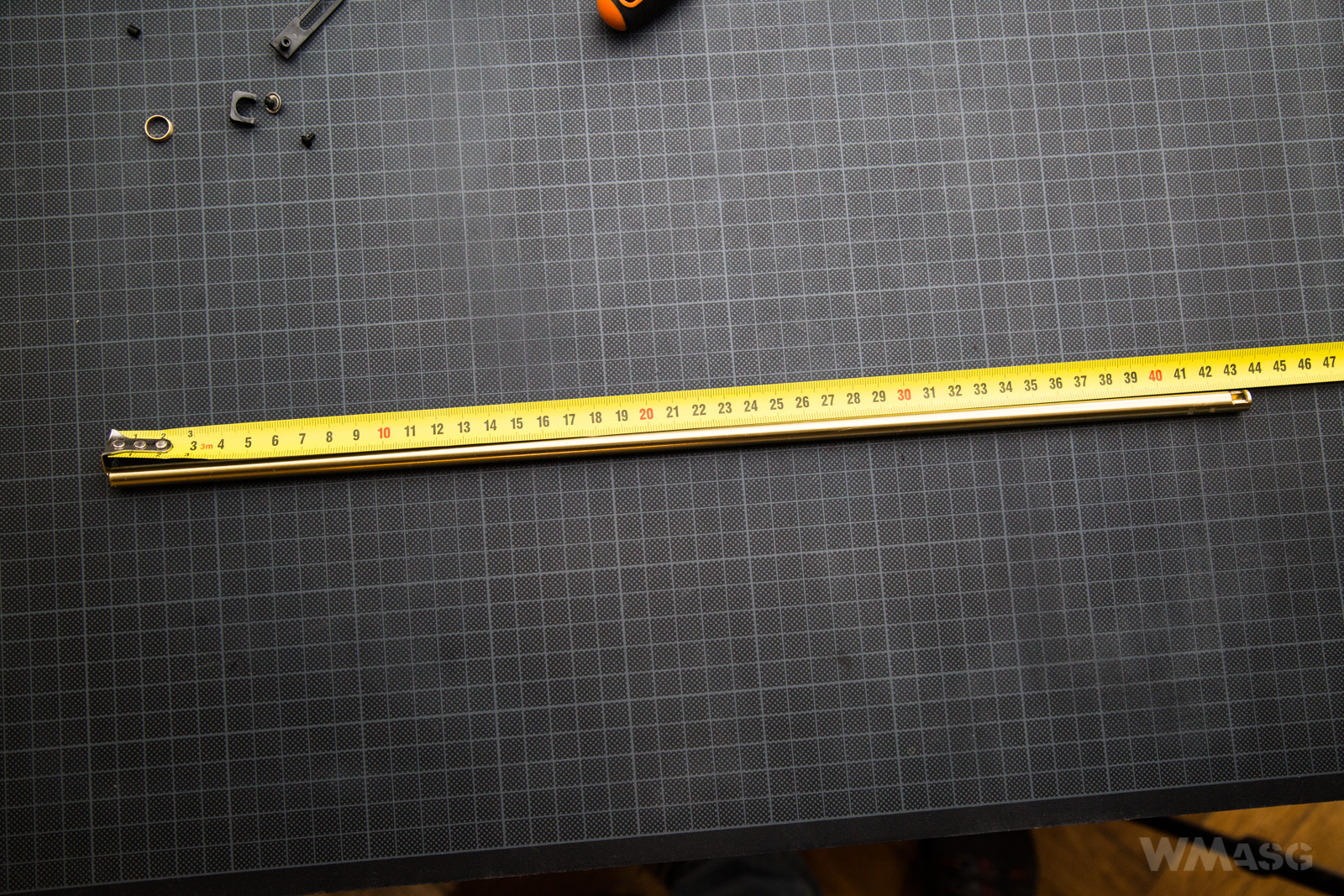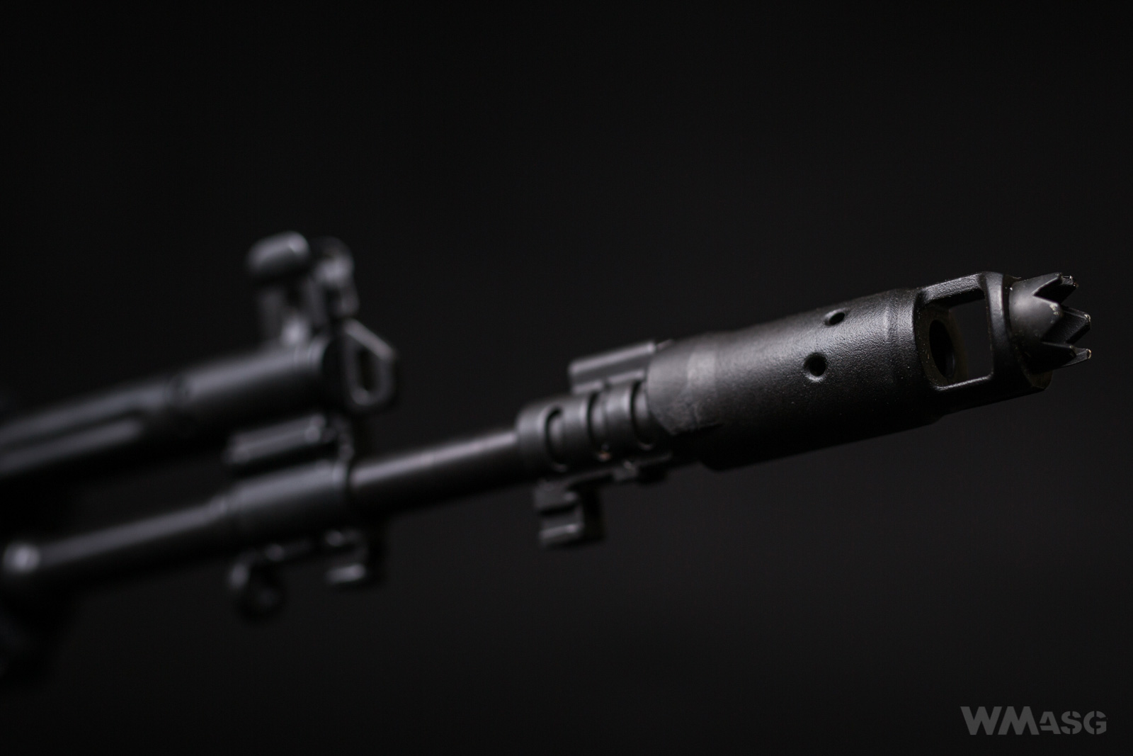 Producent nie podaje średnicy wewnętrznej lufy. Jej długość to 435 mm. Wydaje się jednak, że można zastosować także lufę o długości 455 mm - nie skończy się wtedy równo z lufa zewnętrzną, ale nie będzie wystawać z urządzenia wylotowego. Komora HopUp to standardowa komora AK.