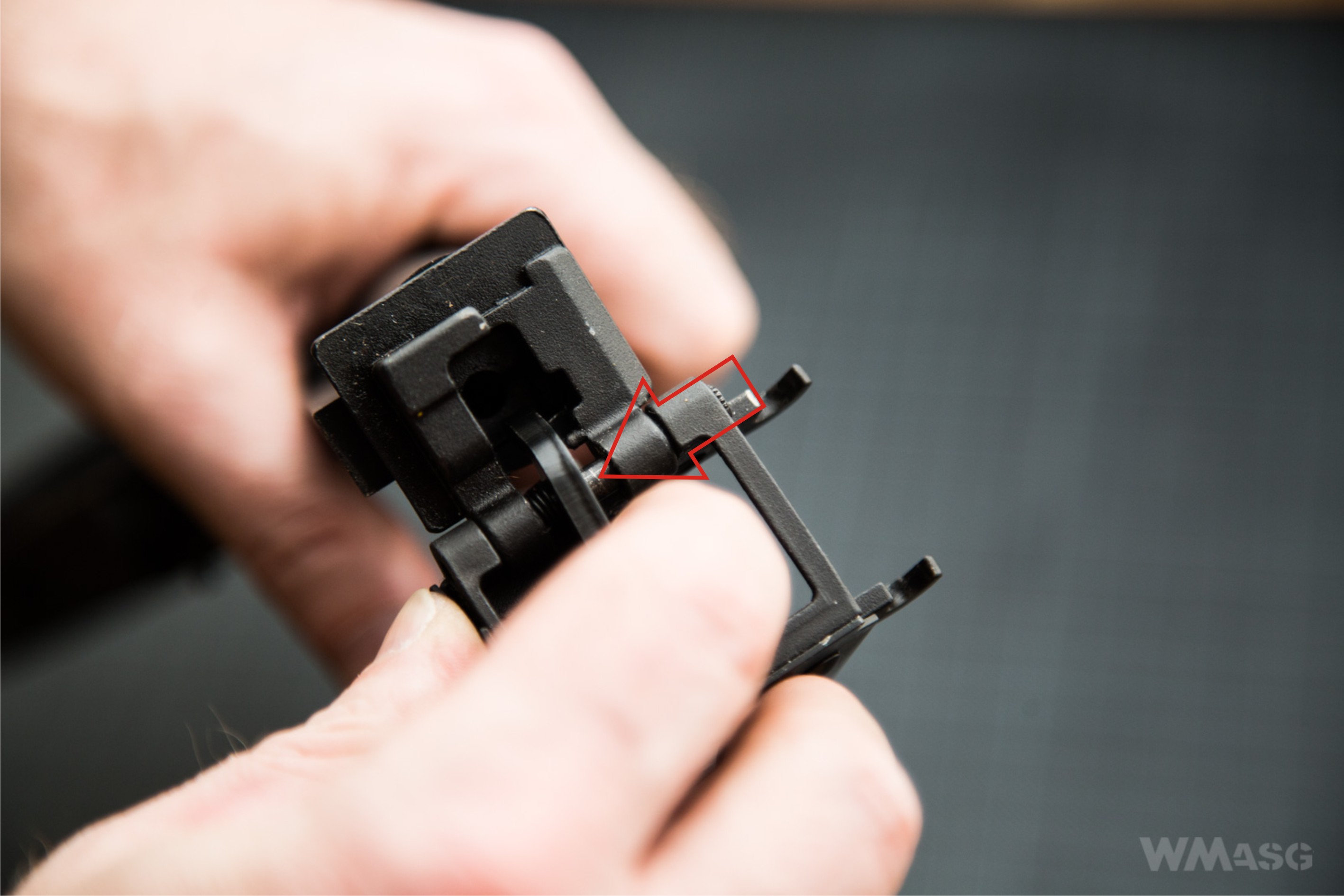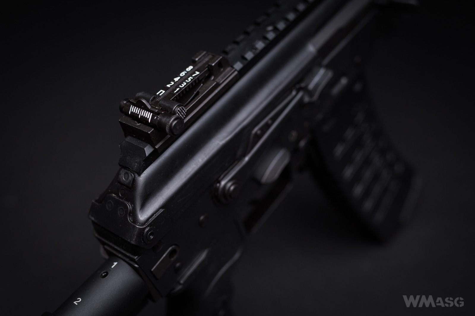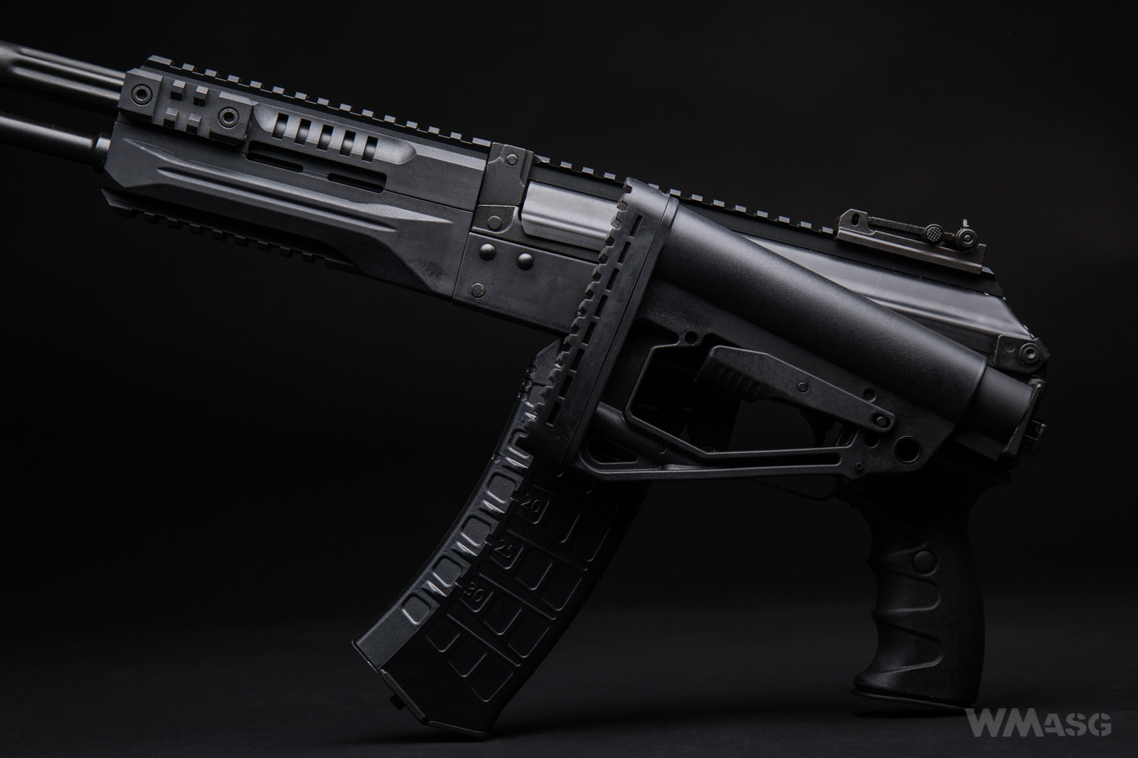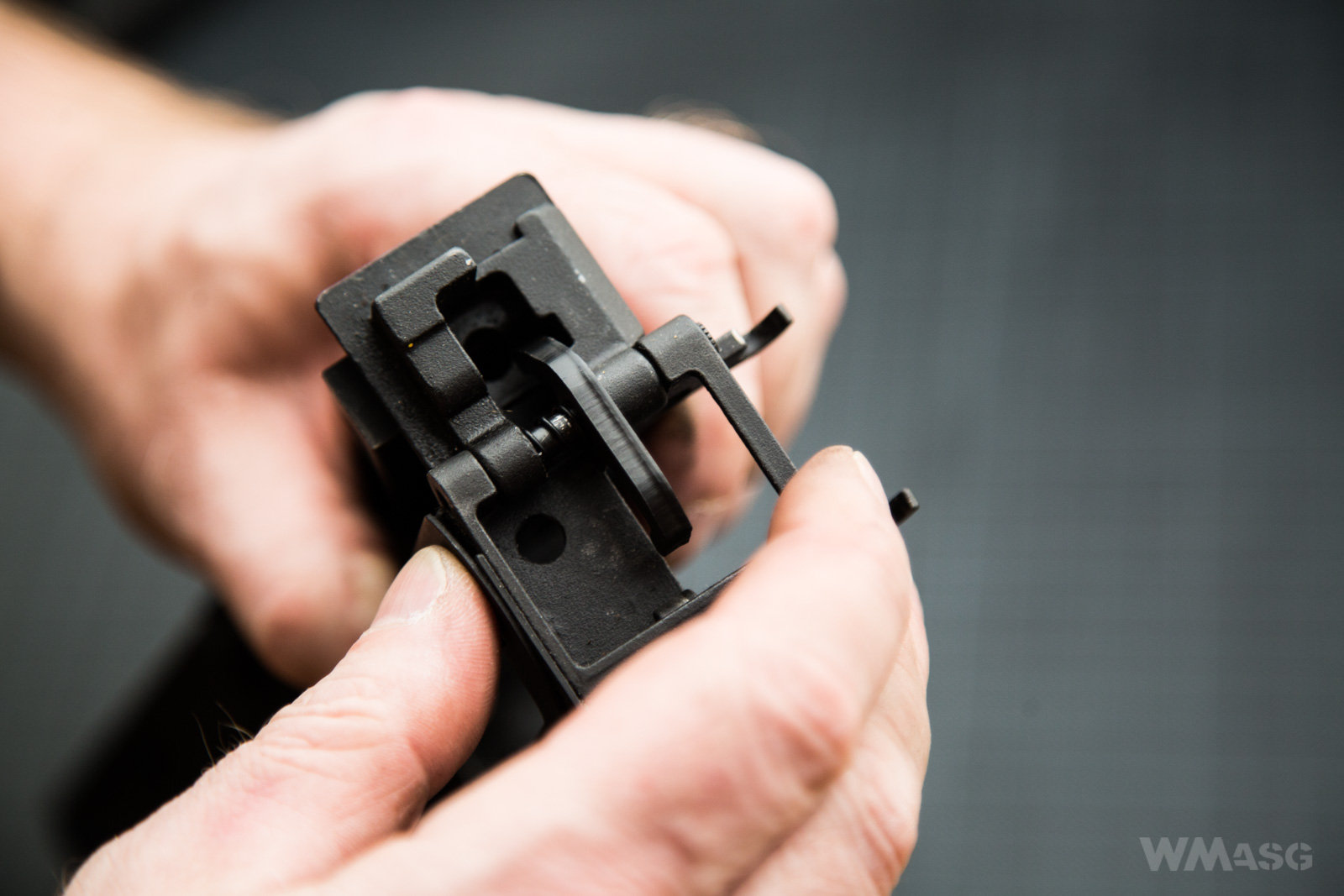 AK-12 nie ma "pazurka" blokującego złożoną kolbą w karabinkach AK-74S, AK-74M czy AKS-74U. Blokowanie kolby rozwiązano w odmienny sposób. Nie wiem jak to działa w oryginale. W replice średnio mi się podoba, ale chyba można to będzie poprawić we własnym zakresie.