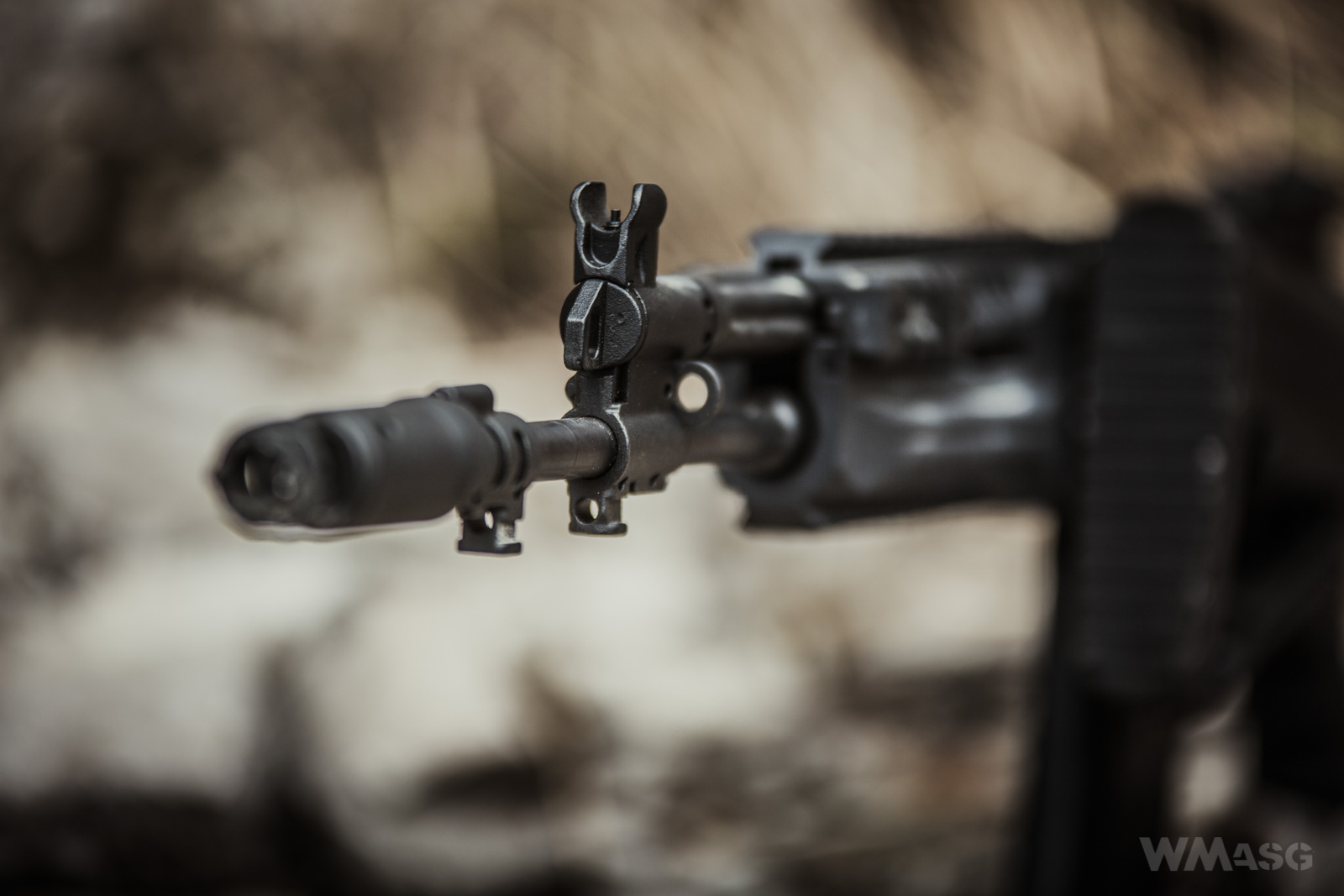 O bardzo pozytywnych wrażeniach z trzymania repliki pisałem już na wstępie. Także strzelanie, mimo luzów na przezierniku i drgającej lufy wewnętrznej jak się zaraz przekonacie wypadło po prostu dobrze (to znaczy jak w przypadku większości replik). Niemniej podczas testów strzeleckich nie spodobał mi się dźwięk pracy mechanizmu. Po sprawdzeniu okazało się, że jedno z kół zębatych spasowane było zbyt ciasno. Minimalna korekta podkładkowania oraz regulacja silnika załatwiła sprawę.