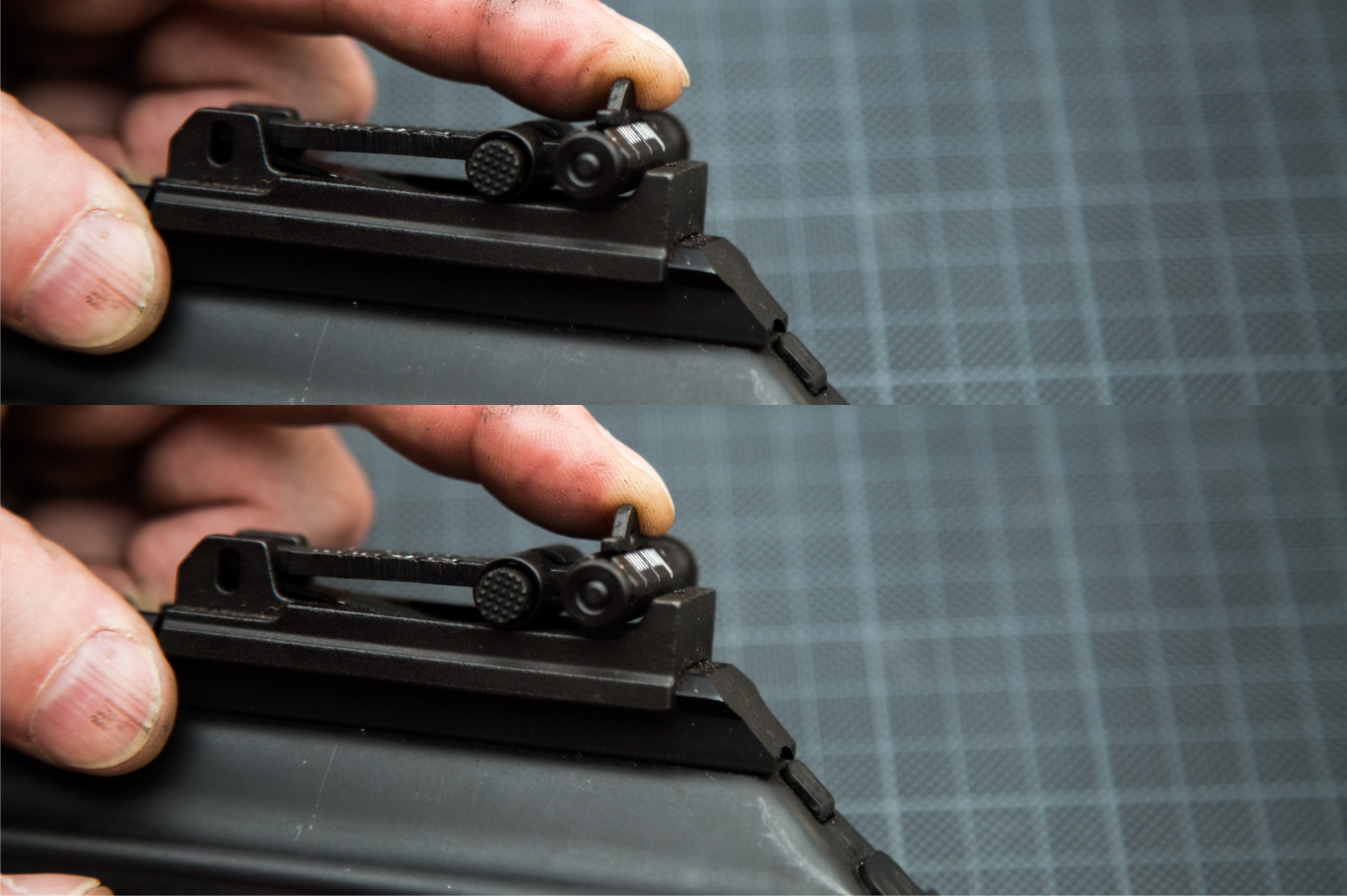 Muszka regulowana jest w pionie poprzez wkręcanie w podstawę. Zrezygnowano z bębenka pozwalającego na przesuwanie w prawo lub lewo.