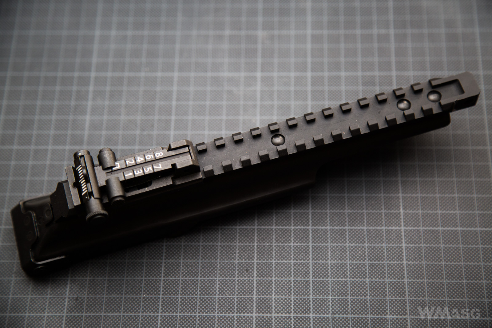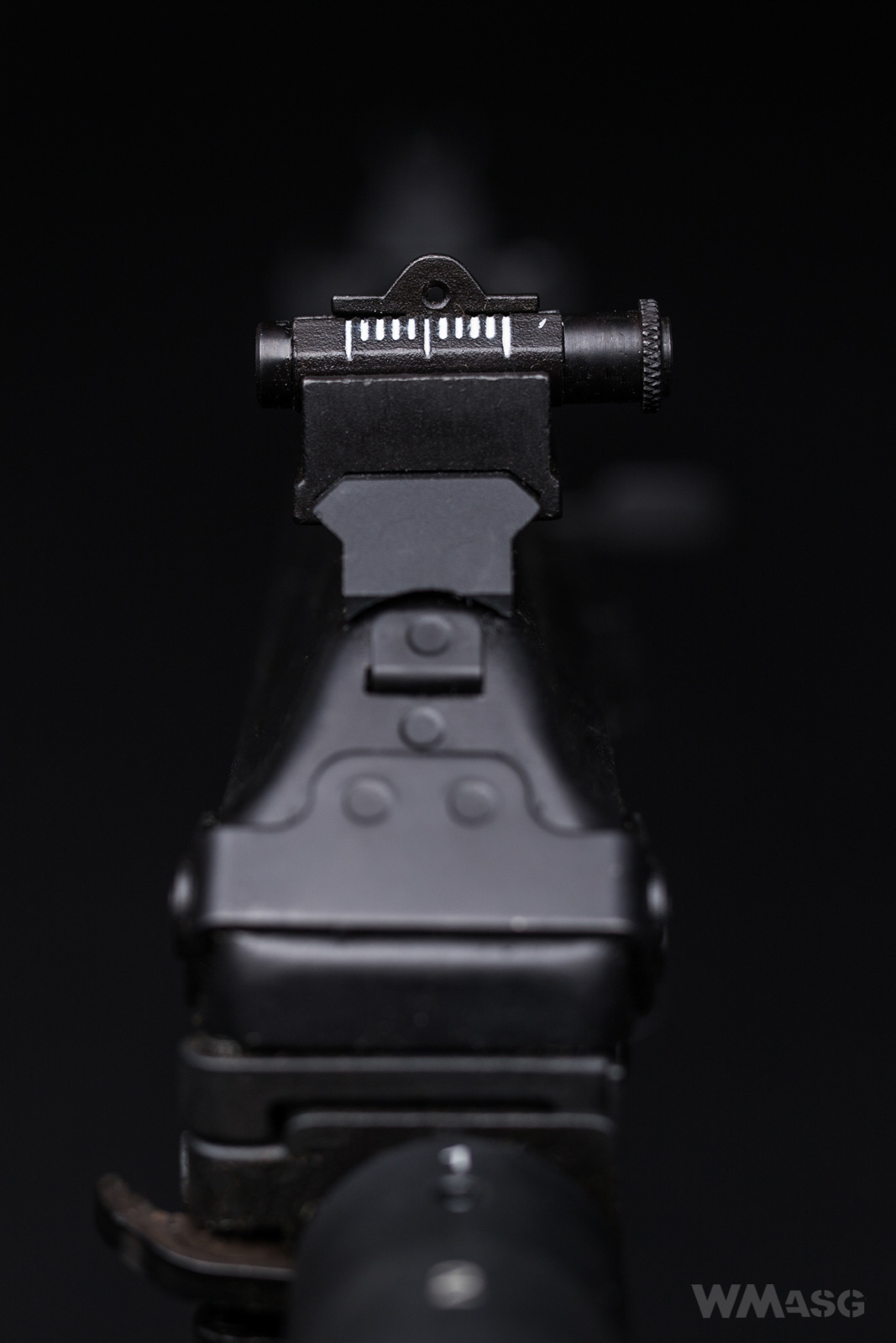 Zastosowany tylny celownik mechaniczny stanowi pewną odmianę.