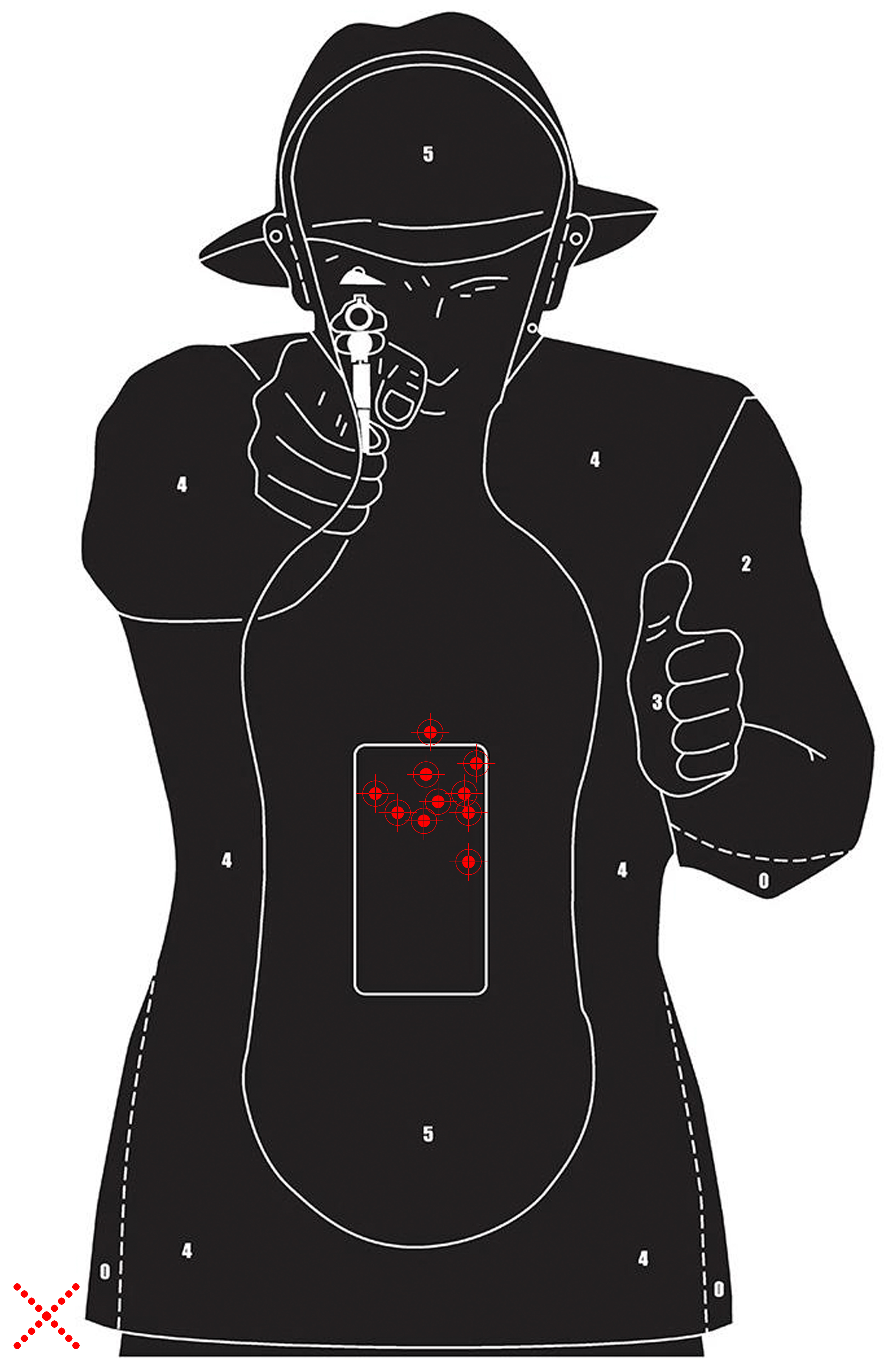 Strzelaliśmy repliką "z pudełka". Bez wcześniejszego przystrzelania i regulacji przyrządów celowniczych. Początkowe strzały szły poza tarczę. Po ustaleniu właściwego punktu celowania (krzyżyk) oddaliśmy właściwe serie strzałów. W obu przypadkach rozrzut nie przekroczył 7 cm.