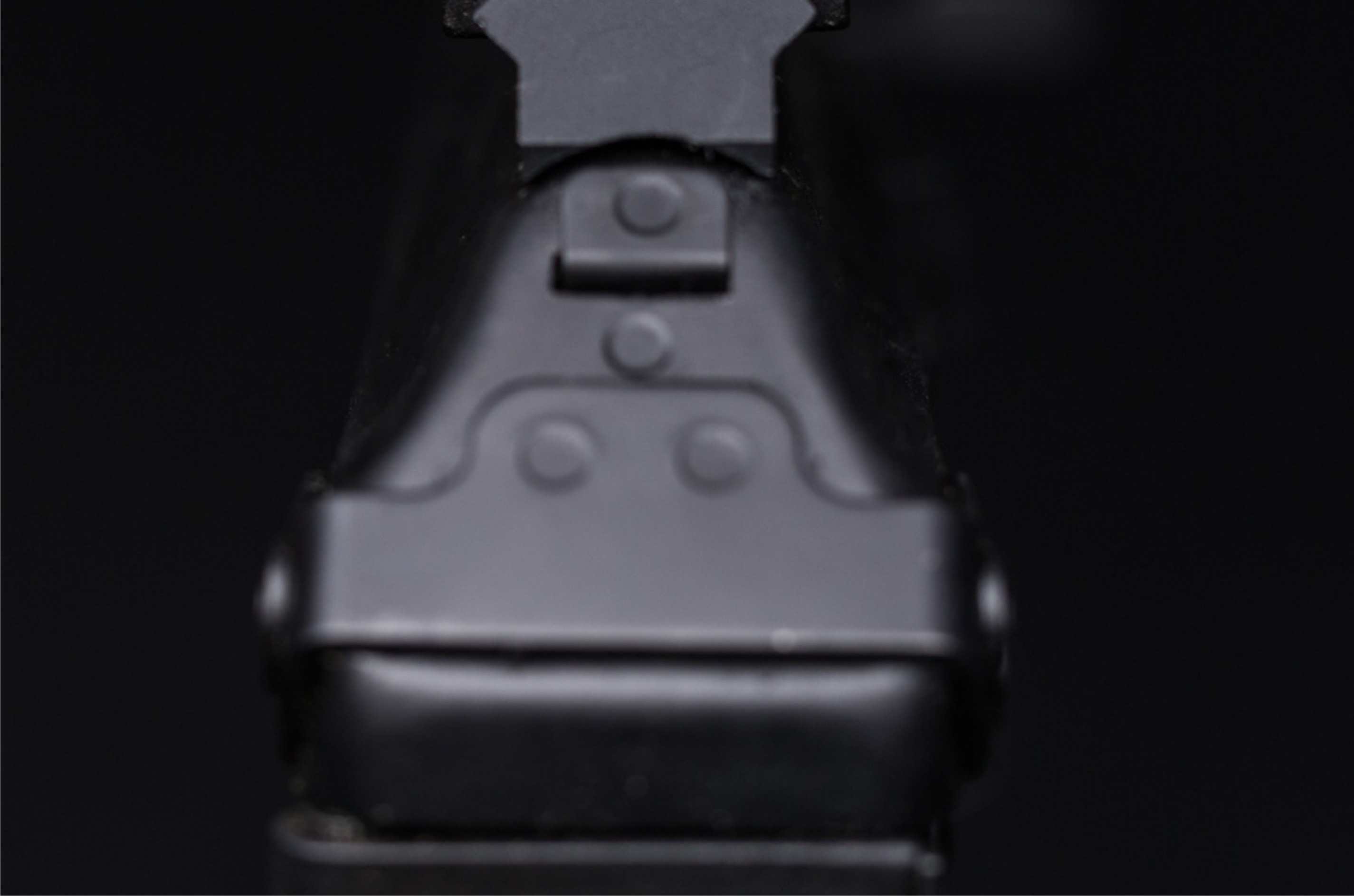 Skrzydełko bezpiecznika/selektora wyposażone w "półkę" ułatwiającą operowanie. W praktyce skrzydełko porusza się z dużym oporem - ciężko poruszyć je palcem, szczególnie w dół.