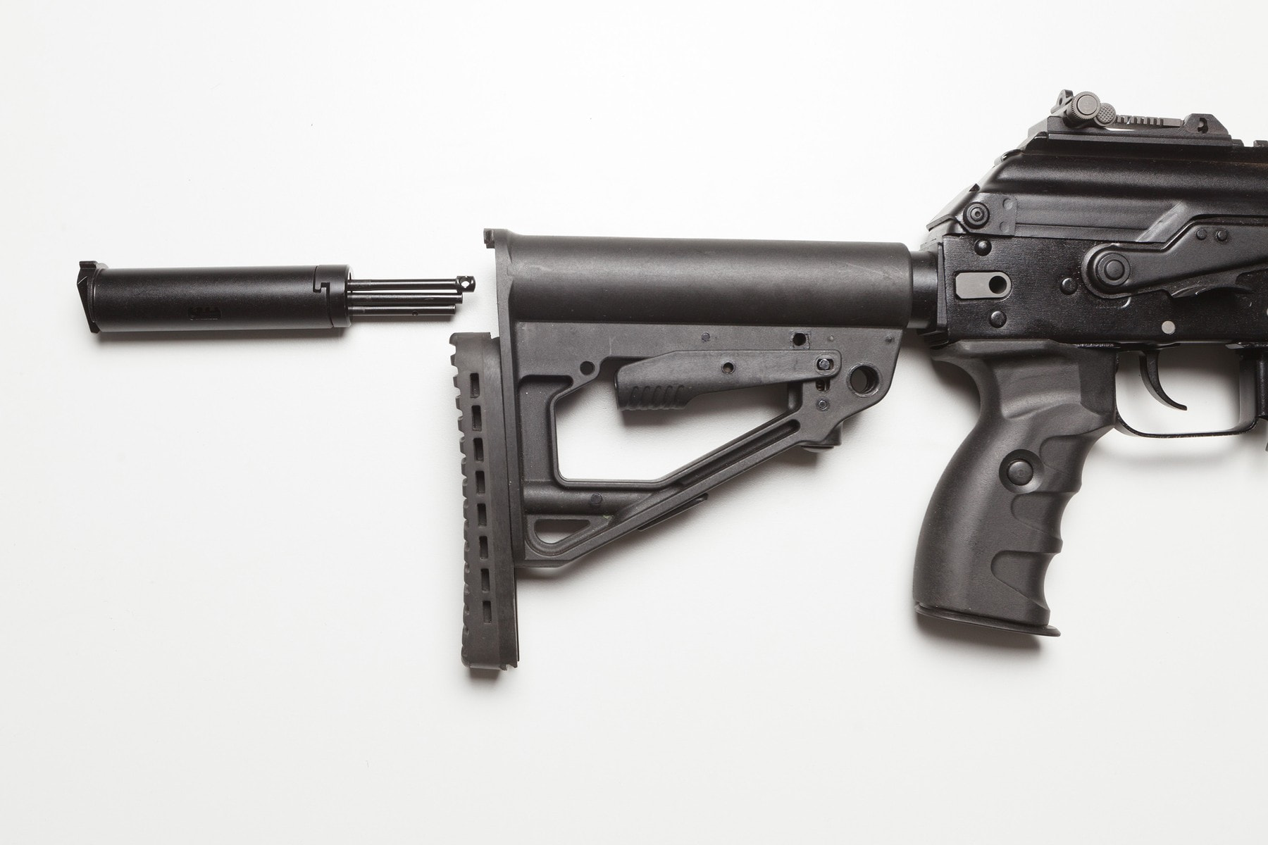 W oryginale zapewne można stosować akcesoryjne kolby standardu AR-15, bo prowadnica (stock pipe) wygląda bardzo podobnie. Nam udało się to pół na pół. To znaczy z przymierzanych kilku kolb replik AR-15 kilka spasowało od razu. W kilku innych konieczna byłaby interwencja pilnikiem.