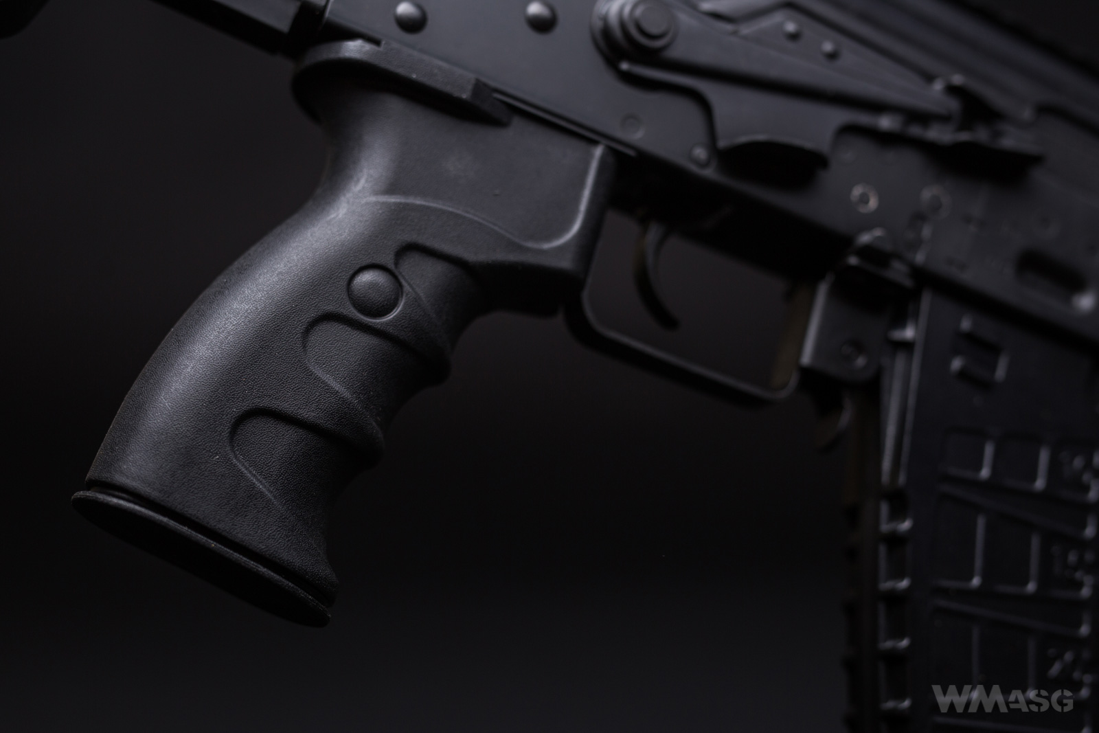 AK-12 w oryginale posiada chwyt pistoletowy, w którym znalazło się miejsce na mały schowek.