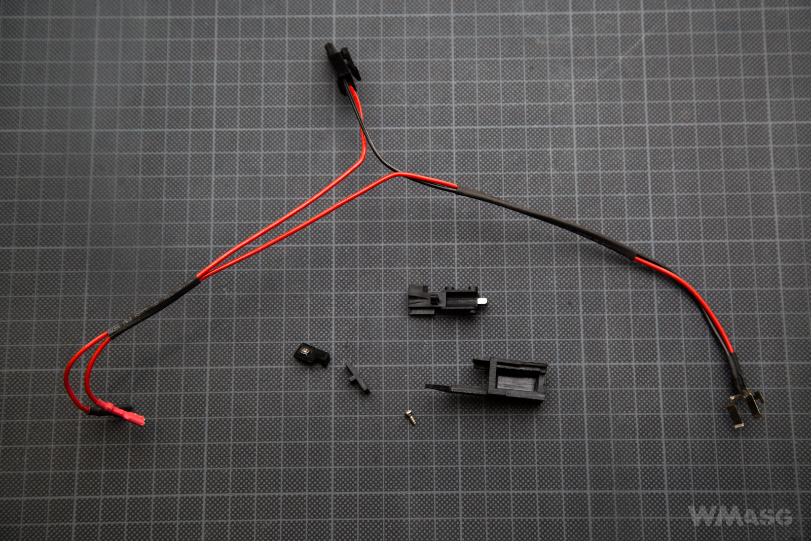 Kostka stykowa z kompletną instalacją elektryczną. Przewody niestety cienkie i sztywne. Wtyk mini Tamiya.