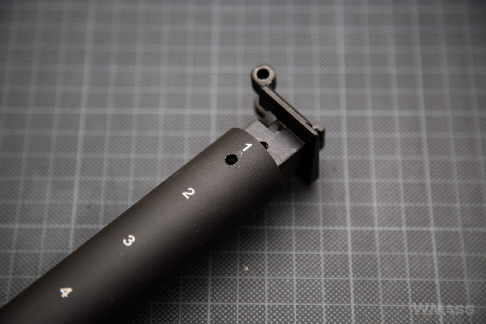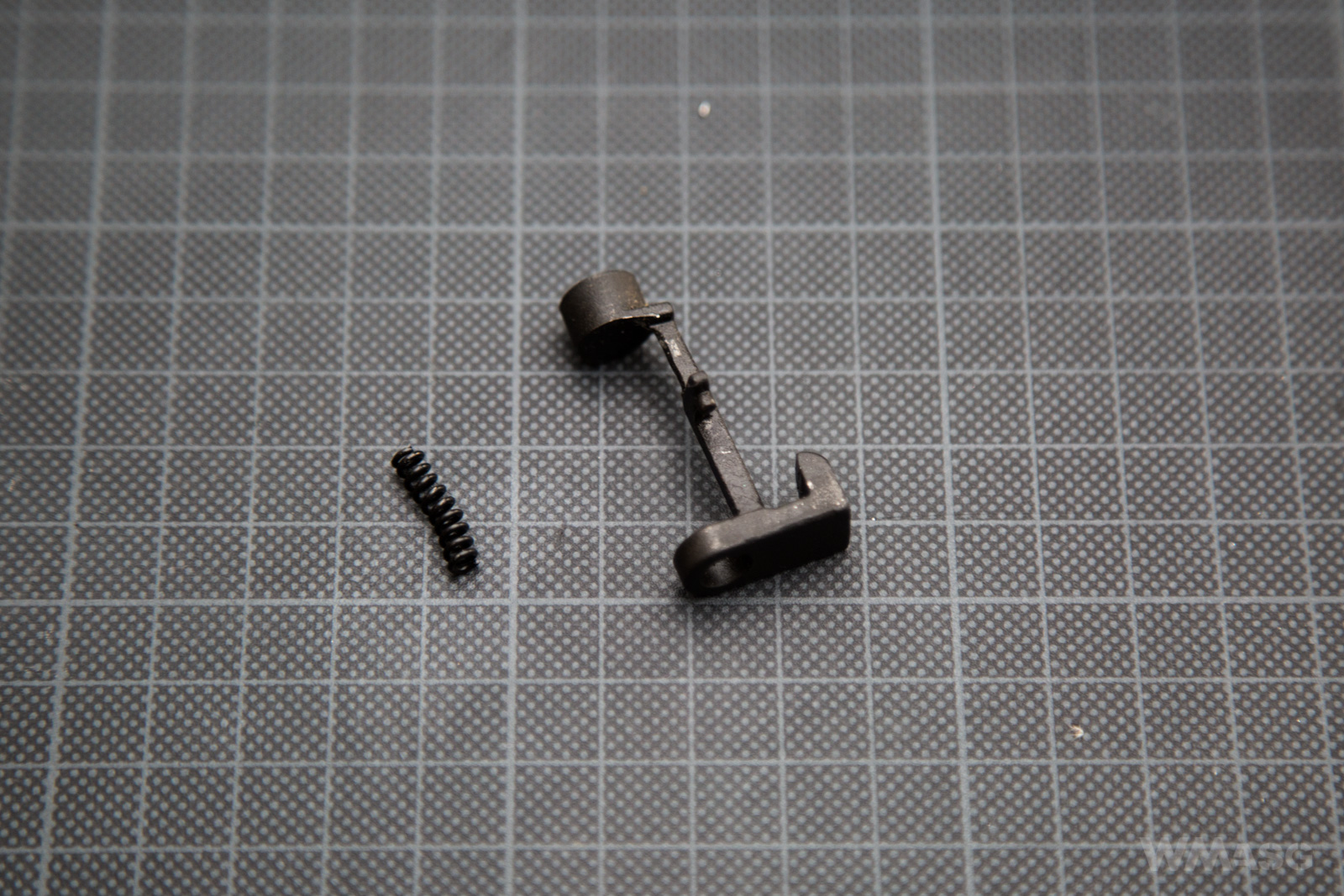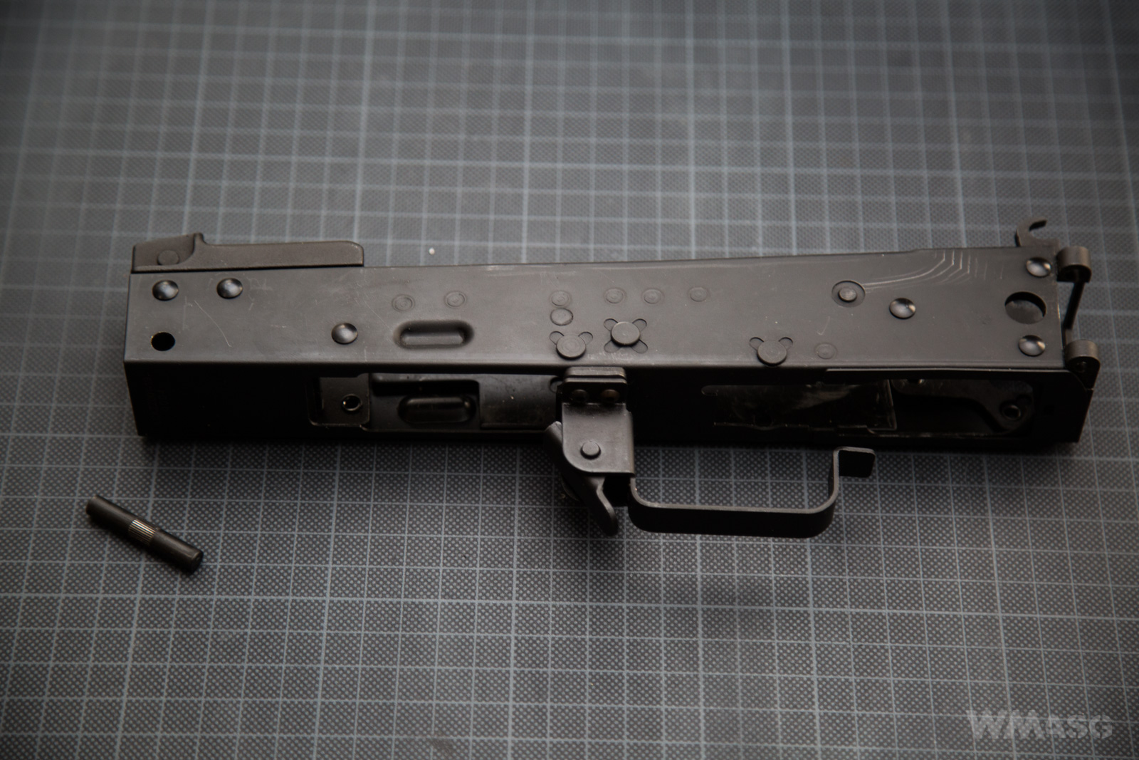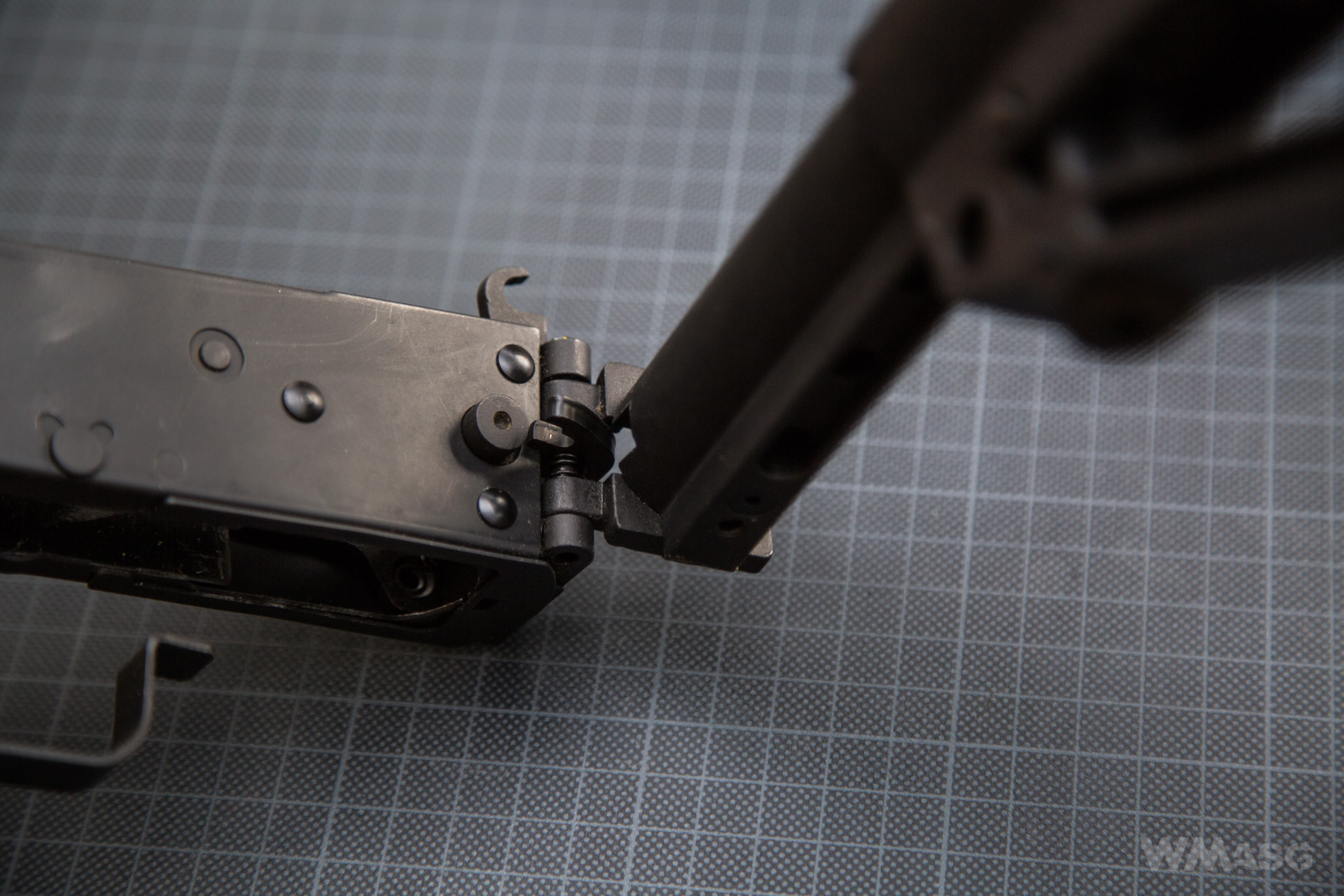 Standardowy zatrzask kolby. Wygląda jak typowy zatrzask z AKS-74, ASK-74U czy AK-74M, ale nie porównywałem 1 do 1. Nie wiem, czy jest wymienny z zatrzaskami innych producentów.