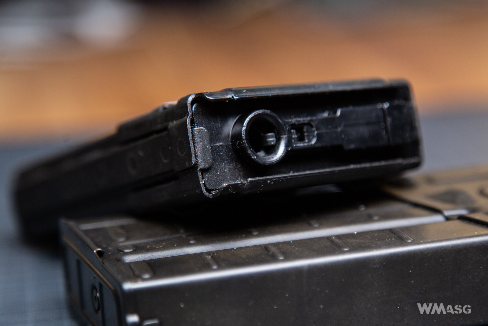 Powodem, dla którego magazynki nie działają jest niecałkowite cofanie się pazurka przytrzymującego kulki. Problem leży nie w kształcie pazurka czy współpracującej z nim części komory HopUp, ale w wysokości, na której znajduje się górna część magazynka po zapięciu go w gnieździe. Inaczej mówiąc blaszki utrzymujące wkład magazynka zagięte są pod kątem prostym co powoduje, że wkład jest zbyt nisko i komora HopUp niedostatecznie odsuwa pazurek.