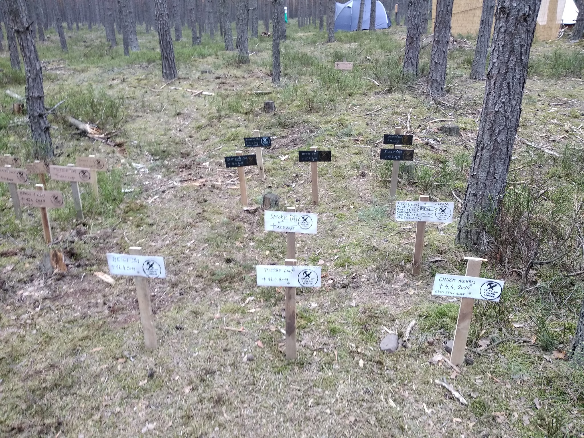 Sobota przywitała nas nowymi wytycznymi. Mieliśmy udać się w rejon FOBa, a następnie stamtąd realizować zadania związane z rozpoznaniem i kontrolowaniem terenu w pobliżu linii bunkrów. Po dotarciu do FOBa mocno się rozczarowaliśmy. W przeciwieństwie do ubiegłych lat, tym razem nie było tutaj ani toalet, ani zbiornika z wodą pitną, ani nawet żadnego namiotu mogącego symbolizować polowy sztab. Nie było nic - z wyjątkiem plakatu wiszącego na drzewie, który wydawał się mówić: "tak, wy naprawdę jesteście we właściwym miejscu". Na szczęście to był jedyny zawód, który przeżyliśmy podczas sobotnich działań za dnia. Pod względem ilości i intensywności kontaktów z TF, sobota była dla nas jednym z najbardziej dynamicznych dni jakie kiedykolwiek przeżyliśmy na BW. Było strzelanie na długim dystansie, było nawet krótkie CQB w jednym z bunkrów, były pojazdy, machanie flagami, darcie ryja i niemal cała reszta atrakcji, które mogą spotkać uczestników Border War za dnia. To był naprawdę udany dzień, pomimo że podczas jednego ze starć zostaliśmy całkiem rozbici.