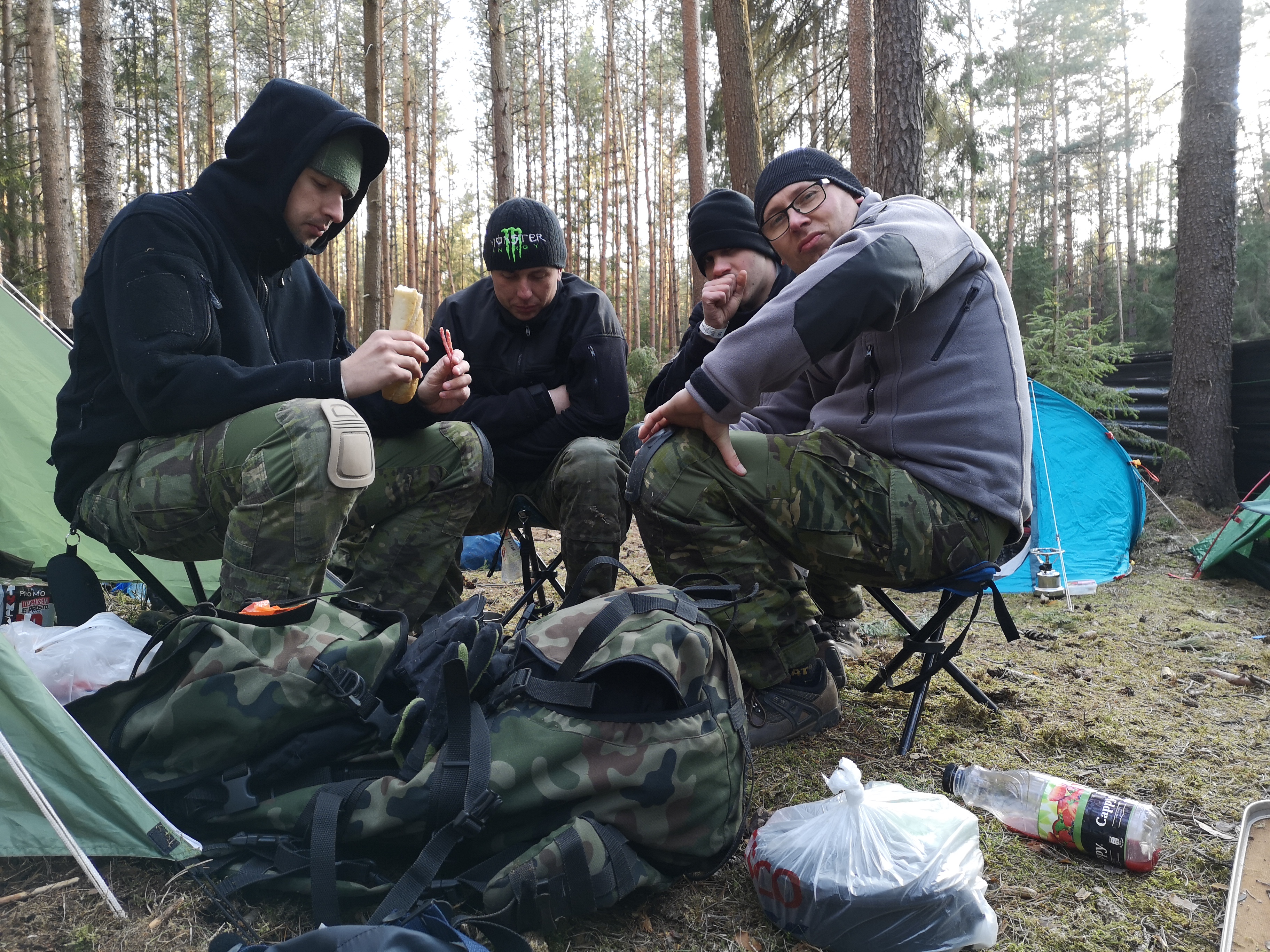 Nadchodziła noc, w związku z czym wielu graczy zakończyło swoje działania tego dnia. Zważywszy na to, że nocna część zabawy to dla nas priorytet, nie mogliśmy odpuścić nadchodzącej odprawy. Na krótko przed nią okazało się jednak, że część TF zignorowała zakaz wchodzenia do bazy przeciwnika i postanowiła urządzić nam w obozie dywersję. Atak przyszedł, jeśli dobrze kojarzę, z dwóch stron. Jedna z nich nas ominęła, a druga... weszła prosto na nasz otoczony plandekami obóz, który znajdował się na skraju terenu. Warto nadmienić, że chwilę wcześniej przekonfigurowaliśmy wszystkie nasze repliki pod działania nocne. Biorąc pod uwagę to, oraz uprzednio przygotowane zasłony z plandeki... cały atak na naszą flankę zakończył się zanim tak naprawdę się rozpoczął. Przeciwnicy zostali wybici w pień w ciągu kilku minut.