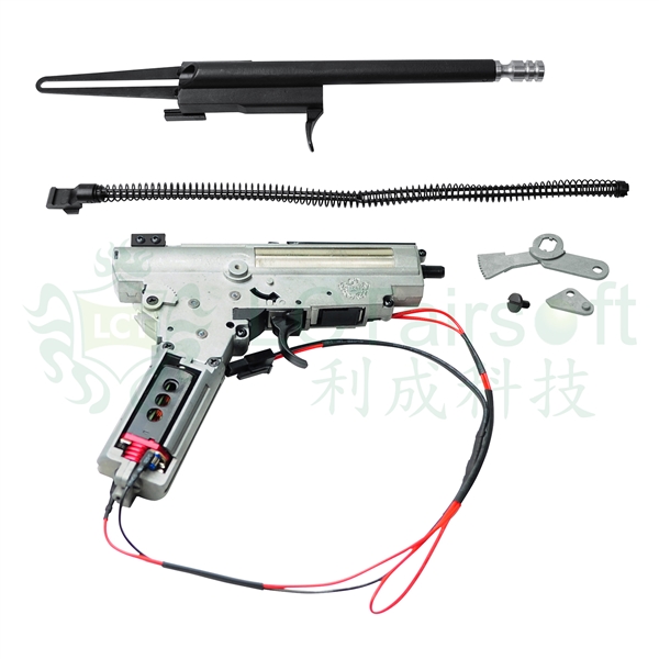 Autorskie rozwiąznie LCT dotyczące systemu blowback w replikach AK różni się od stosowanego przez innych producentów. Przede wszystkim sposobem i wiernością odwzorowania zespołu suwadła i sprężyny powrotnej. Sposób połączenia atrapy suwadła z tłokiem oraz znaczący wzrost łącznej masy elementów ruchomych wymusiły znaczące przekonstruowanie tłoka oraz zwiększenie jego wytrzymałości. Kompletny zestaw EBB przedstawia zdjęcie poniżej. Zwróćcie uwagę na wydłużony zaczep suwadła współpracujący tłokiem (samego tłoka niestety nie widać na zdjęciu).