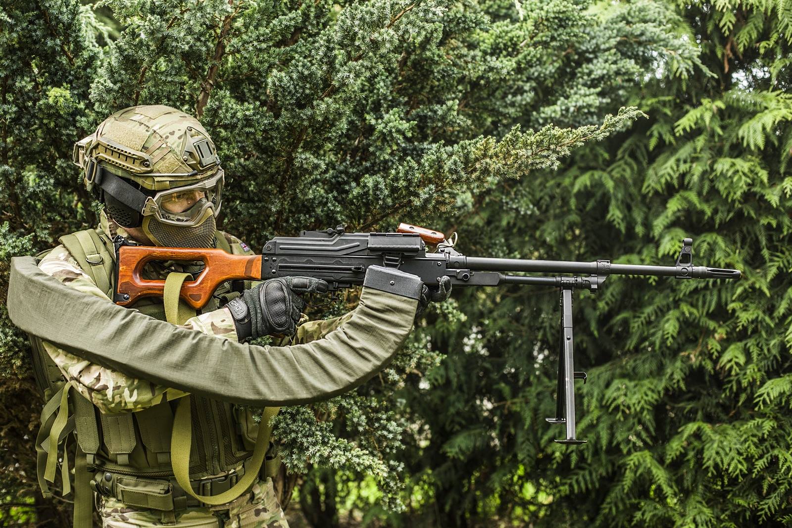 Standardowo ścianki pojemnika na kulki wygłuszane są pianką akustyczną, a usztywnienie plecaka podobnie jak ogniwa taśmy zasilającej budowane są z tworzywa. Przedstawiony na zdjęciach zasobnik do PKM zasilany jest z akumulatora repliki. Identycznie będzie w powstającym właśnie zasobniku do M60. Oczywiście w planach jest także plecak do M249.