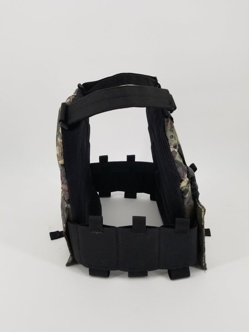 Ponadto odczepiana klapa przednia zawiera kieszeń typu kangur wyściełaną velcro mogącą pomieścić różnego rodzaju wkładki na magazynki. Plate Carrier ponadto posiada elastyczny pas (cummerbund) mogący pomieścić po 3 magazynki 5,56 lub 7,62 z każdej strony.