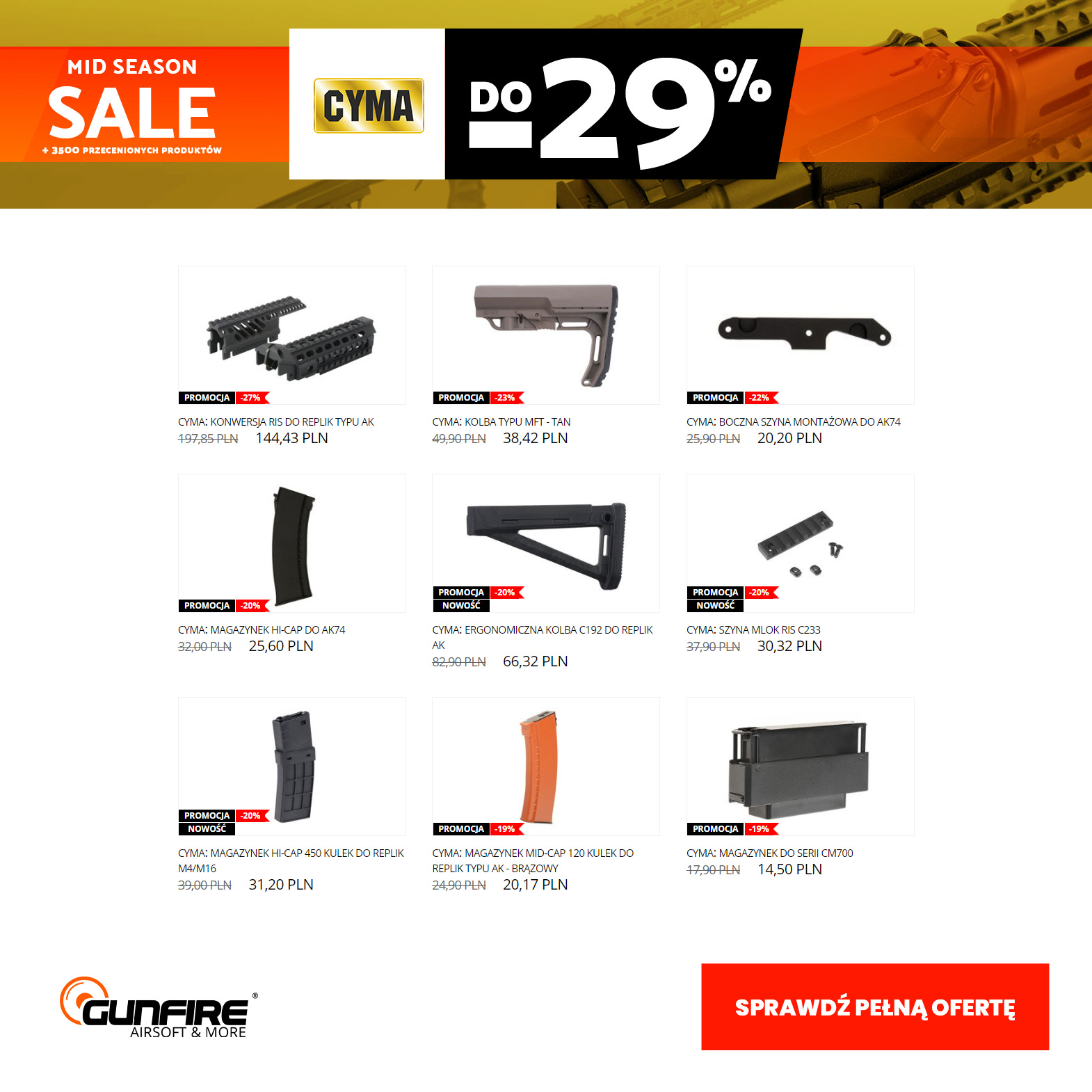 Sezonowa Wyprzedaż w Gunfire! CYMA, G&G, Specna Arms.Ponad 3500 produktów do -70%.