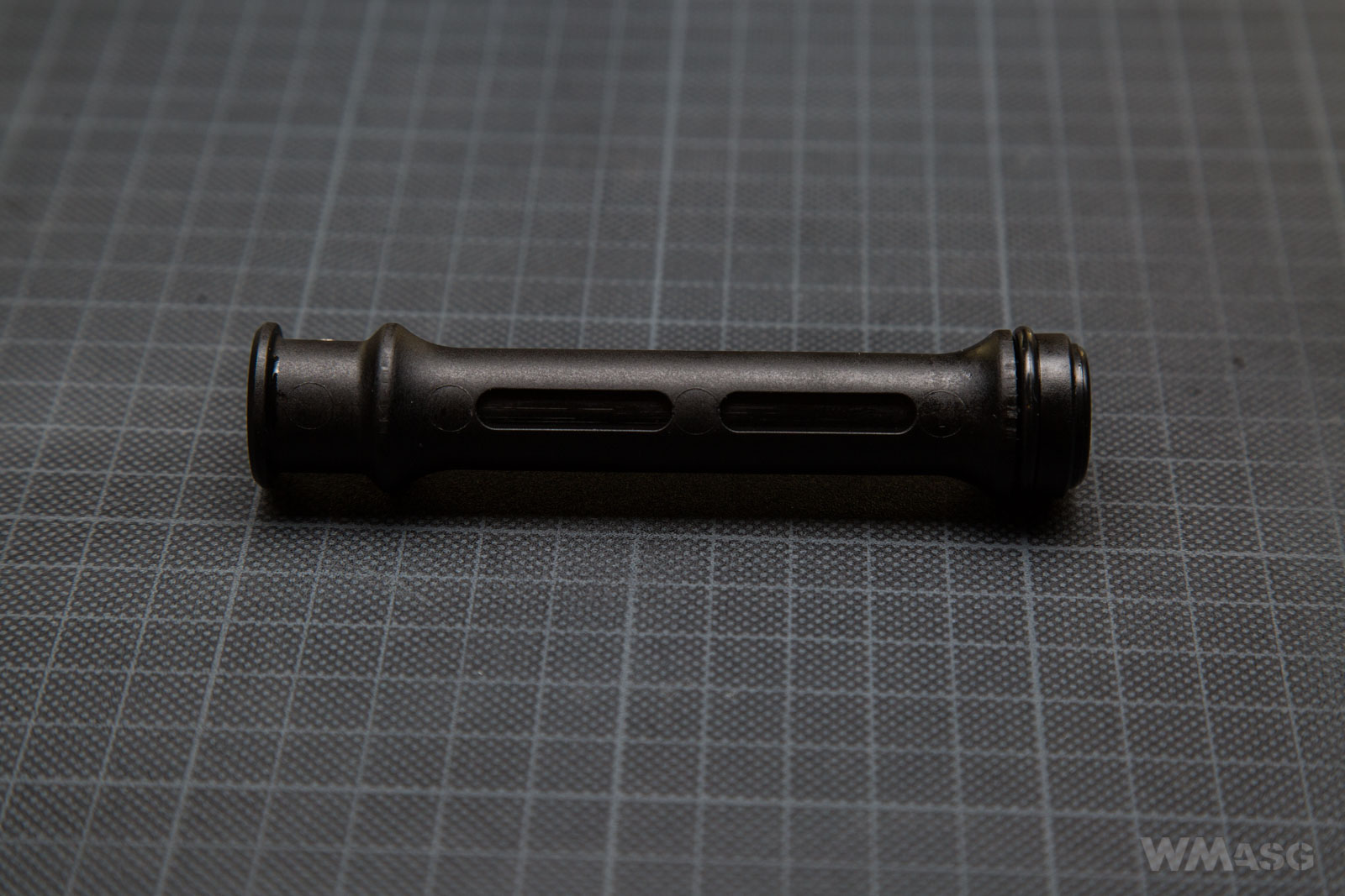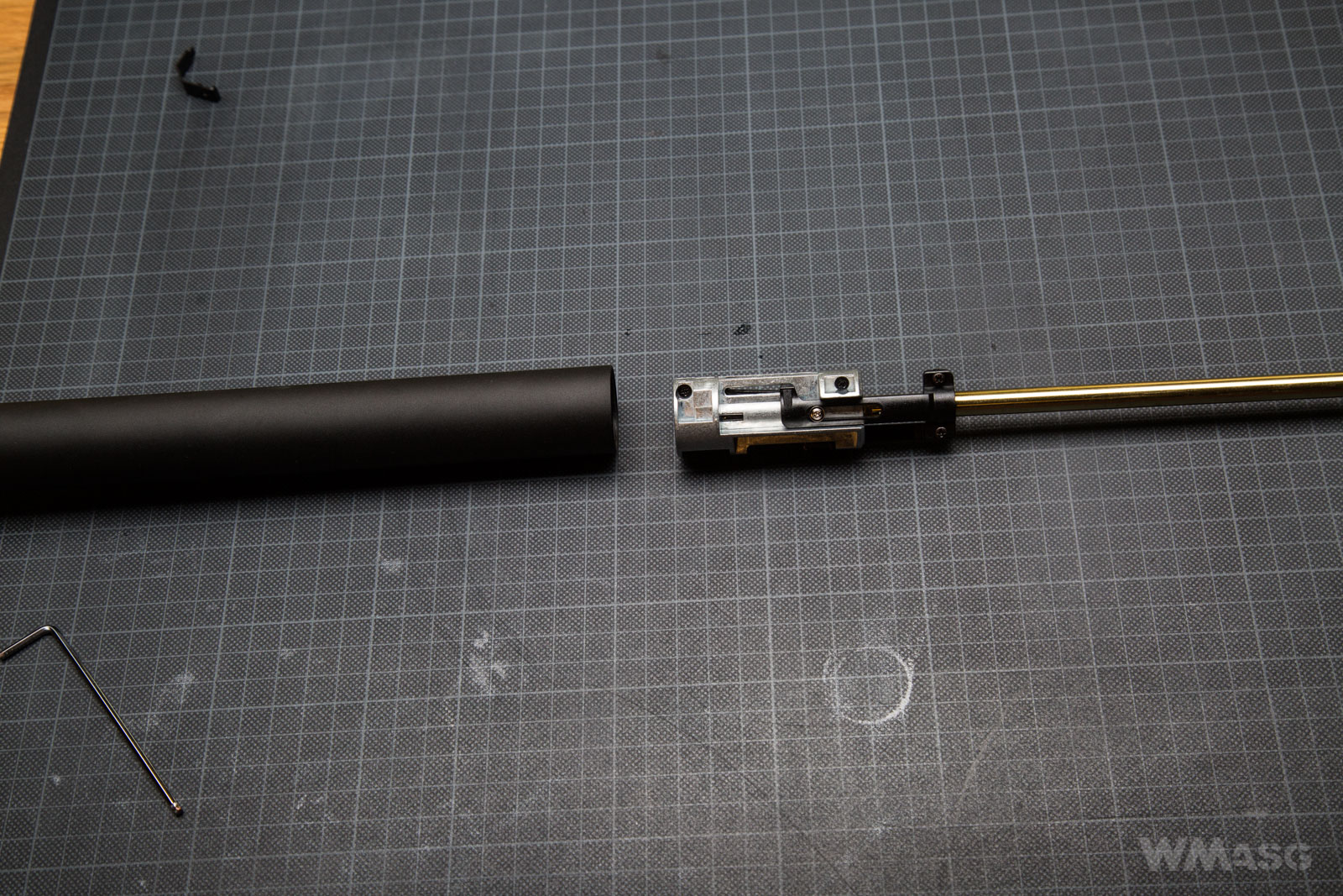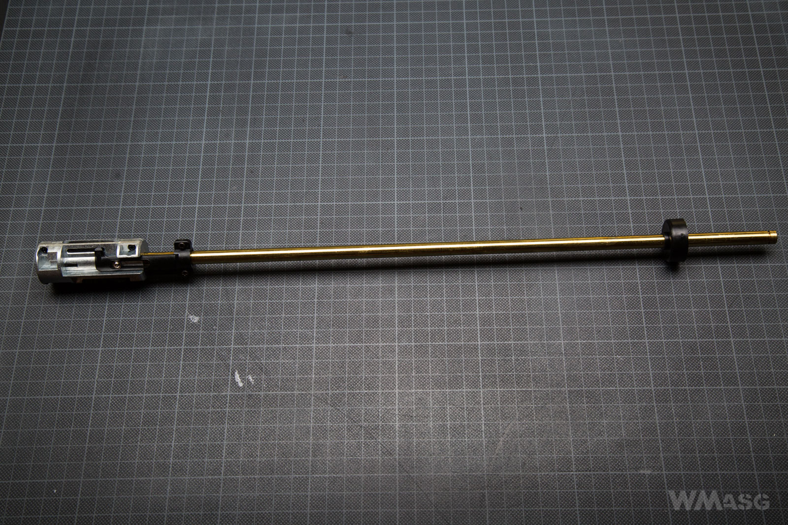 Jego elementy działają poprawnie, ale prowadnicę z tworzywa oraz monolityczny tłok warto wymienić planując tuning. Oba elementy współpracują ze sprężyną o średnicy wewnętrznej 7mm - o tym też trzeba pamiętać