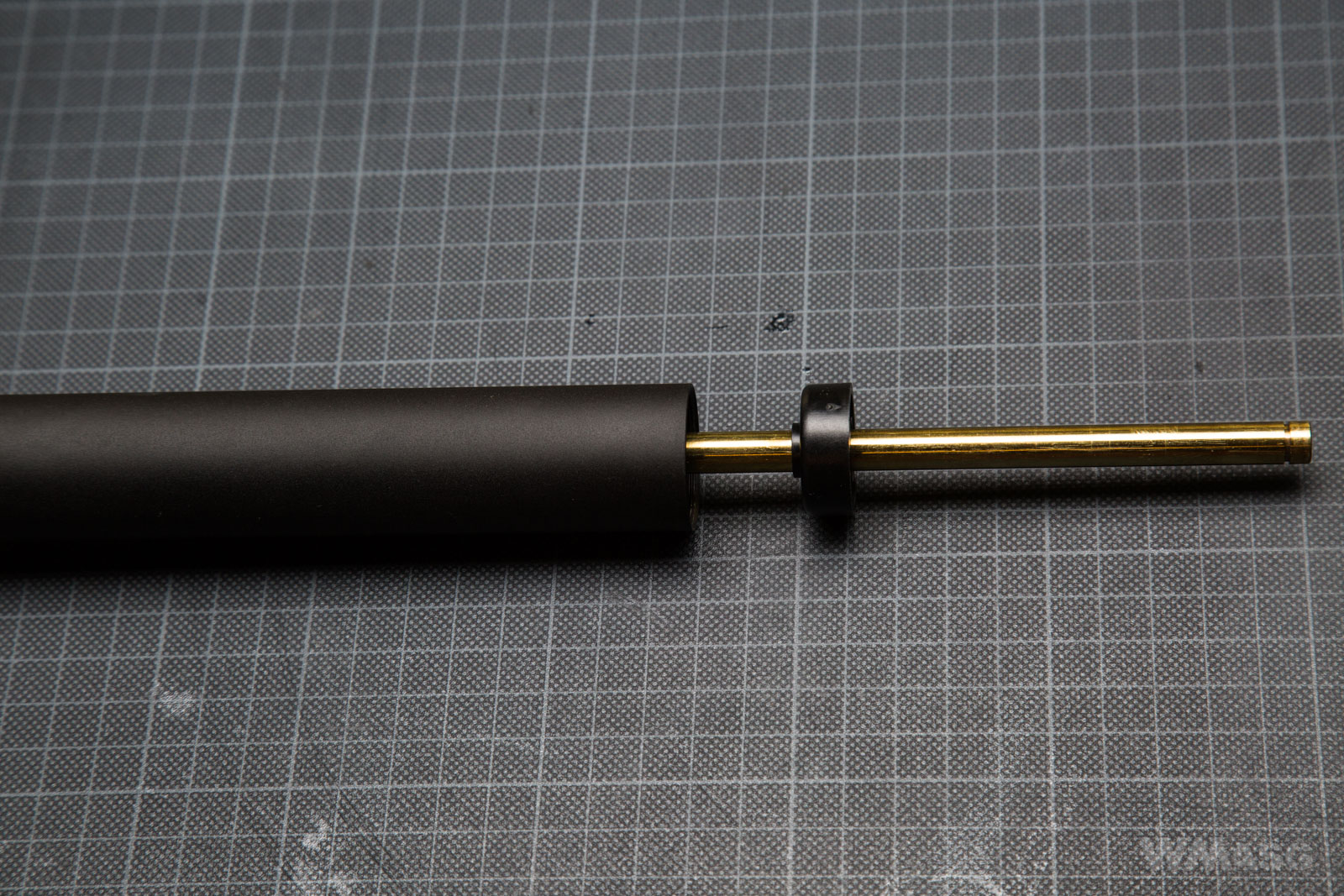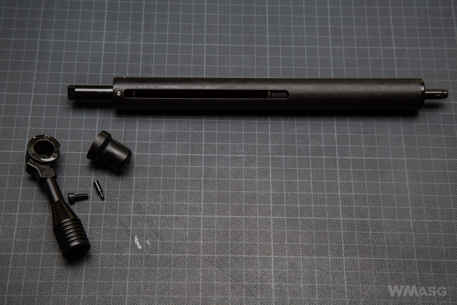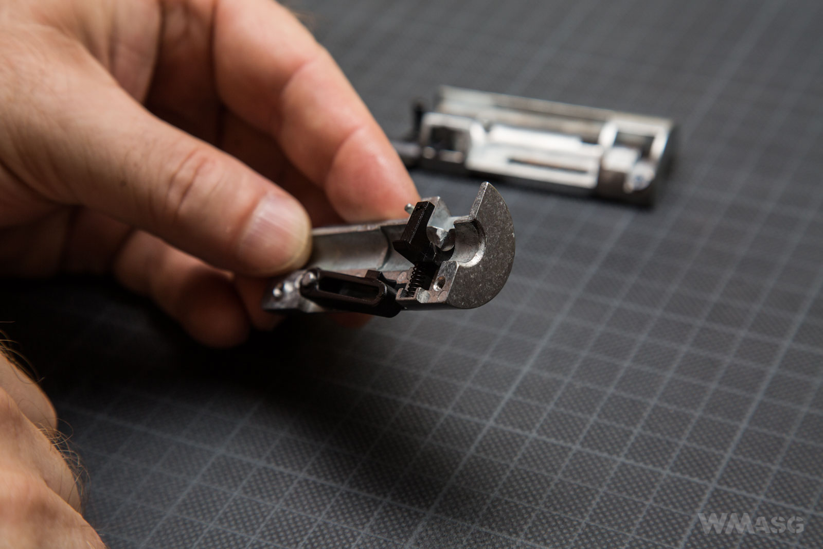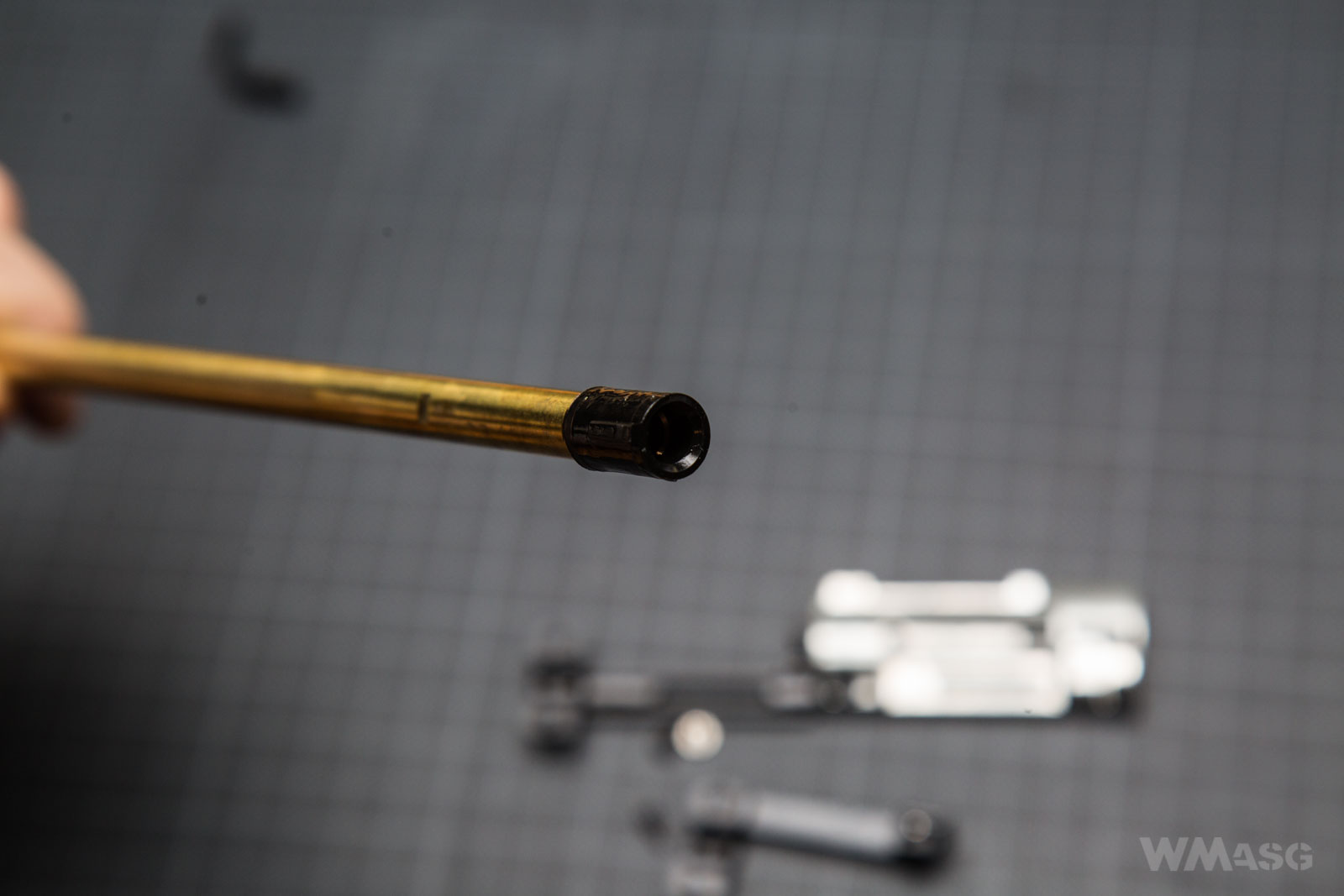 Jego elementy działają poprawnie, ale prowadnicę z tworzywa oraz monolityczny tłok warto wymienić planując tuning. Oba elementy współpracują ze sprężyną o średnicy wewnętrznej 7mm - o tym też trzeba pamiętać