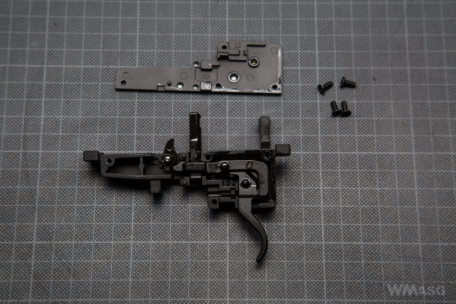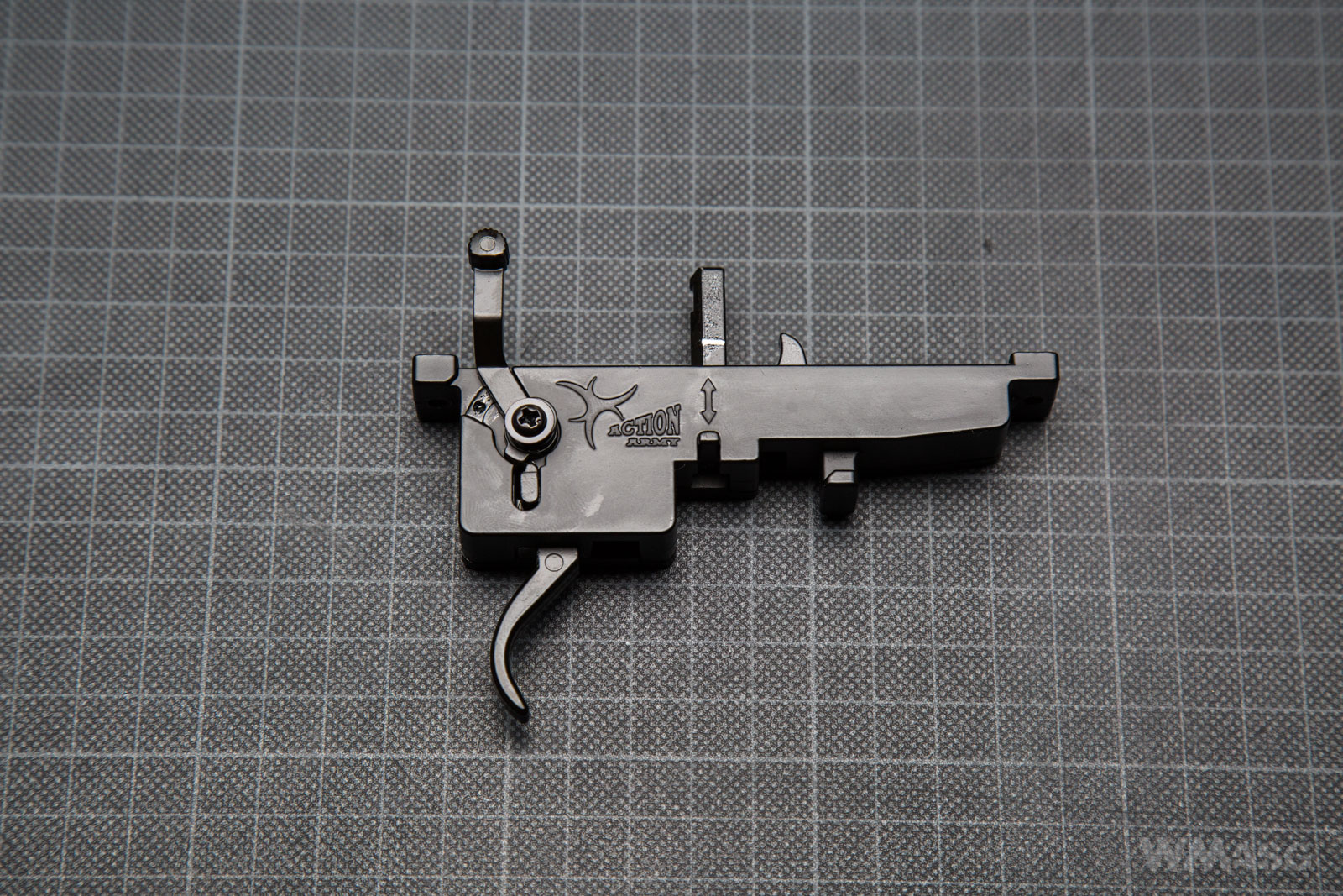 Fabryczny mechanizm spustowy to dźwignie i zaczepy wykonane ze ZnAl-u umieszczone w obudowie z tego samego materiału. Z prawej strony umieszczony jest tradycyjny w kształcie i działaniu bezpiecznik. Spust nie posiada żadnej regulacji, a ruchome elementu nie mają łożysk.