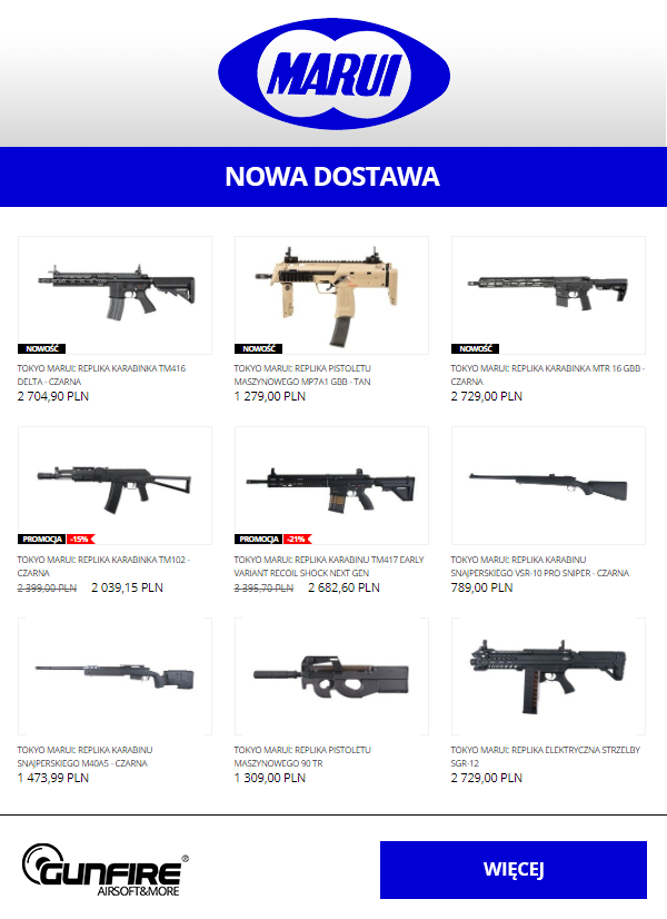 Gunfire zamieścił na Facebooku informację o dostawie replik Tokyo Marui.