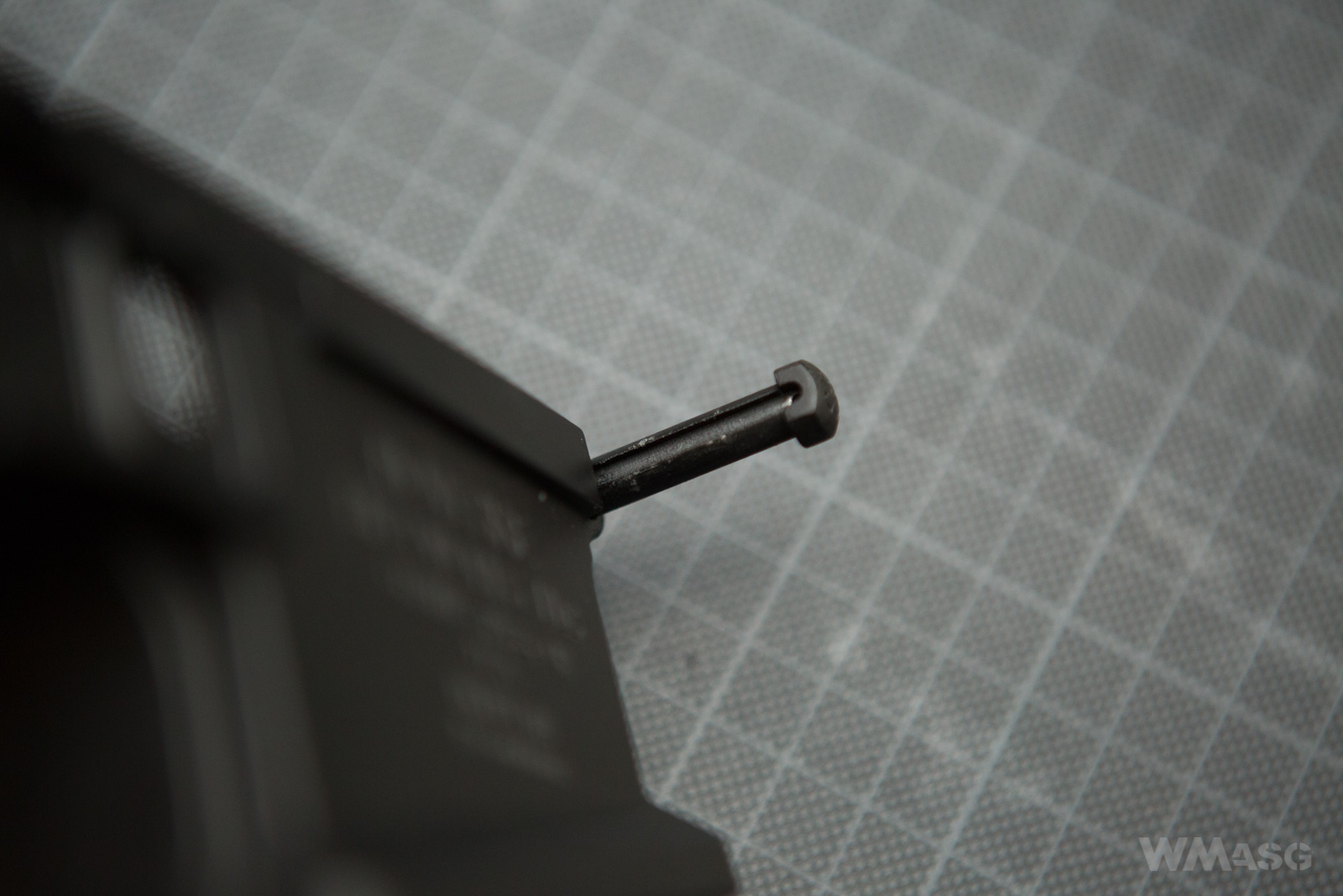 Szczególnie zabezpieczenie tylnego pinu budzi respekt - konstrukcyjnie jest to zrobione jak w wersji palnej (większość replik ma po prostu "zawleczkę" na pinie od wewnątrz korpusu).