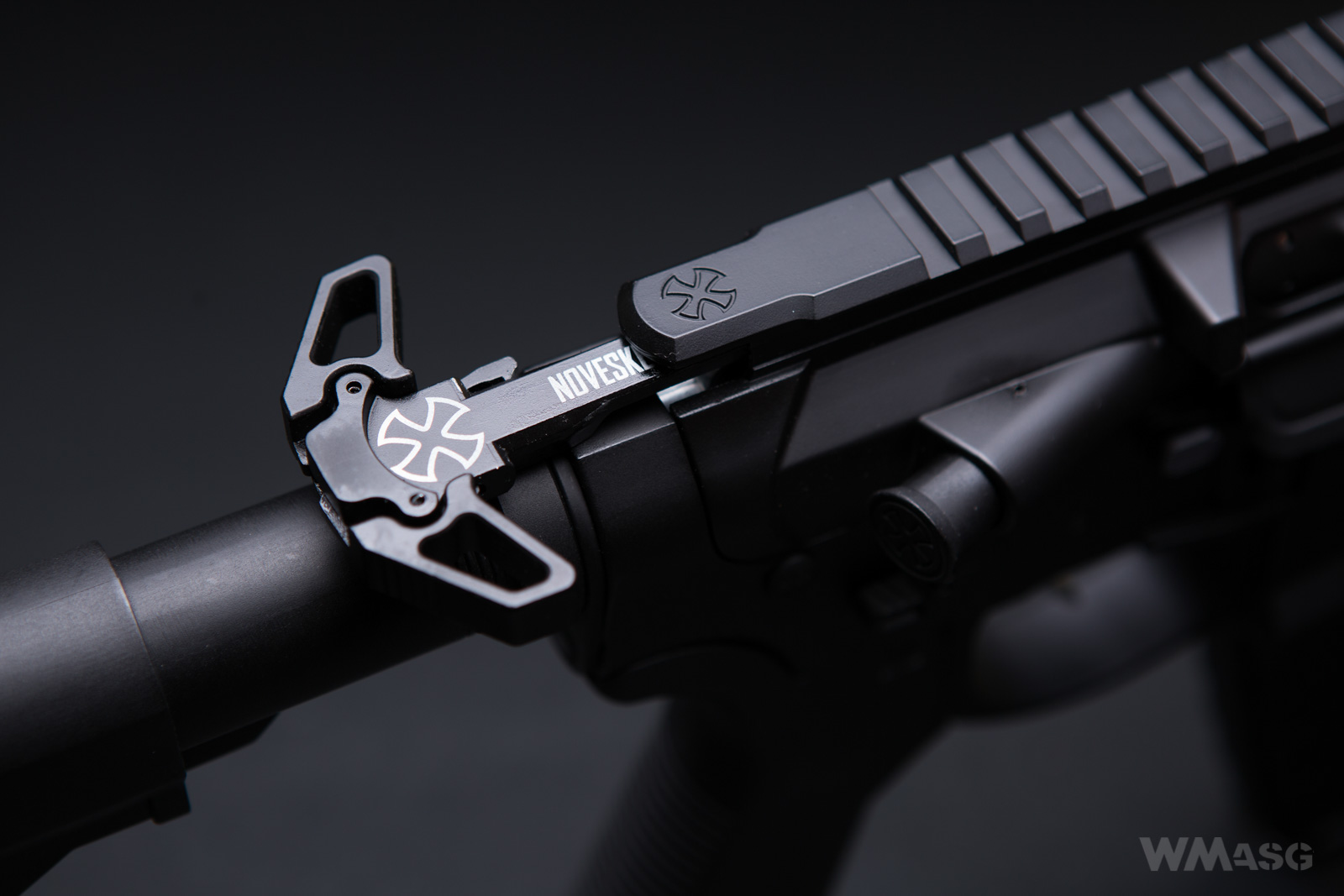 Karabinek wizualnie jest bardzo zbliżony do palnego pierwowzoru, czyli Noveske Gen 4 N4 Pistol (10.5"). Oczywiście są drobne odstępstwa - jak chwyt pistoletowy czy kolba, ale to dające się "poprawić" detale. Korpus wykonany ze stopu aluminium jest wierną kopią korpusu Noveske 4 generacji z obustronnymi manipulatorami, głęboko tłoczonymi oznaczeniami oraz charakterystycznym zmienionym kątem nachylenia krawędzi gniazda magazynka - 13.6 stopnia.