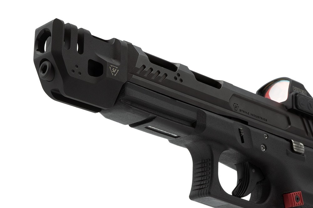 Kompensator Mass Driver Strike Industries jest dostępny w dwóch rozmiarach - standardowym i kompaktowym. Wersja standardowa pasuje do pistoletów Glock G17 i G31, a model Compact współpracuje z Glockami G19 i G32. Kompensatory te są frezowane (CNC) ze stali i mają wykończenie fosforanem manganu. Wymiary kompensatora pozostają w obrysie zamka, dzięki czemu pistolety są wyposażone w Mass Driver są kompatybilne z większością kabur z otwartym dnem. Odpowiednio wyprofilowane krawędzie zmniejszają również ryzyko zaczepienia kompensatora o sprzęt lub odzież.