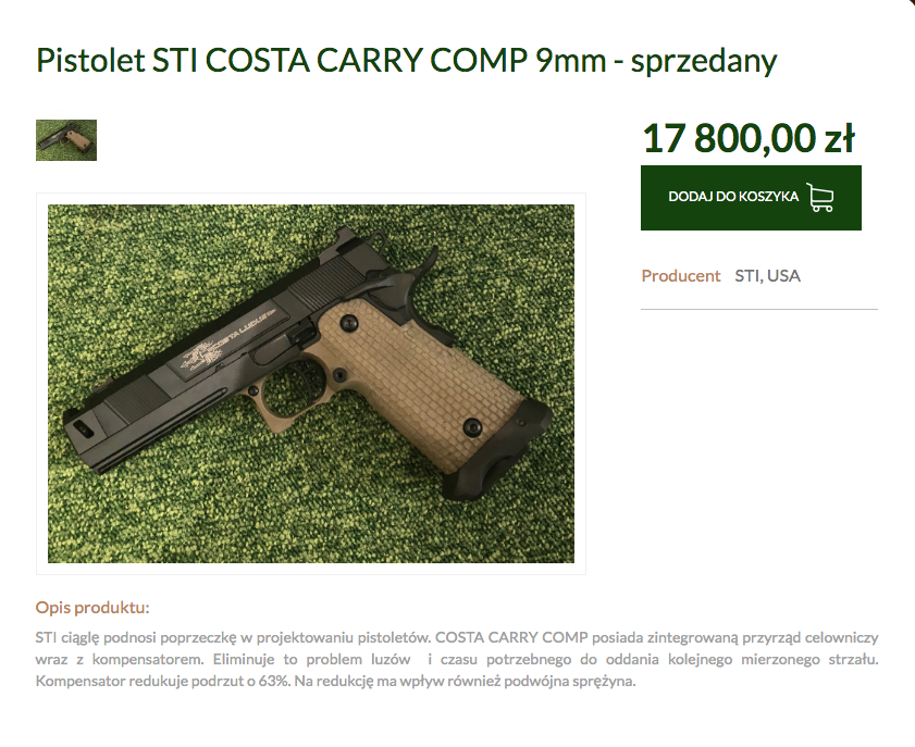 Oryginalny STI Costa Carry Comp to droga broń. W Polsce jeden z egzemplarzy sprzedał się za blisko 18 tysięcy złotych (źródło: www.deer.pl).
