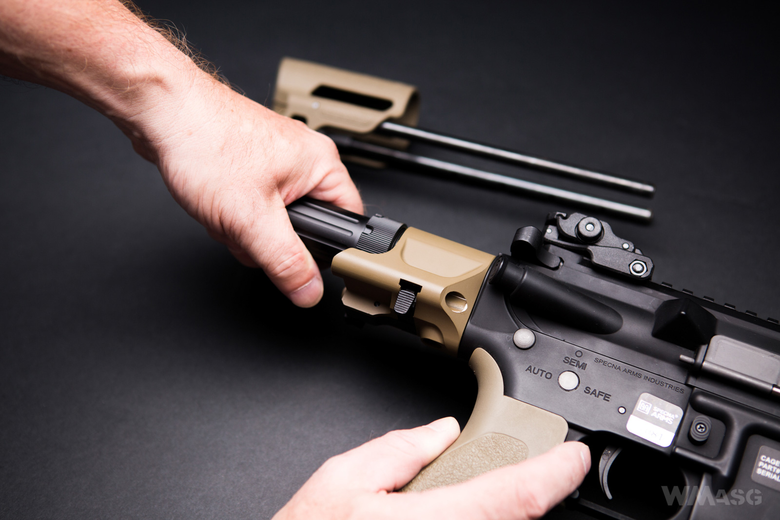 Wspomniałem, że system ESA™ pozwala na dość szybką zmianę prędkości wylotowej poprzez zmianę sprężyny. Faktycznie można to zrobić "z zewnątrz".