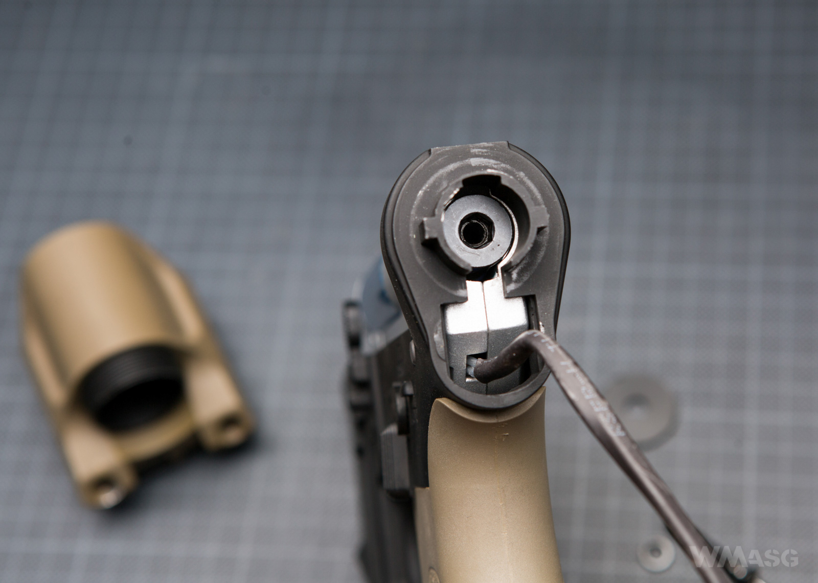 Zastosowano cylinder typu 2, który jest nieco przewymiarowany względem niewielkiej długości lufy, ale problem mógłby być zauważalny jedynie przy dużej szybkostrzelności repliki. Przy fabrycznym (i nieco irytującym) taś-taś-taś nie ma negatywnych skutków podczas strzelania ogniem ciągłym.