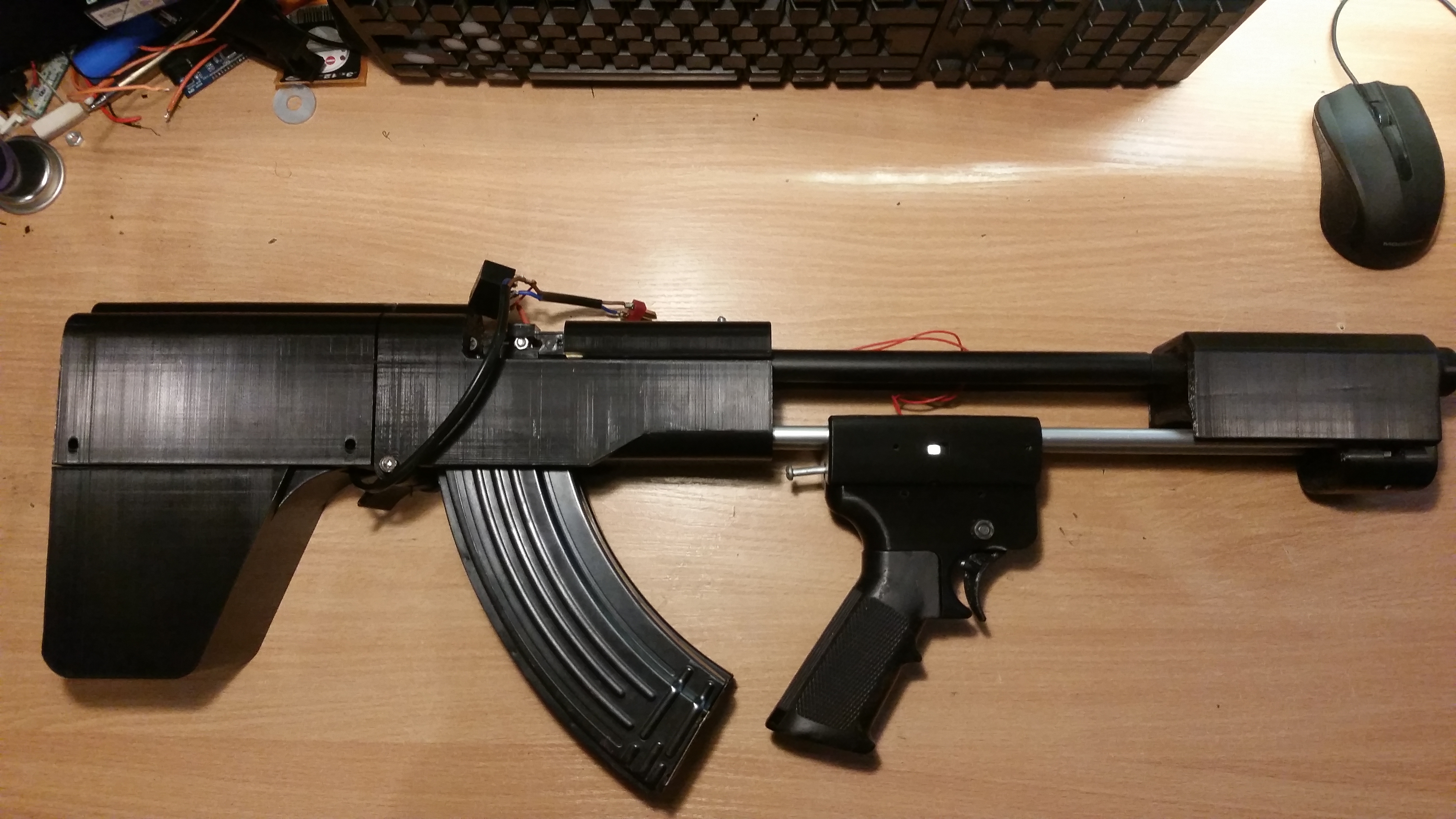 Jest to w dużym skrócie karabin sklejony z dwóch replik CYMA 028. Oryginalnie miał to być karabinek PDW, niewielki, lekki i śmiesznie szybkostrzelny. plany jednak szybko przybrały na wadze...