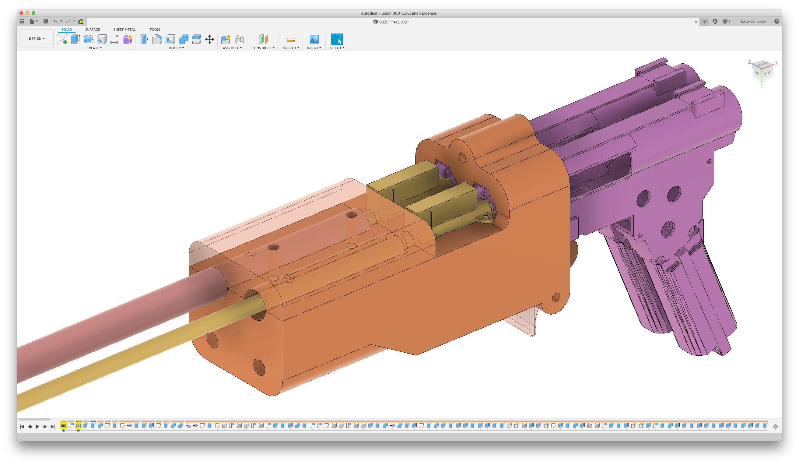 Początkowo chciałem być ambitny i zaprojektować cały Gearbox  i układ HU z lufą od zera, ale to było dość żmudne i nie ukrywam nieco mnie przerosło. Na szczęście internet jest pełen cudownych ludzi, którzy postanowili już to zrobić. Zaprojektowałem coś na kształt zespołu lufy i HU, Tak tylko, żeby mieć dokładne wymiary.