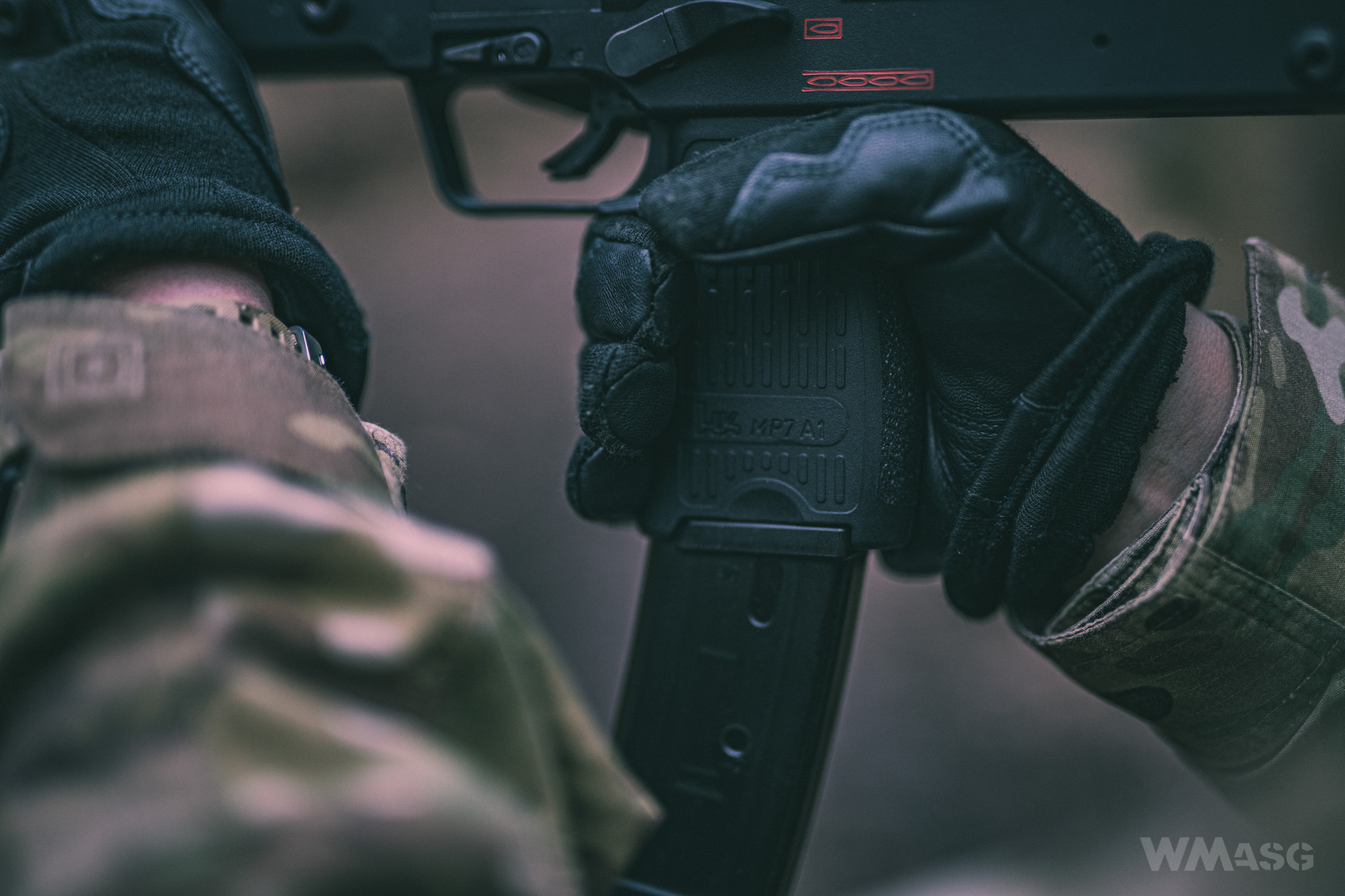 Historia pistoletu maszynowego MP7 zaczyna się w 1999 roku, kiedy to HK zaprezentowało prototypową broń na nowy nabój 4.6x30 oznaczoną jako PDW2000 (Personal Defense Weapon). Była to bodajże pierwsza konstrukcja w tej klasie broni, w której zastosowano boczny otwór w lufie - czyli układ stosowany od lat, ale w karabinach i karabinkach szturmowych. "Herezja" była podwójna, bo zapożyczenie rozwiązań konstrukcyjnych z karabinka G36 było jednoczesną rezygnacją z zamka półswobodnego stosowanego przez HK w karabinach G3 oraz w królowej pistoletów maszynowych - kultowej MP5. Projekt PDW2000 był rozwijany przez kilka kolejnych lat i ostatecznie w roku 2001 zaprezentowano HK MP7. Broń w niewielkiej ilości trafiła wtedy (2002) w ręce komandosów z KSK (Kommando Spezialkräfte) - niemieckiej jednostki wojskowej będącej +/- odpowiednikiem naszego Gromu. W oparciu o kolejne testy i uwagi żołnierzy z KSK ostatecznie pod koniec 2003 roku pokazano publicznie MP7A1, którego elektryczną replikę właśnie testujemy.