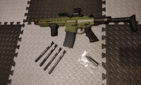 5.10.2025 replika dalej aktualna Replika w pełni sprawna, Body ze stali W zestawie dwa magazynki oraz tłumik widoczny na zdjęciach wymieniane było w niej: -sprężyna m170 -zębatka Dual sector gear (DSG) przez co szybkostrzelność jest bardzo duża -silnik high speed -T connect -posiada standardowy mosfet bez problemu pociągnie 11.1v (na takiej baterii też z tym biegałem) filmik z działania repliki: https://youtube.com/shorts/CCUoKeJJS5E?si=FTWq_u8aBXOs_O1x