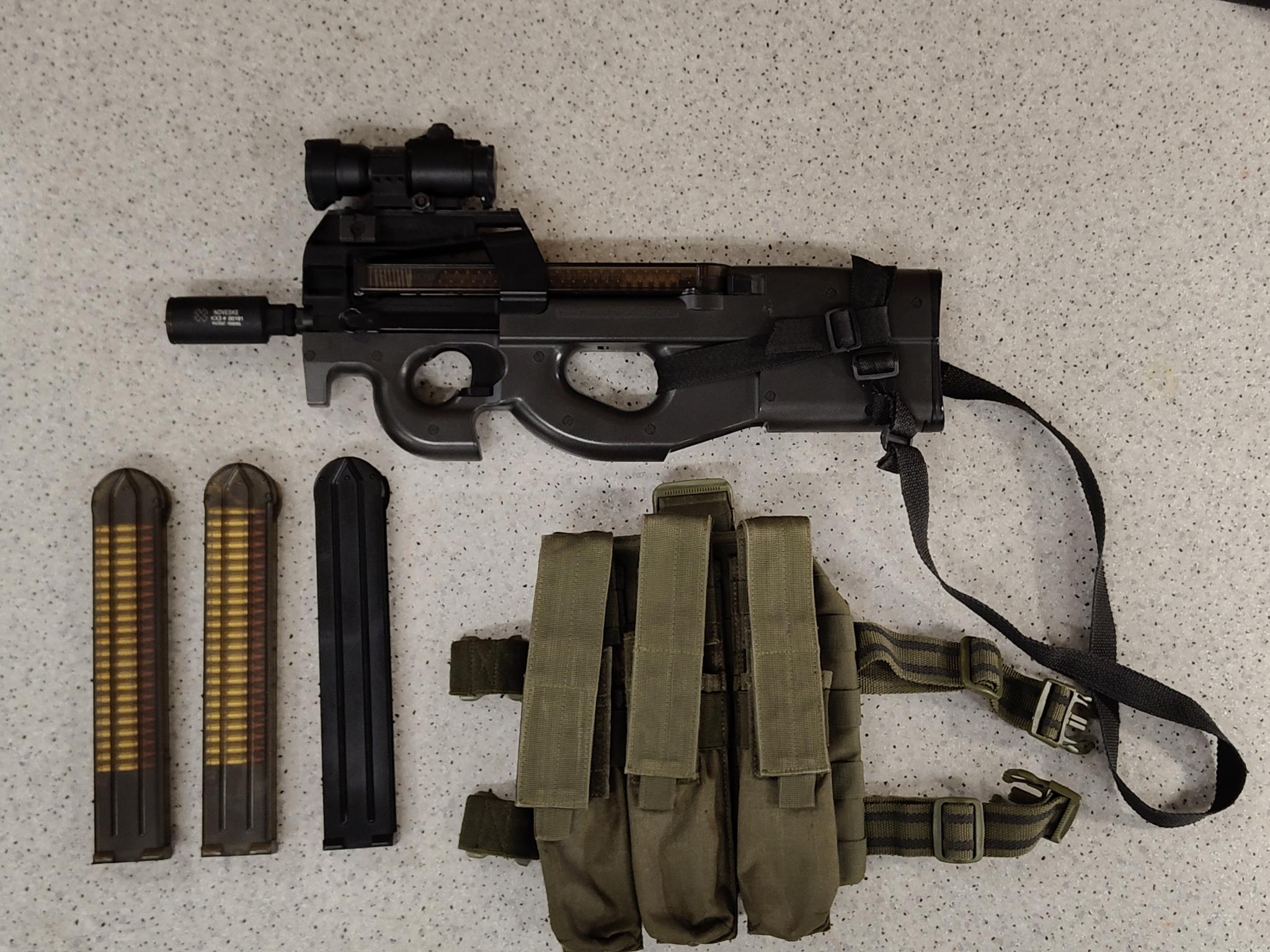 Replika ASG Tokyo Marui P90 TR z akcesoriami.