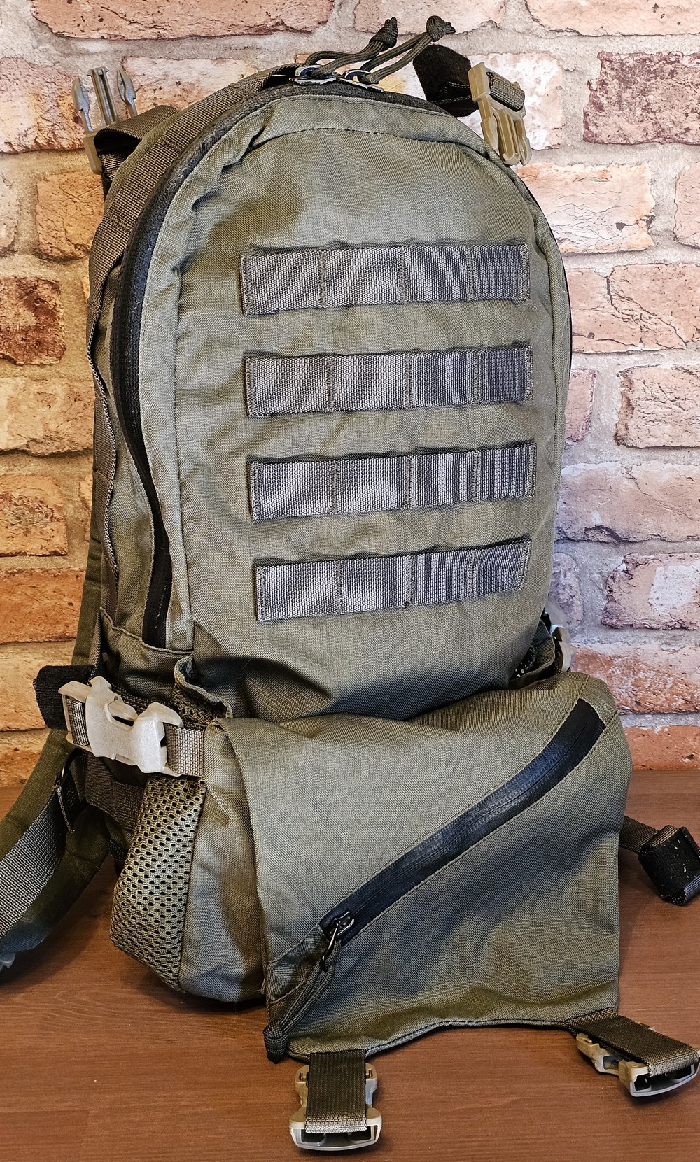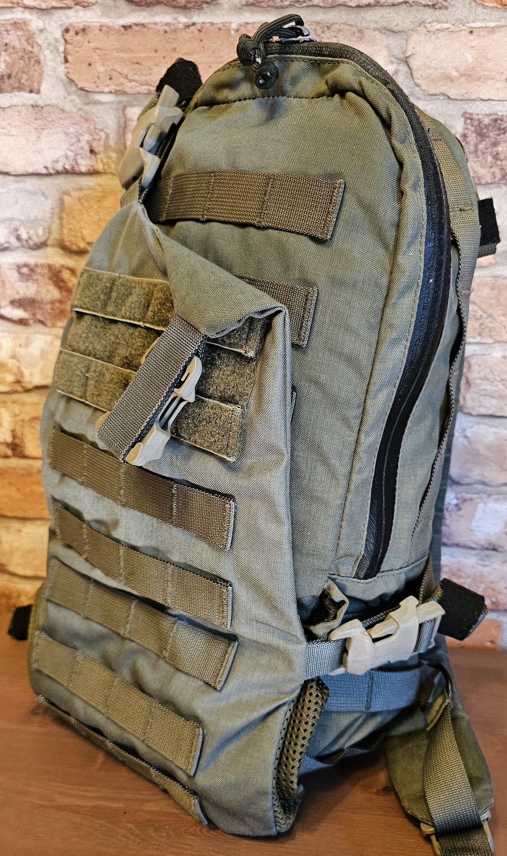 Na sprzedaż. Plecak taktyczny od Redriver w odcieniu Ranger Green. Kto nieco siedzi w temacie wie iż robią nie liche rzeczy. Mogę się mylić, ale plecak nie do dostania na dzień dzisiejszy na rynku. Stan plecaka oceniam na Dobry. Z bardziej rzucających się rzeczy, jedynie to laminat zamka zaczął odchodzić w najwyższym punkcie plecaka. D-Ring z lekką rdzą. Poza tym nie stwierdzam defektów. Materiał - oryginalna Cordura, Zamki - YKK, Wszystkie D-ringi użyte w konstrukcji plecaka wykonano z metalu, Wszystkie klamry to konstrukcja ITW NEXUS, Wszelkie taśmy zabezpieczone rzepami. Zainteresowany? Pytania, prośby o więcej zdjęć? Zapraszam do Kontaktu. Pozdrawiam