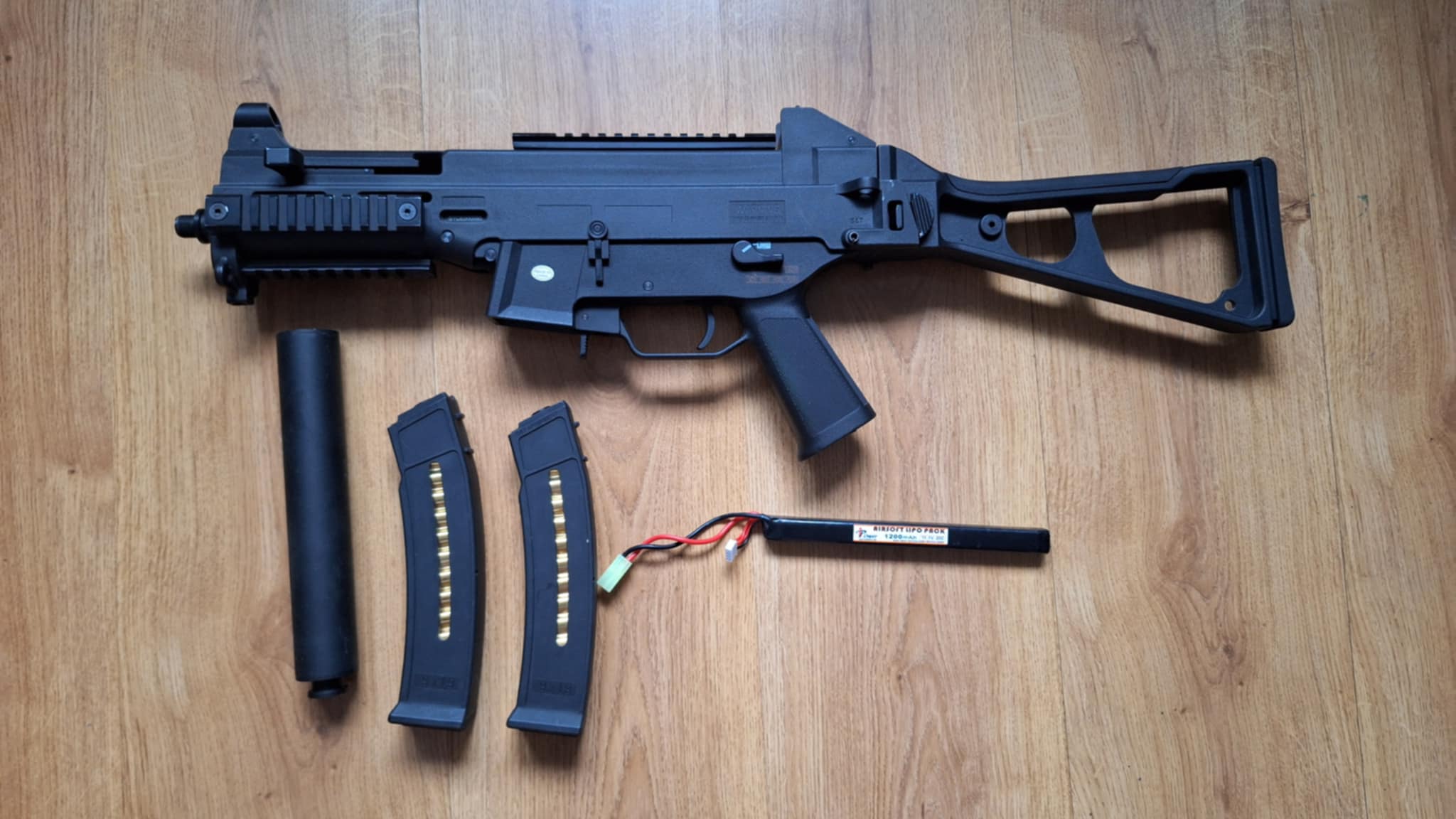 Dzień dobry, mam na sprzedaż replikę pistoletu maszynowego UMP9 od firmy S&T. Do repliki dołączam 2 magazynki mid-cap na 100 kulek każdy oraz akumulator lipo. Replika strzela na 300 FPS i około 1,05 J. Wymieniona została sprężyna w celu uzyskania takich parametrów co dobrze sprawdza się na CQB. Replika posiada system szybkiej wymiany sprężyny. Używana przeze mnie od około 1,5 roku. Była na strzelankach CQB oraz na lesie i świetnie dawała sobie radę. Używana na kulkach 0.25. Zasięg do 40/50 metrów. Nosi lekkie śladu użytkowania, ale całość trzyma się dobrze i wizualnie jest świetnie. Replika na ciągłym trybie ognia jest w stanie wstrzelić 24 kulki na sekundę. Dodatkowo po złożeniu i ze zdjętym tłumikiem replika ma jedynie 45 cm długości, co na rozgrywkach CQB jest dużą wartością dodaną. Akumulator ładowany był poprzez ładowarkę mikroprocesorową, nie ma dużych ubytków na wydajności od jego zakupu. Replika jest w stanie pracować na pełnym ładowaniu na pewno 8 godzin (najdłuższa moja rozgrywka). W trakcie użytkowania repliki nie było żadnych problemów. Możliwość odbioru osobistego.