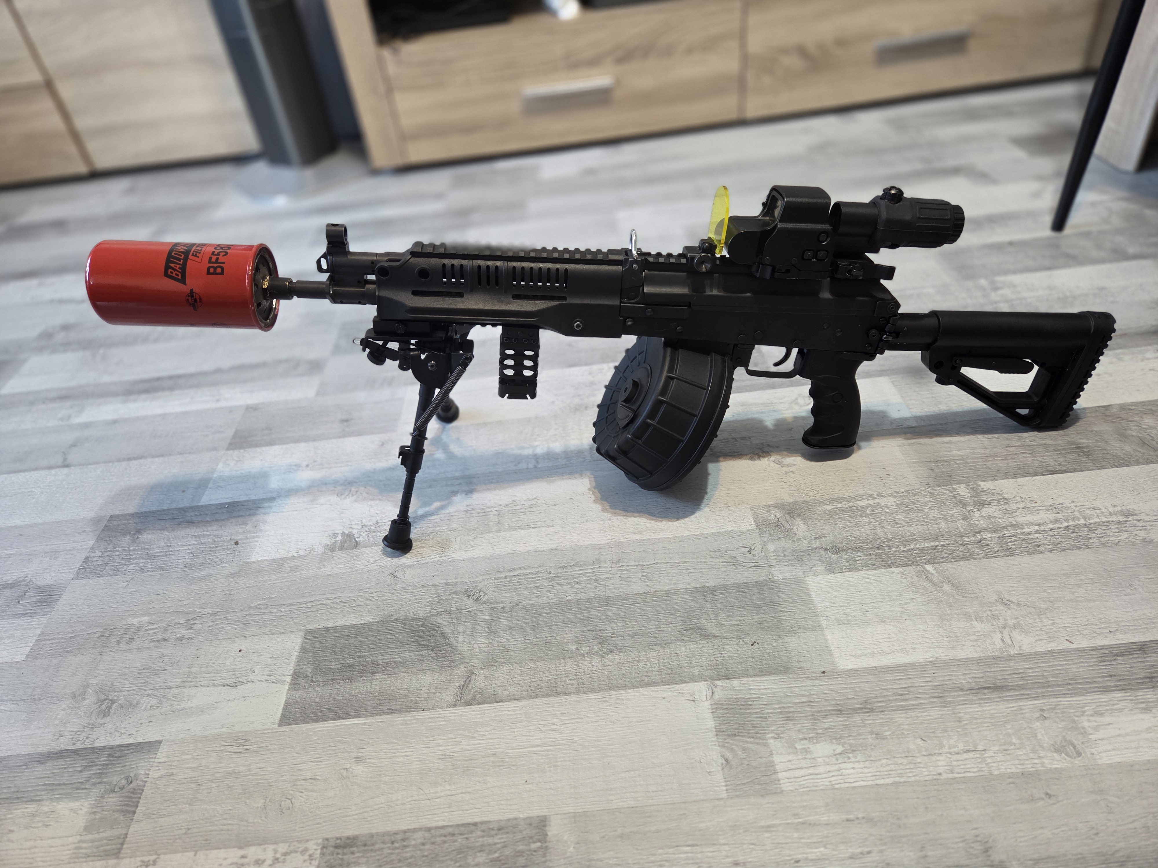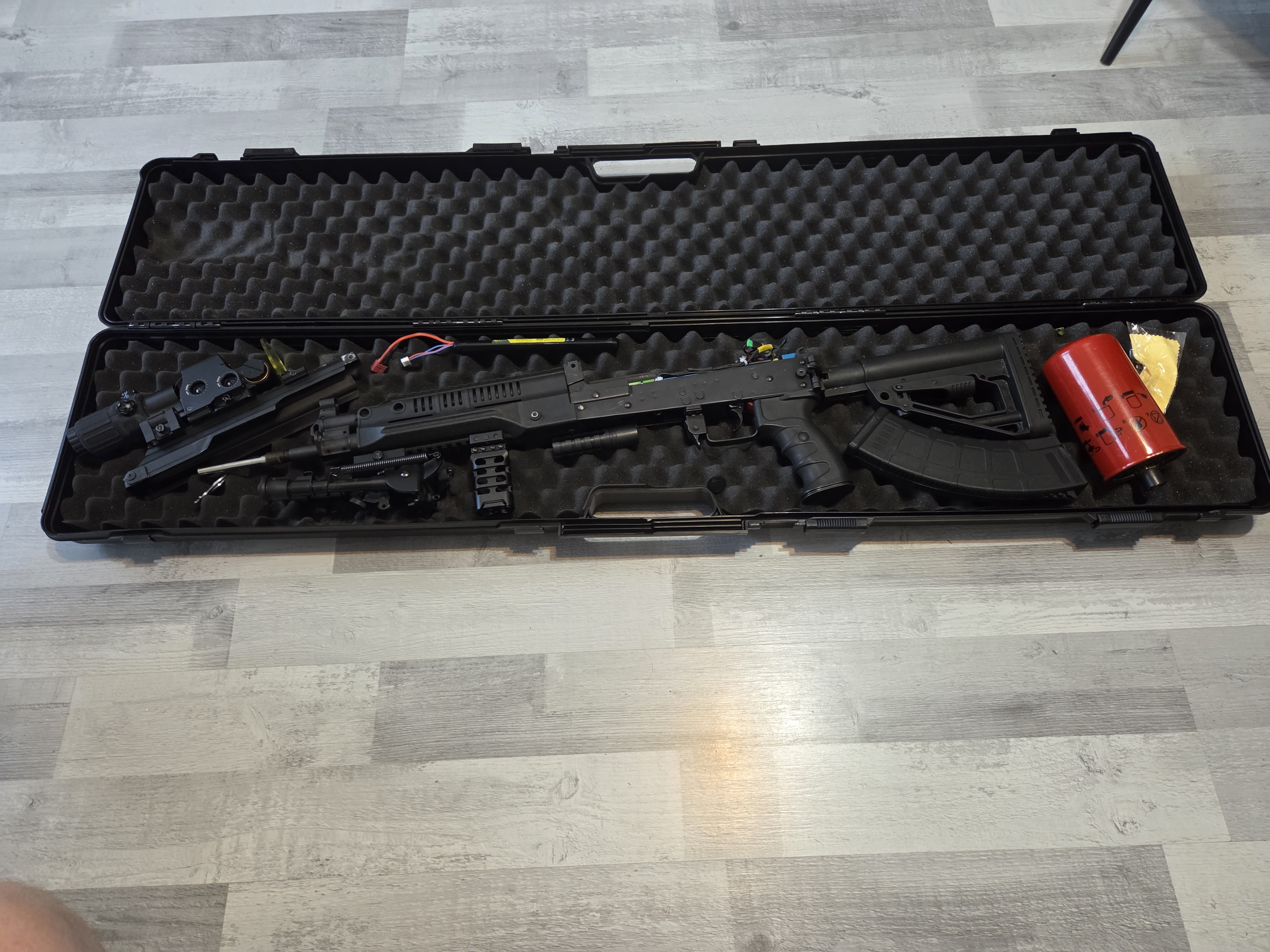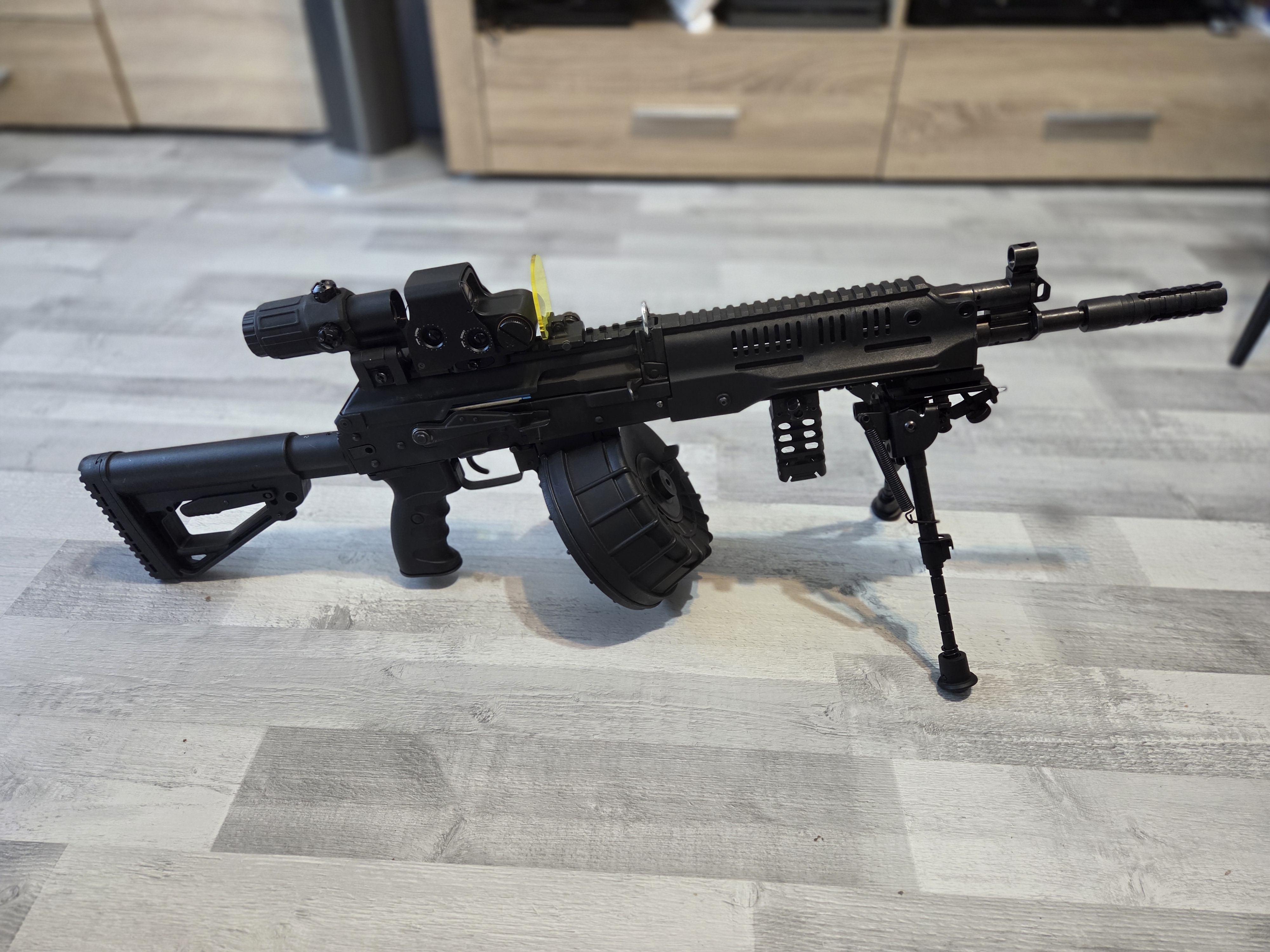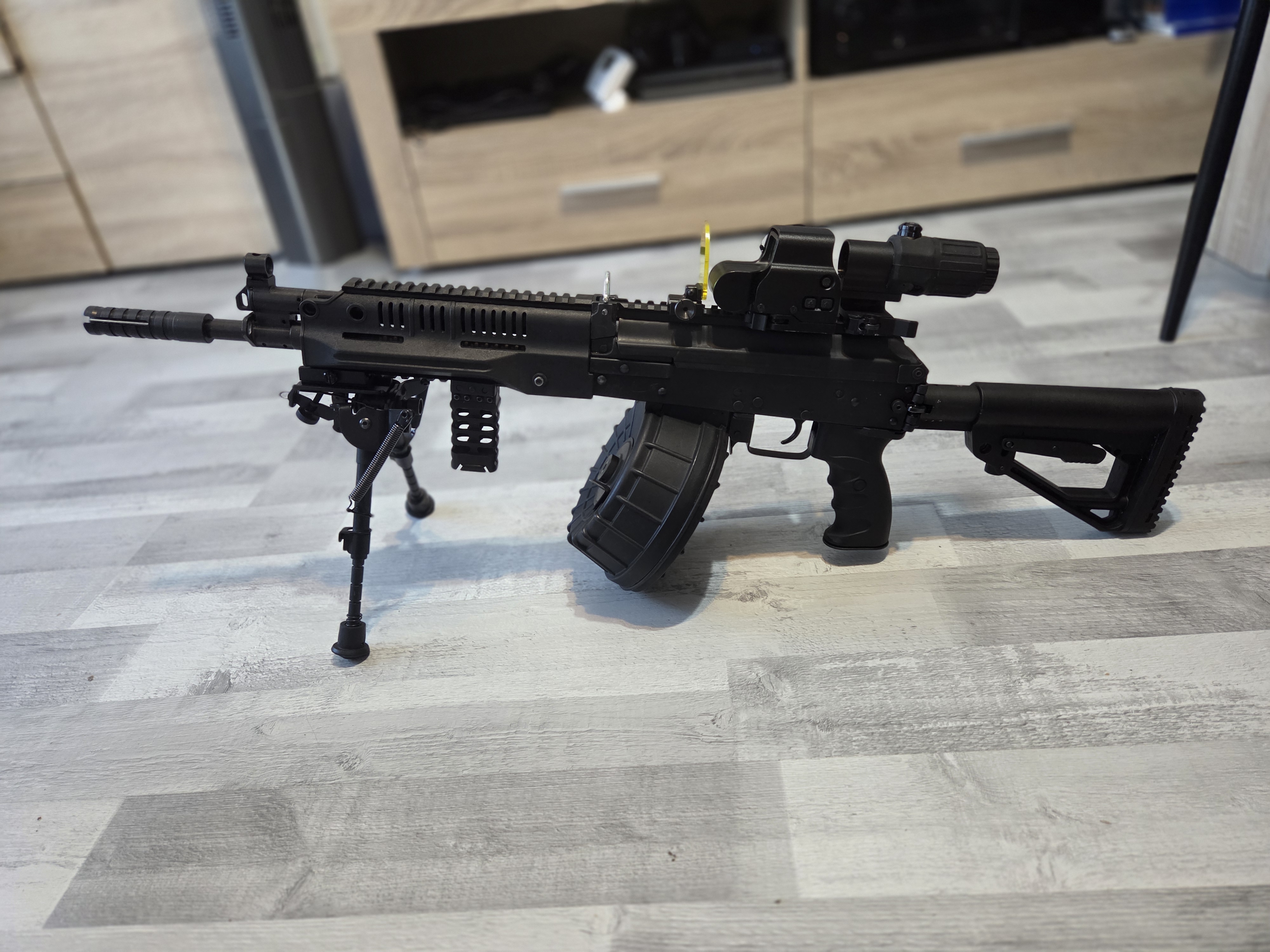 Sprzedam w całości. Wszystko zakupione 10.2023 potwierdzone rachunkami. W pełni sprawne. Przerobiona szybka wymiana baterii. Specyfikacja: -Karabin maszynowy AEG LCT LCK-16 zakup 19.10.2023 -Lufa precyzyjna Lambda Airsoft ONE 6,01x469 mm -Luneta typu magnifier Aim-O 3x30 ET Style – Czarna -Kolimator JJ Airsoft XPS 3-2 QD – Black -Aluminiowy szkielet gearboxa V3 CNC Specna Arms – QD -Stalowa, łożyskowana prowadnica sprężyny Tornado do gearboxa V.3 -Zębatki stalowe Arma Tech Smooth Gear – 100:200 -Zestaw łożysk kulkowych 8 mm Modify J-caged Hybrid Ceramic -Zestaw podkładek do kół zębatych Modify -Listwa dosyłacza Point do replik z gearboxem V3 -Zestaw kontrolera Gate Titan V3 Basic set -Zestaw Bore-Up Modify do replik AK-47/47S -Tłok Modify Quantum z 14 stalowymi zębami -Regulowany dwójnóg Cyma -Gumka Hop-Up R-Hop Master Mods do replik AEG -Silnik Tornado F1 High Torque gen.2 – Krótki -Zestaw bezpieczników Gate mini -Magazynek hi-cap na 600 kulek do replik typu AK (C189) -Nieliniowa sprężyna główna NON-LINER Spring MS170 SP -Dysza Bore Up do replik AEG długości 20,90mm -Kufer na replikę -Bateria Li-Po 1200mAh 11,1V 2S