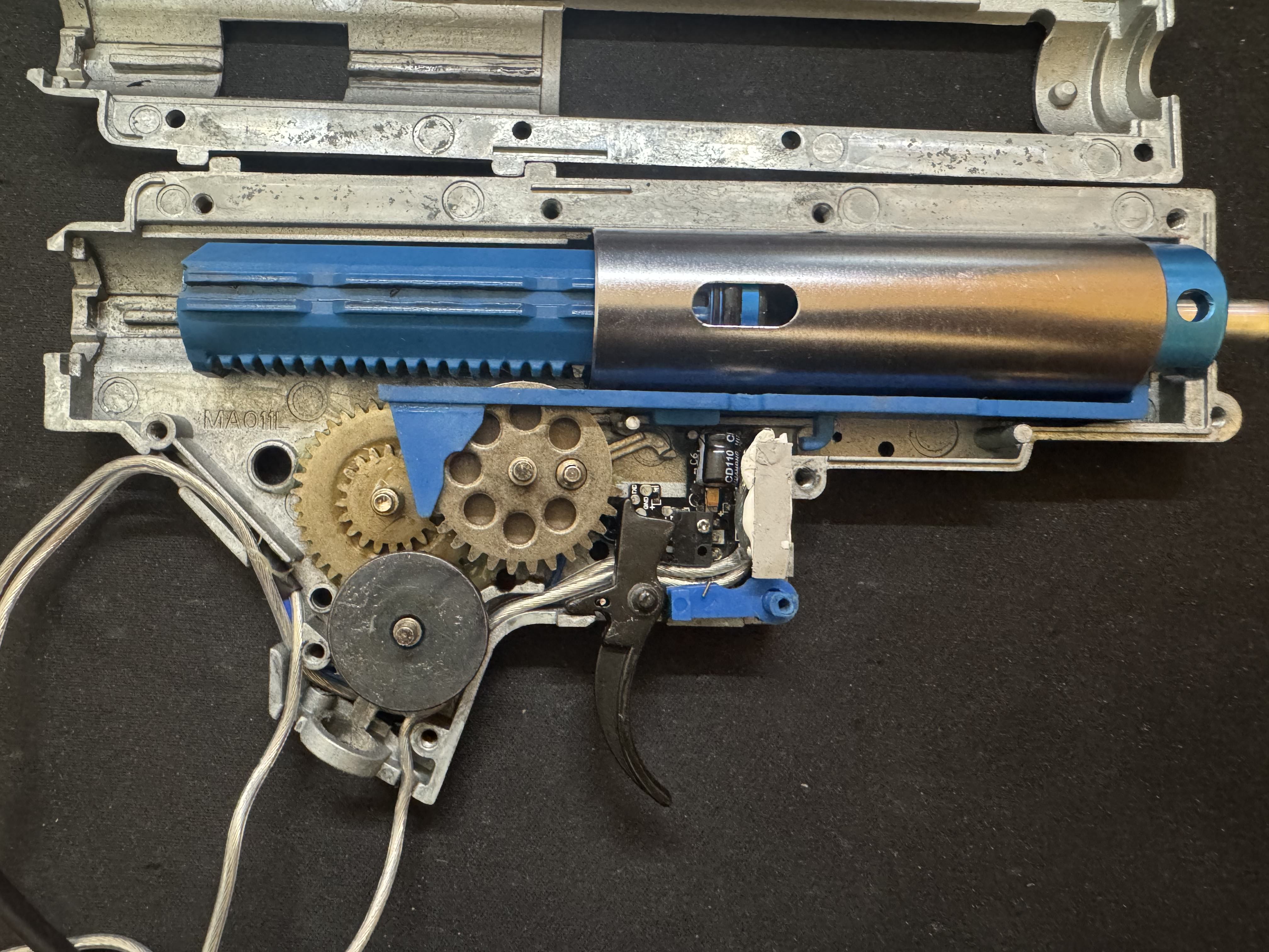 GB z Cymy platinium sr-25 (cm.098). Generalnie przebieg pewnie z 500 kulek na stock springu ze zmienioną dyszą - pluł jakoś okolice 1.9J wtedy. Do końca sprawne, ja zrobiłem tuning większy i poszedł szkielet CNC z innym środkiem. Pneumatyka szczelna, układ elektroniczny nie sprawiał żadnych problemów (sam gearbox leży w szafce już prawie rok), zębatki etc sprawne - to co jest w środku to do końca w całości działało. Dodatkowo dorzucam stock lufę z komorą i gumką - tyle co do chrono była użyta i od razu wymieniona na inny zespół. Brakuje: sprężynka tappeta antyreversal prowadnica sprężyny bolt catcha (te elementy przykręcane do GB) płytki selektora Może jakiejś drobnicy jeszcze brakować - ale chyba nie, nie zauważyłem żeby czegoś innego brakowało. Odbiór Kraków lub wysyłka Cena do rozsądnej negocjacji Można też komunikować się telefonicznie: 506961445