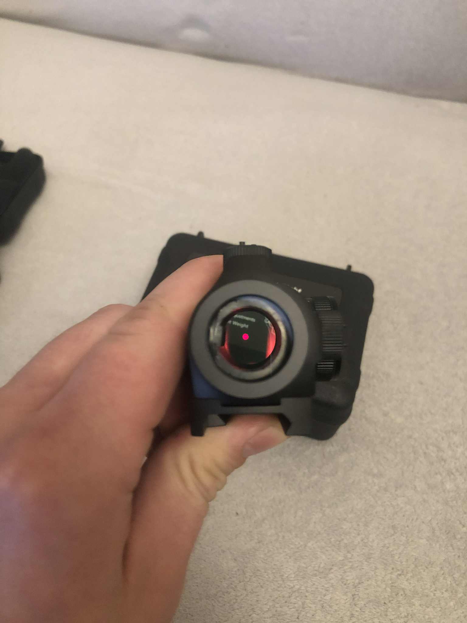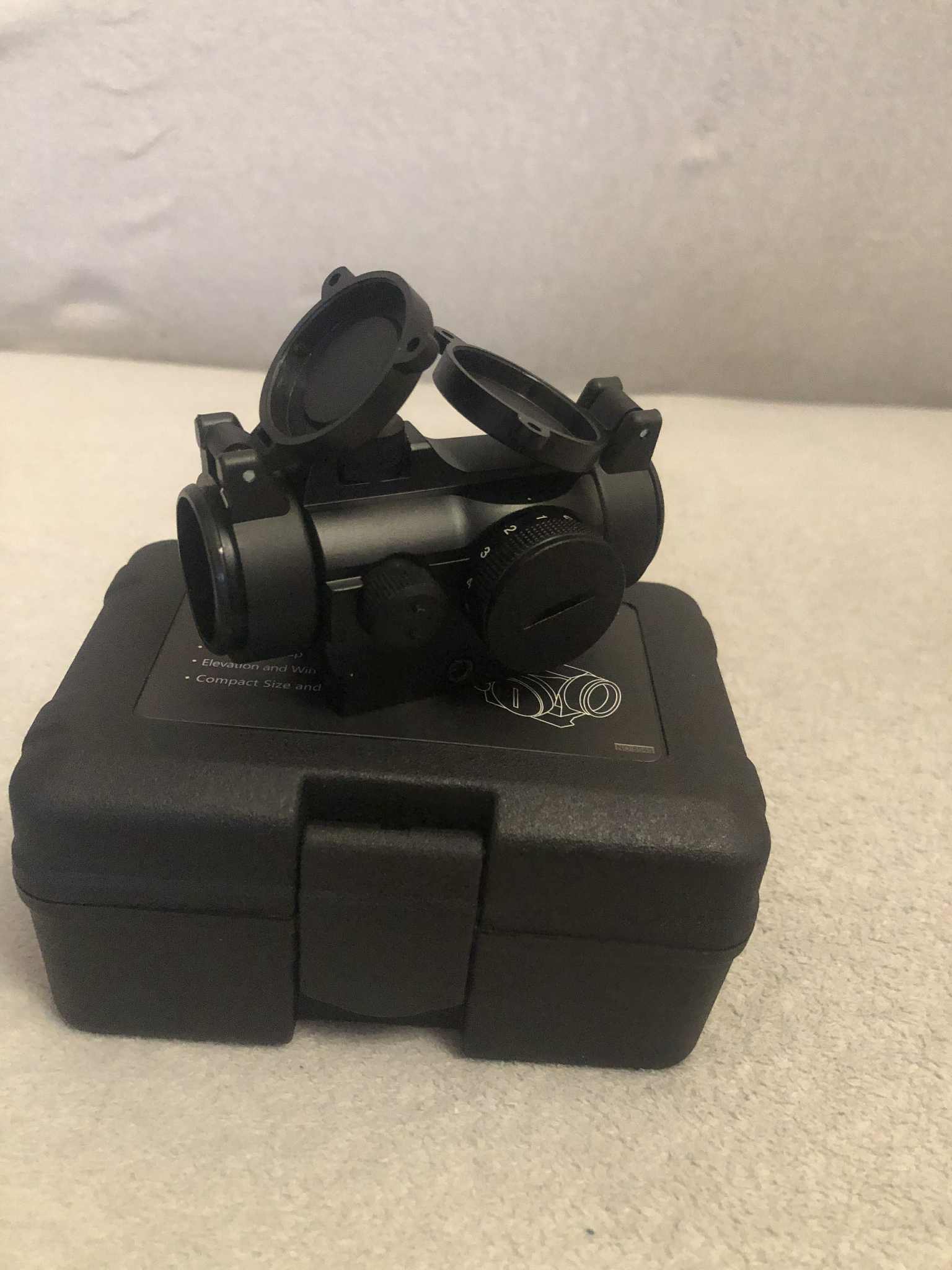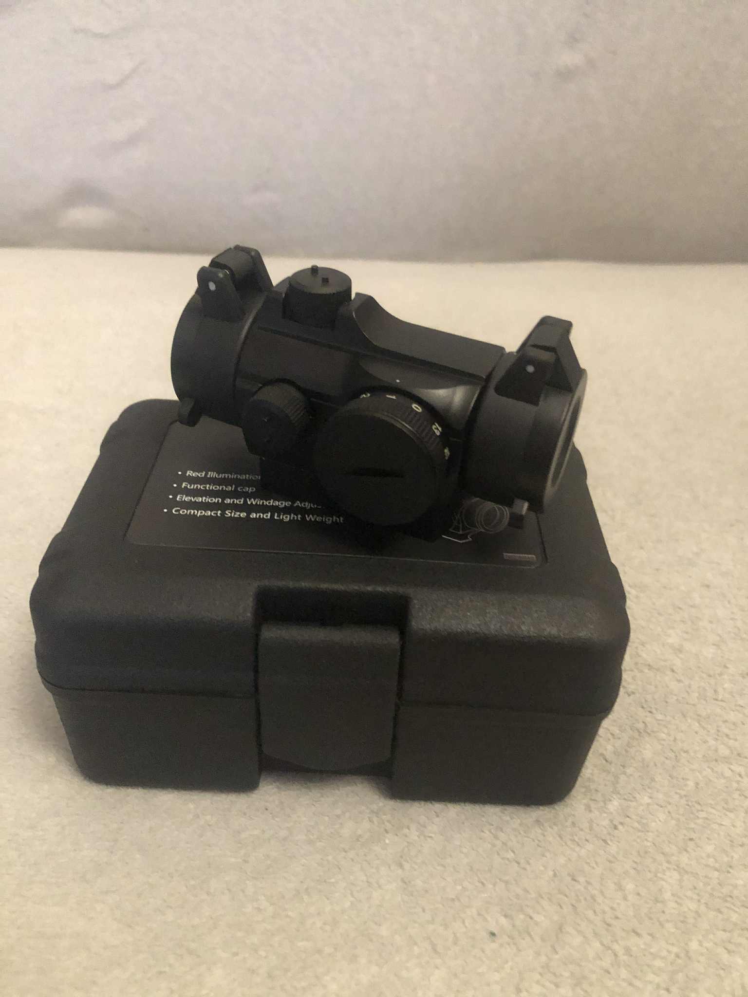 Sprzedam celownik kolimatorowy red dot - czarny z montażem na szynę RIS. Wygląd na kopie T1. Brak śladów użytkowania, jasna wyraźna kropka z możliwością regulacji. W zestawie pudełko, bateria, osłonki widoczne na zdjęciach oraz ściereczka do wycierania. Zainteresowanych zapraszam do kontaktu po szczegóły Przy zakupie kilku przedmiotów możliwość negocjacji ceny.