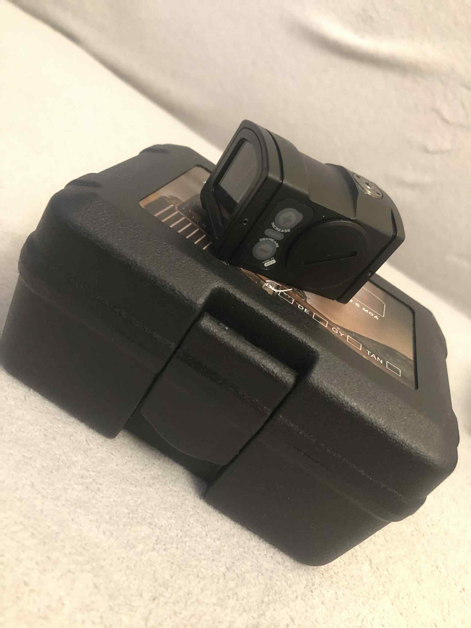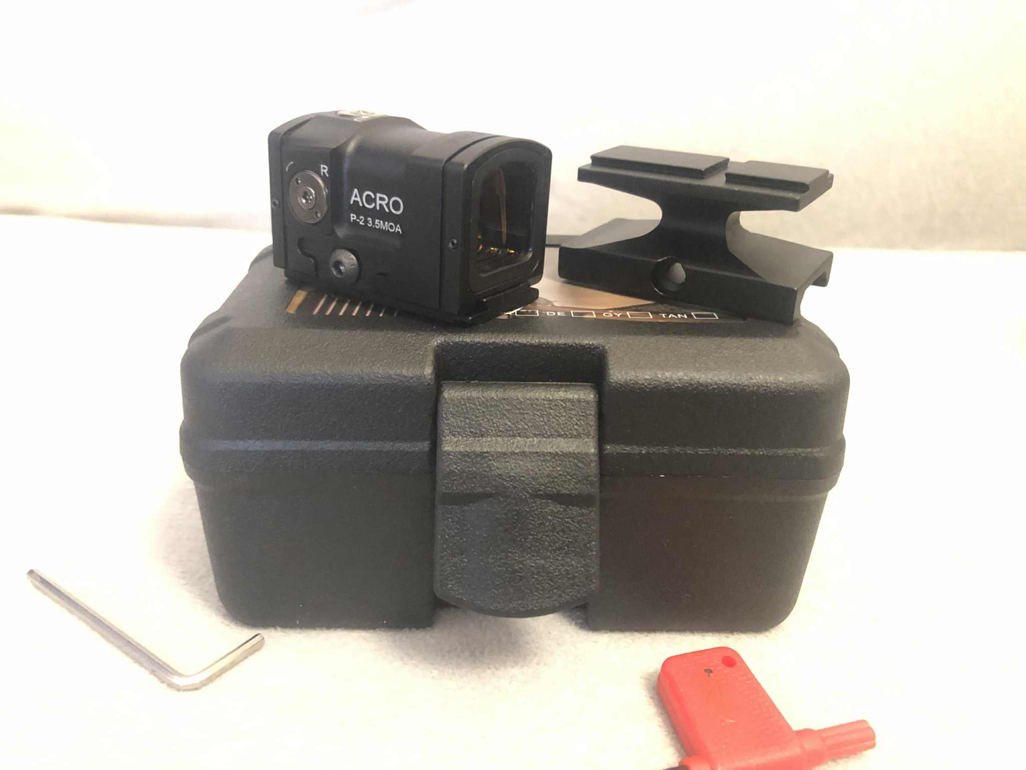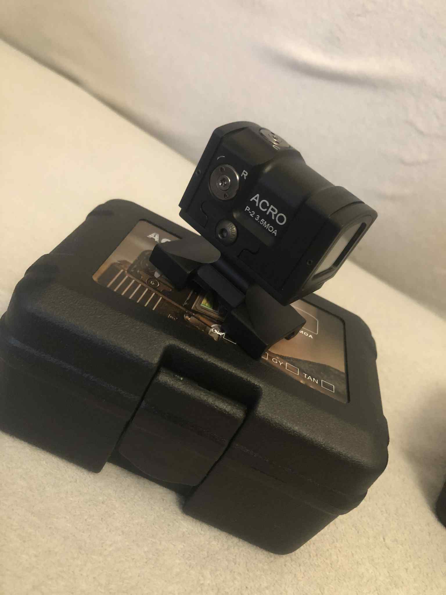 Sprzedam replikę kolimatora zamkniętego ACRO P2 Aimpoint. Kolimator z pełnymi oznaczeniami Aimpointa widocznymi na zdjęciach oraz jasną wyraźną kropką z regulacją. Brak śladów użytkowania. W zestawie płytka montażowa do serii Glock gen. 5 oraz podwyższenie montowane na RIS oraz akcesoria widoczne na zdjęciach. Na życzenie moge przesłać footprint. Zainteresowanych zapraszam do kontaktu po szczegóły Przy zakupie kilku przedmiotów możliwość negocjacji ceny.