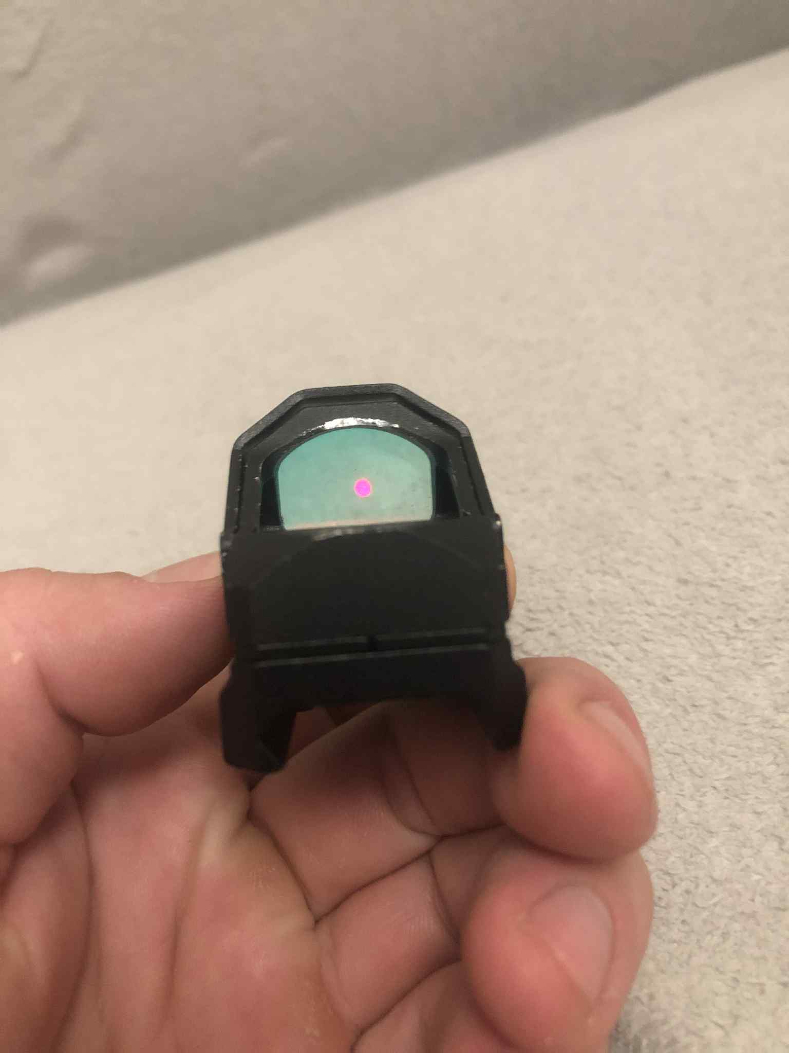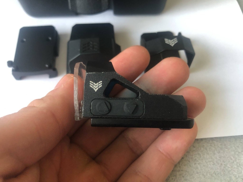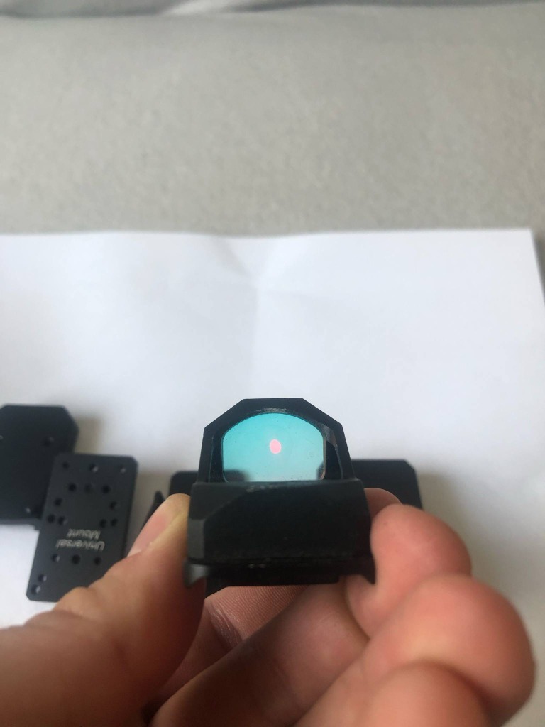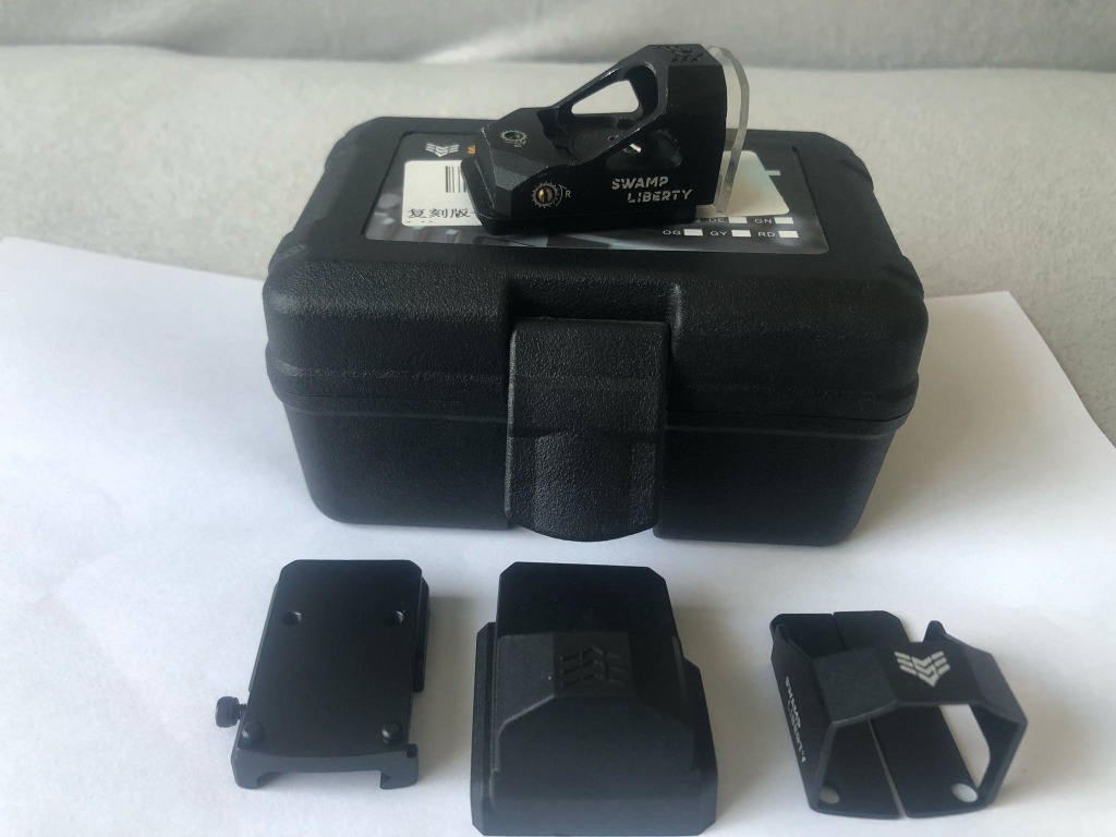 Sprzedam celownik kolimatorowy typu Swamp Liberty, repro Swampfox, celownik używany. W zestawie wszystkie montaże i osłonki widoczne na zdjęciach (poza skreślonym) jasna wyraźna kropka, na przodzie przyklejona ochronna pleksa, wygląda średnio, ale działa. Taśma jest na tyle mocna, że trzymała szkiełko bez problemu na blowbacku przy strzelaniu z automatu na G18C od WE, oczywiście pleksa testowana. W zestawie dwie baterie. Aktualny stan widoczny na ostanim zdjęciu, pokrywka niestety znacznie porysowana ale kolimator w pełni sprawny i trzyma baterie. Zainteresowanych po szczegóły zapraszam do kontaktu.