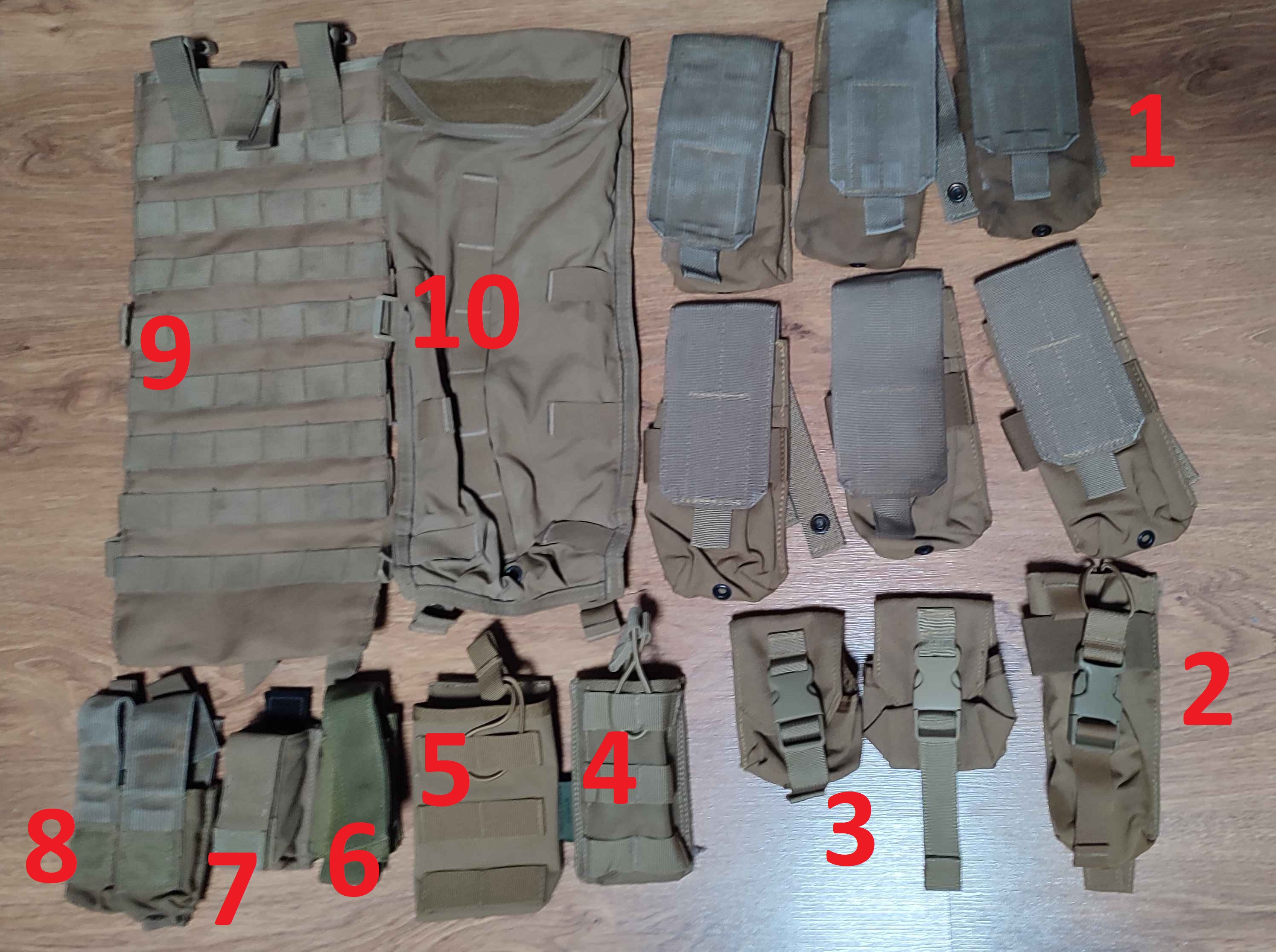 Wysyłka paczkomatem 17zł. Po więcej zdjęć (metki etc.) zapraszam na priv. 1. Kontraktowe ładownice USMC na 2 magi M4/M16 od Fireforce, 6 sztuk , 59zł/szt 2. Ładownica na radio (PRC152, PRC148, Baofeng etc.) od amerykańskiego T3 Gear, cordura, 99zł 3. Ładownice na granat M67 od LBT, cordura (były w zestawie z RRV od LBT, mają dokładnie te same klamry), 29zł/szt 4. Ładownica otwarta na pojedynczy magazynek AR od Warrior Assault Systems, 35zł 5. Ładownica otwarta na pojedynczy magazynek AR od Condora, 25zł 6. Pojedyncza ładownica na granat 40mm od TMC, bardziej wpada w zielony, 20zł 7. Ładownica kydexowa na magazynek pistoletowy od Eagle Industries, kolor SCOY, 59zł 8. Podwójna ładownica na magazynki pistoletowe/granaty 40mm od Sandpiper of California (SOC), coyote brown cordura, 49zł 9. Kopia hydration carrier (pomieści butlę HPA) z SFLCS, kolor khaki, 49zł 10. Ładownica MOLLE na wkład hydracyjny/butlę HPA od ATS Tactical Gear, cordura coyote brown, 99zł