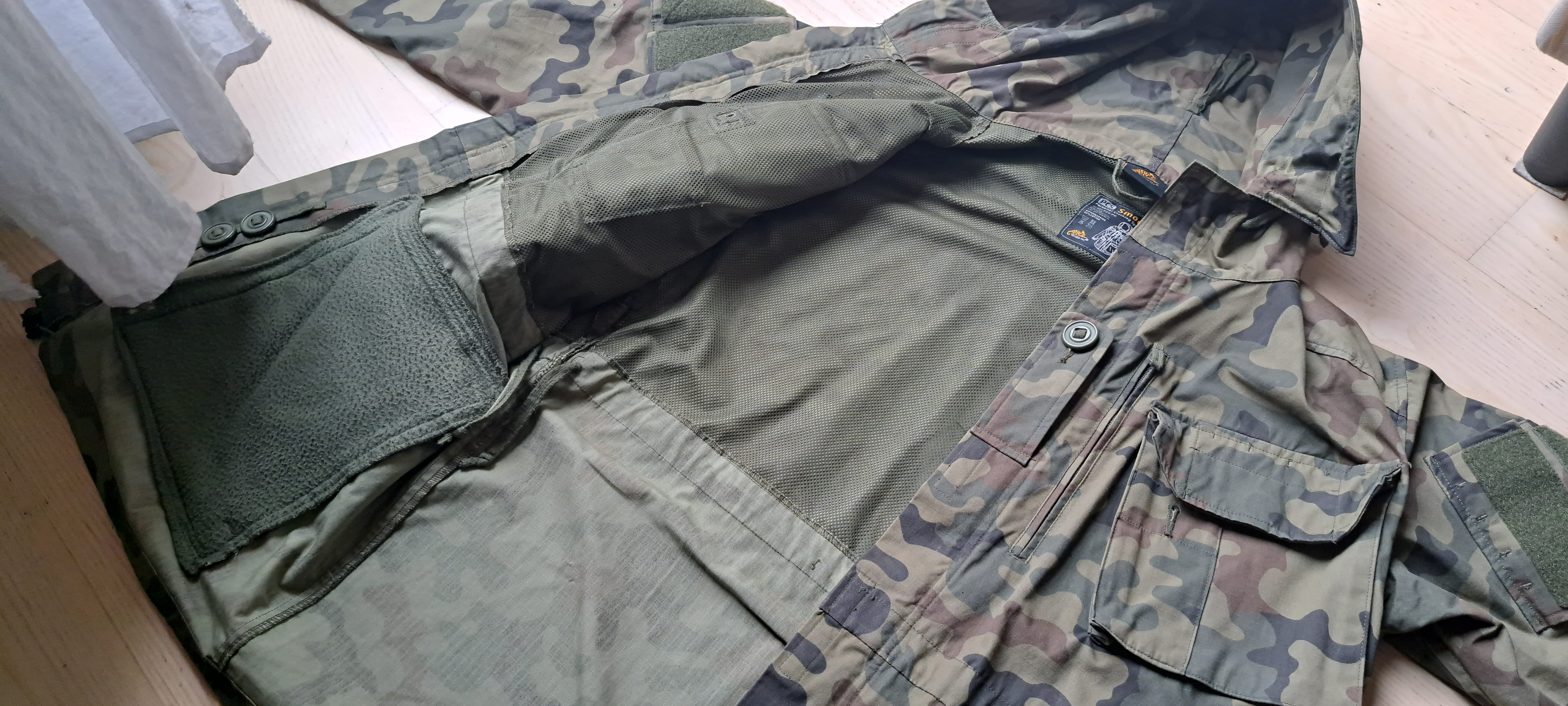! WYSYLKA WLICZONA W CENE ! Pytania proszę w sms na nr. 787-614-881 Witam na sprzedaż leci kurtka parę razy noszona jest cienka idealna w połączeniu z bluzką termiczną , nie osiada żadnych dziur otarć ogólnie żadnych uszkodzeń Rozmiar [180/104] OPIS JAKI PODAJE PRODUCENT HELIKON-TEX rodzina produktów : KU-PCS-PR-04 kolor : wz.93 leśny materiał : 60% bawełna, 40% poliester - RipStop pranie : 40C waga produktu : 1270 g Wiatroodporna Parka PCS Smock została wykonana według projektu klasycznej kurtki armii brytyjskiej. Kurtka jest wyposażona w 10 pojemnych kieszeni: - 2 skośne kieszenie cargo na piersi zapinane na guzik kanadyjski - 2 kieszenie na piersi podszyte nylonową siatką, zapinane na zamek - 2 duże dolne kieszenie zapinane na guzik kanadyjski - 2 dolne kieszenie ocieplone polarem - 2 kieszonki na rękawach zapinane na velcro Kurtka posiada regulowany, pojemny kaptur kompatybilny z hełmami balistycznymi. Obszerny krój z możliwością dopasowania, pozwala na wygodne użycie warstw ocieplających. Zaprojektowana tak, aby zapewnić doskonałą ochronę przed wiatrem i wodą, niezależnie od pogody. Dzięki zastosowaniu materiału PoliCotton RipStop o składzie 60% bawełna, 40% poliester- kurtka jest bardzo mocna, lekka i wytrzymała. Charakterystyczna jest dla niej duża wytrzymałość na przetarcia i rozdarcia, a także jest lżejsza i schnie szybciej niż materiał w 100% bawełniany. Dlatego to doskonały wybór dla wszystkich rodzajów zajęć na świeżym powietrzu, takich jak turystyka, wędkarstwo czy polowanie. Cechy produktu: podwójna warstwa materiału; zapinana na dwukierunkowy zamek błyskawiczny z listwą termiczną i patką; kaptur kompatybilny z hełmami odpinany, regulowany i ukrywany; suwaki wentylacyjne pod pachami; guziki kanadyjskie, ułatwiające otwieranie kieszeni; cztery kieszenie na klatce piersiowej; dwie kieszenie u dołu kurtki; dwie skośne kieszenie na ramionach; dwie obszerne kieszenie ocieplone polarem; velcro na ramionach dla łatwej personalizacji; pagon na piersi; elastyczna regulacja dołu i talii kurtki; wzmocnienia na dolnej części rękawów; regulowane mankiety za pomocą rzepów; rzepy na ramionach; dwa dodatkowe guziki wszyte od środka ! WYSYLKA WLICZONA W CENE ! Pytania proszę w sms na nr. 787-614-881 Pobranie tylko z kwotą zabezpieczającą 50zl Możliwy odbiór w Iławie