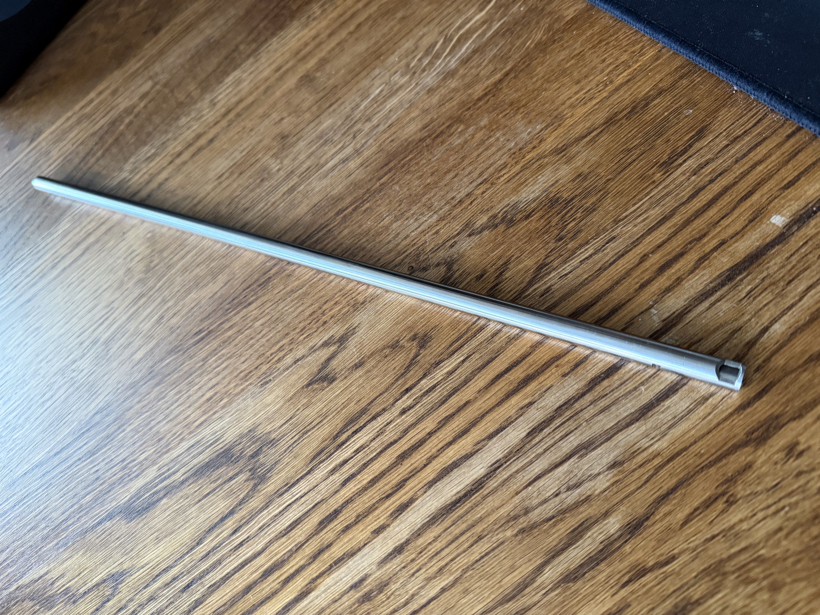 Sprzedam używaną lufę wewnętrzną PDI 6.05mm o długości 385mm do replik AEG. Lufa oryginalnie miała 509mm, ale została skrócona na tokarce w profesjonalnym serwisie ASG.