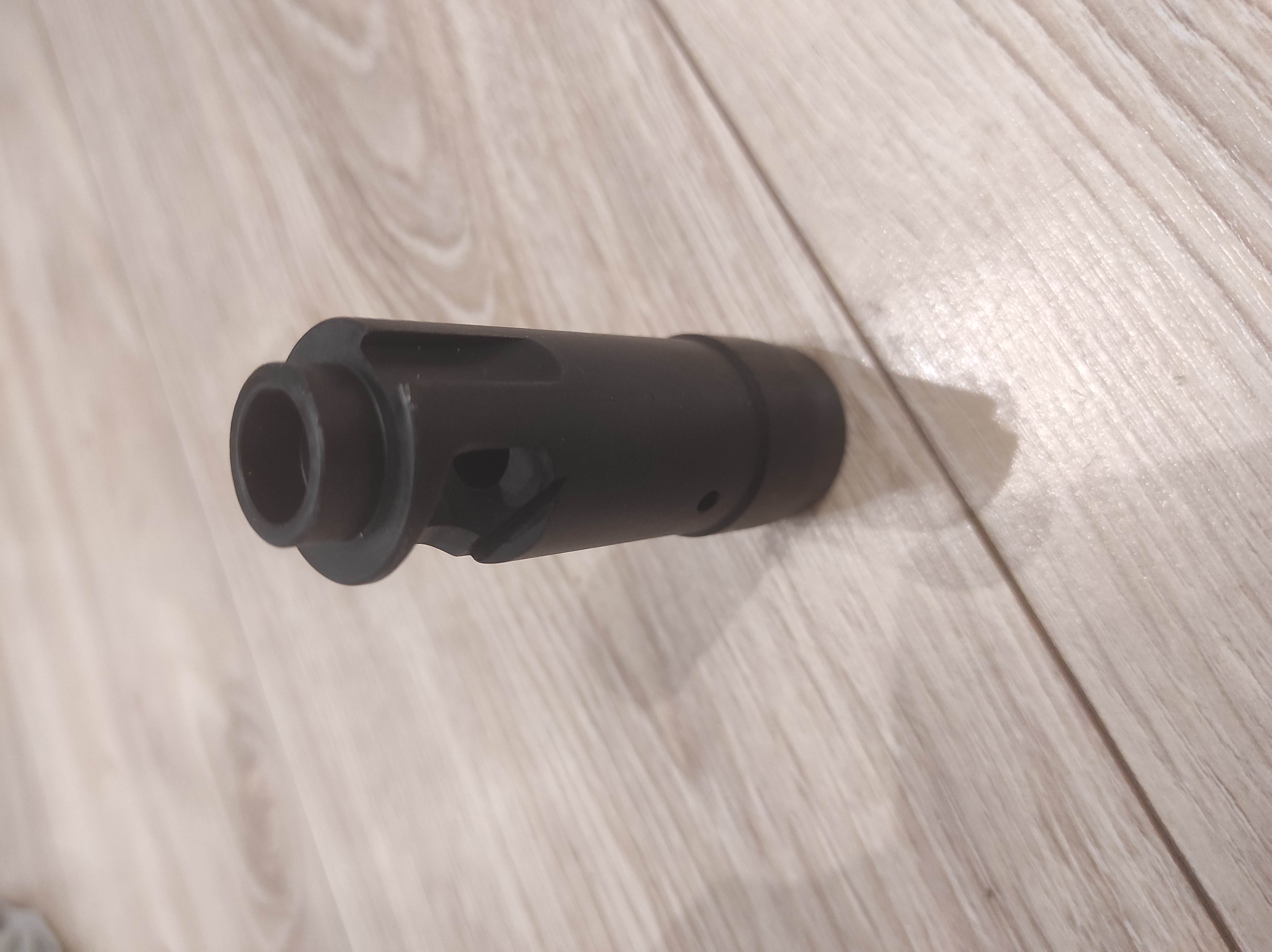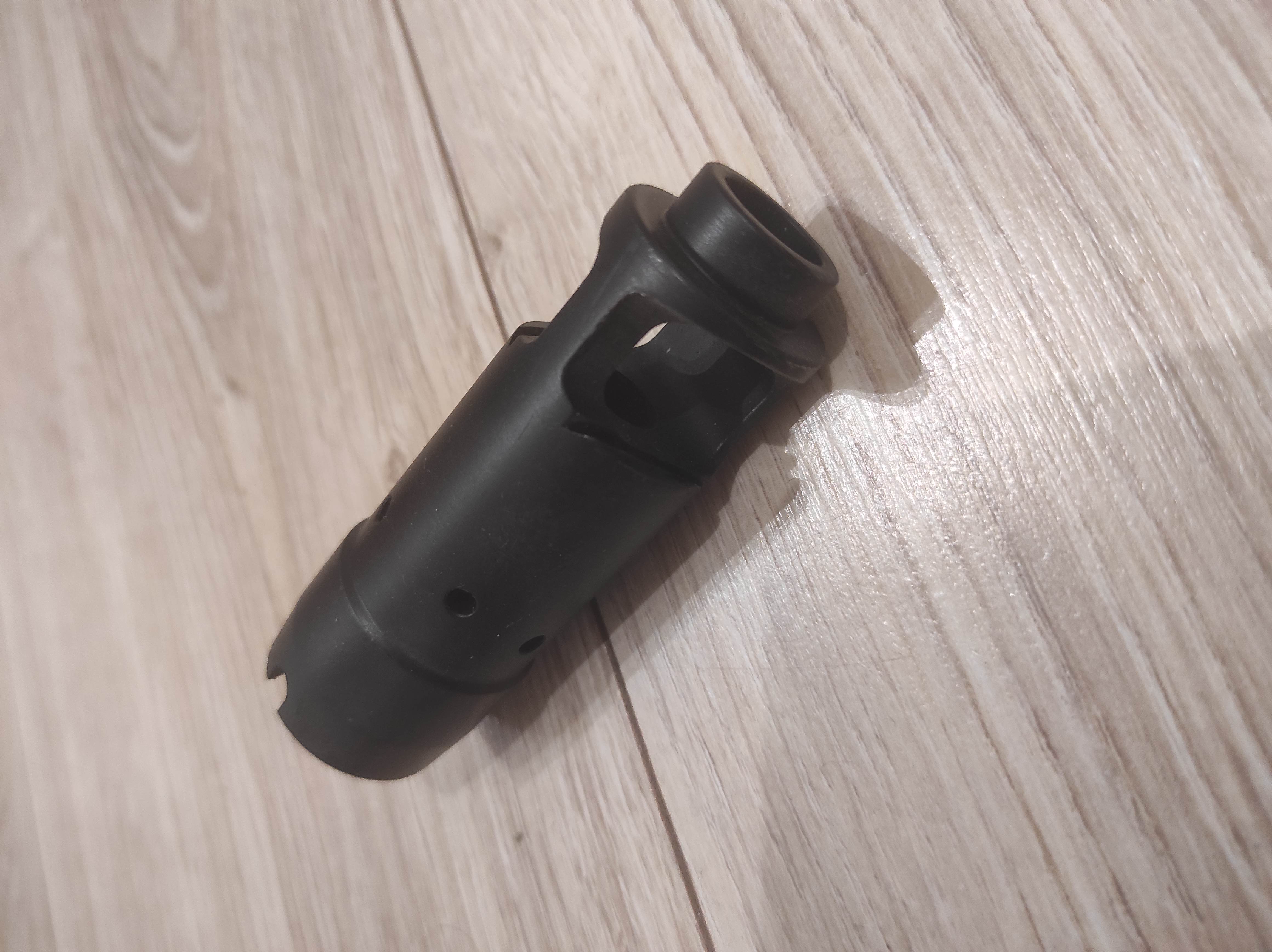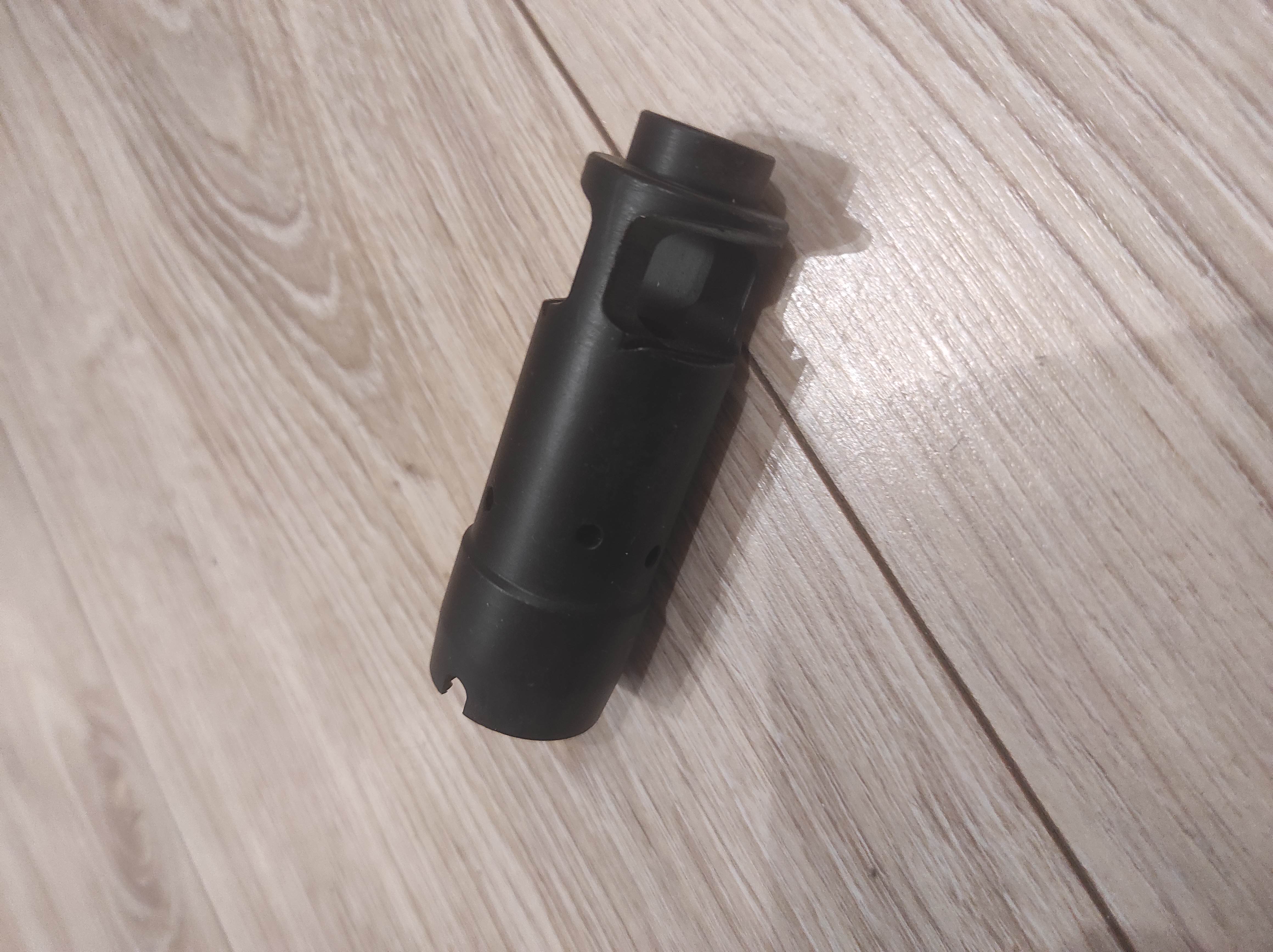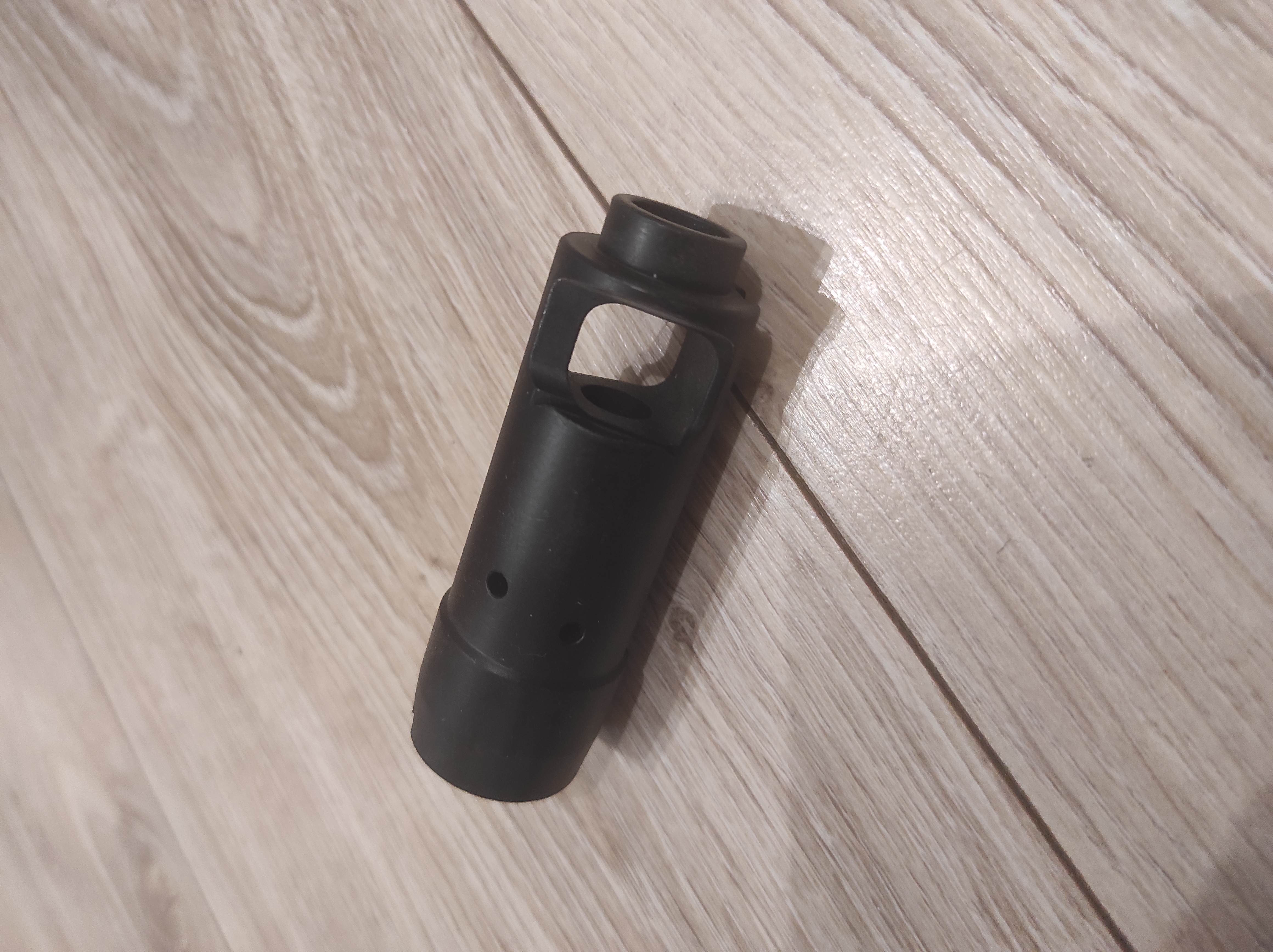 Cześć, na sprzedaż kompenastor do repliki AK, na duży gwint, chyba 22mm, stan jak na zdjęciach.