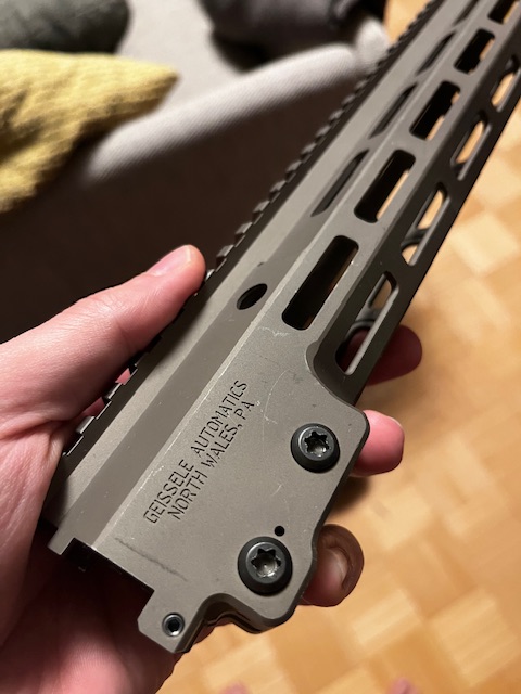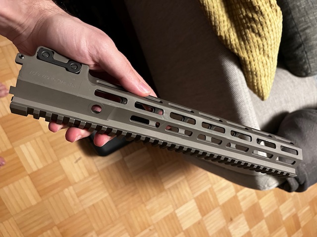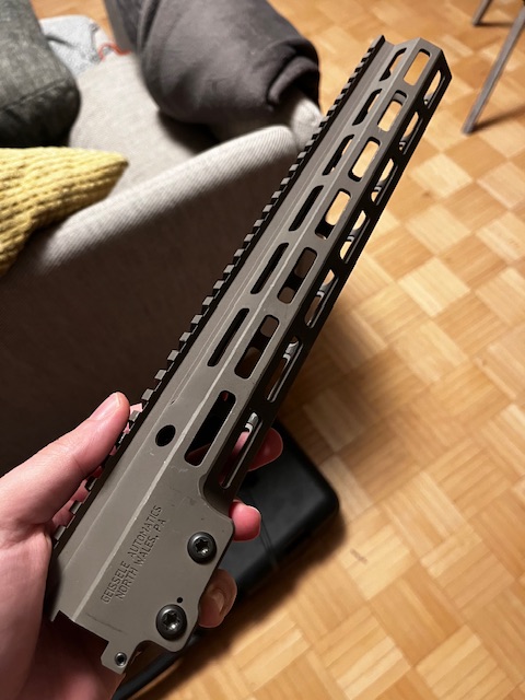 Szyny URG-I od HAO, długość najdłuższa czyli 13,5”. Stan bdb. Barrelnut w zestawie, gwint AEG/MWS