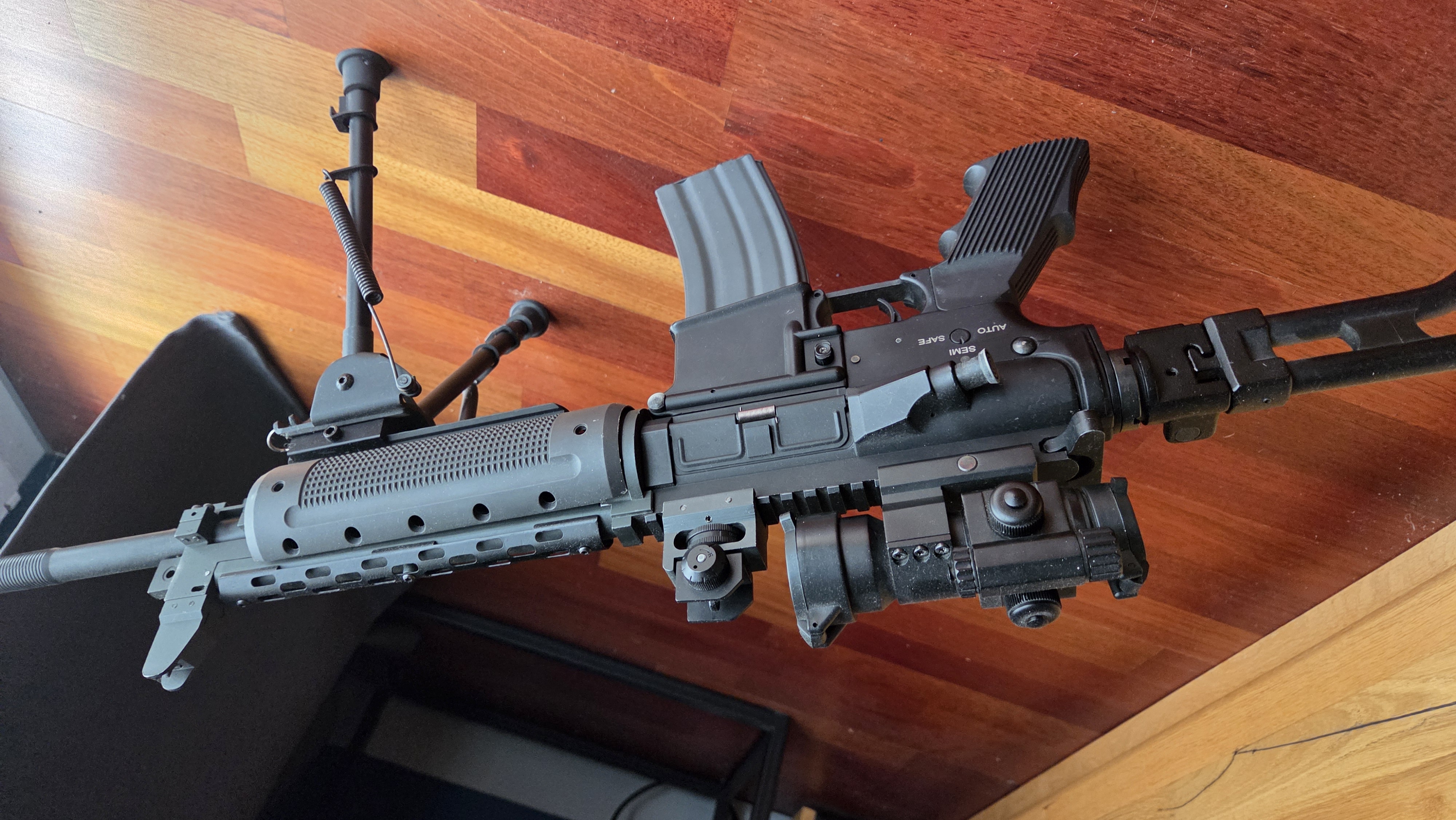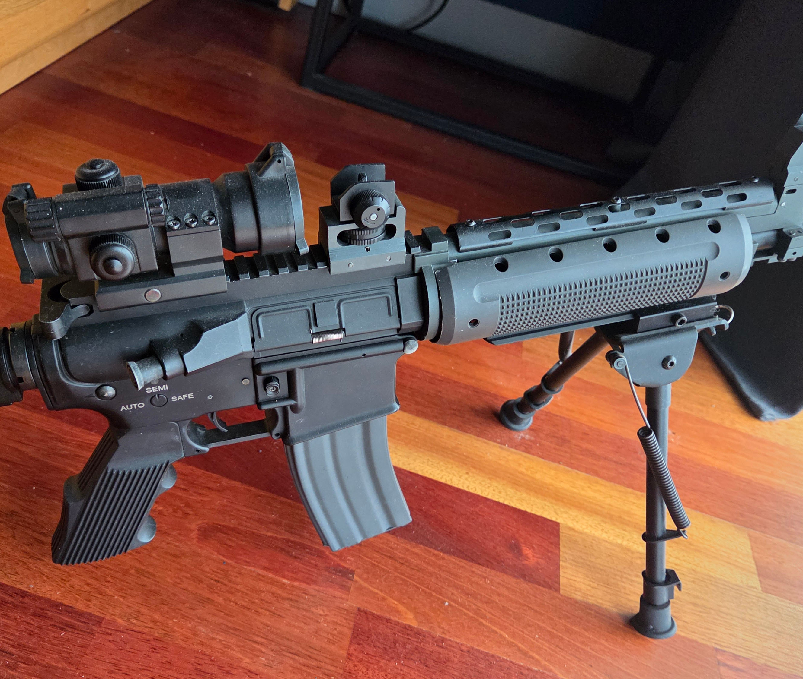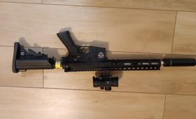 Dzień dovry! Na sprzedaż mam już od dawna nieużywaną replikę LR-300. Kupiona dobre 8-9 lat wstecz. Wymieniłem w niej baterię na mocniejszą, strzela i ogólnie fajna zabawka, ale głównie stoi i się kurzy. Nigdy nie była w terenie. W zestawie jest kolimator, dwójnóg, trochę kulek 0,3 i innych akcesoriów. Nie mam pojęcia ile to może być warte szczególnie, że najpewniej jakaś sprężyna w zamku jest uszkodzona. Zależy mi, żeby się tego pozbyć i może komuś sprawi radość.