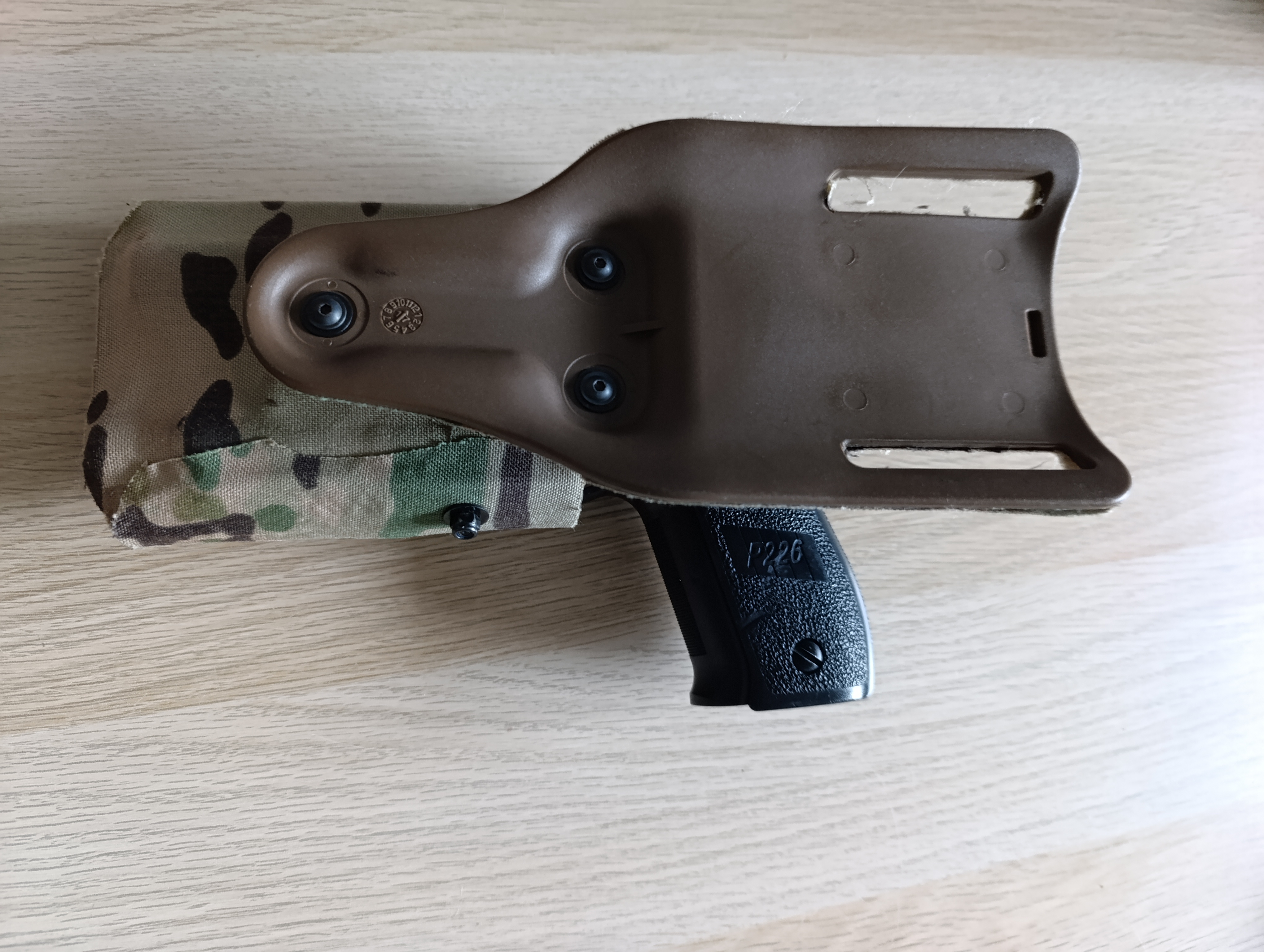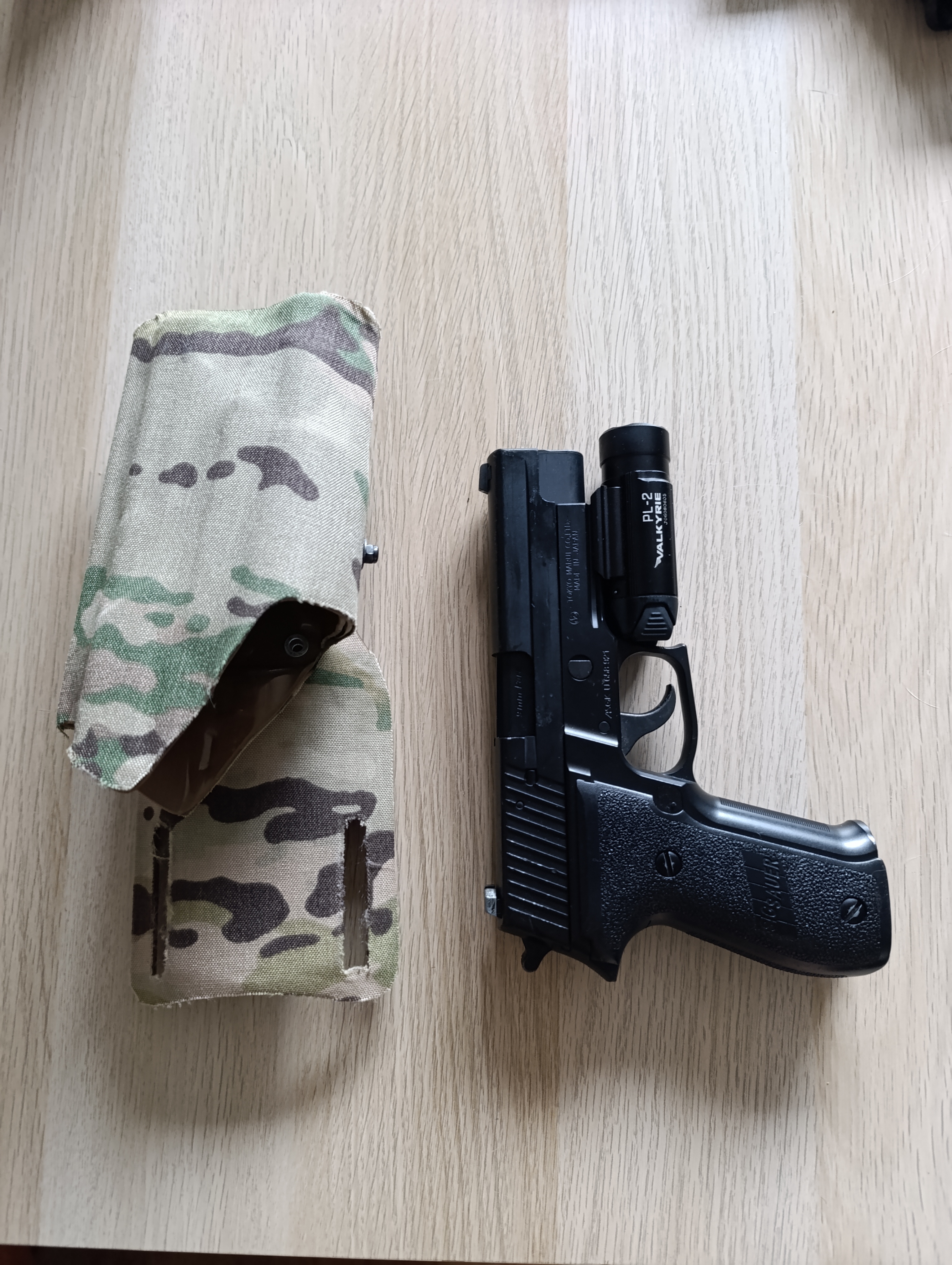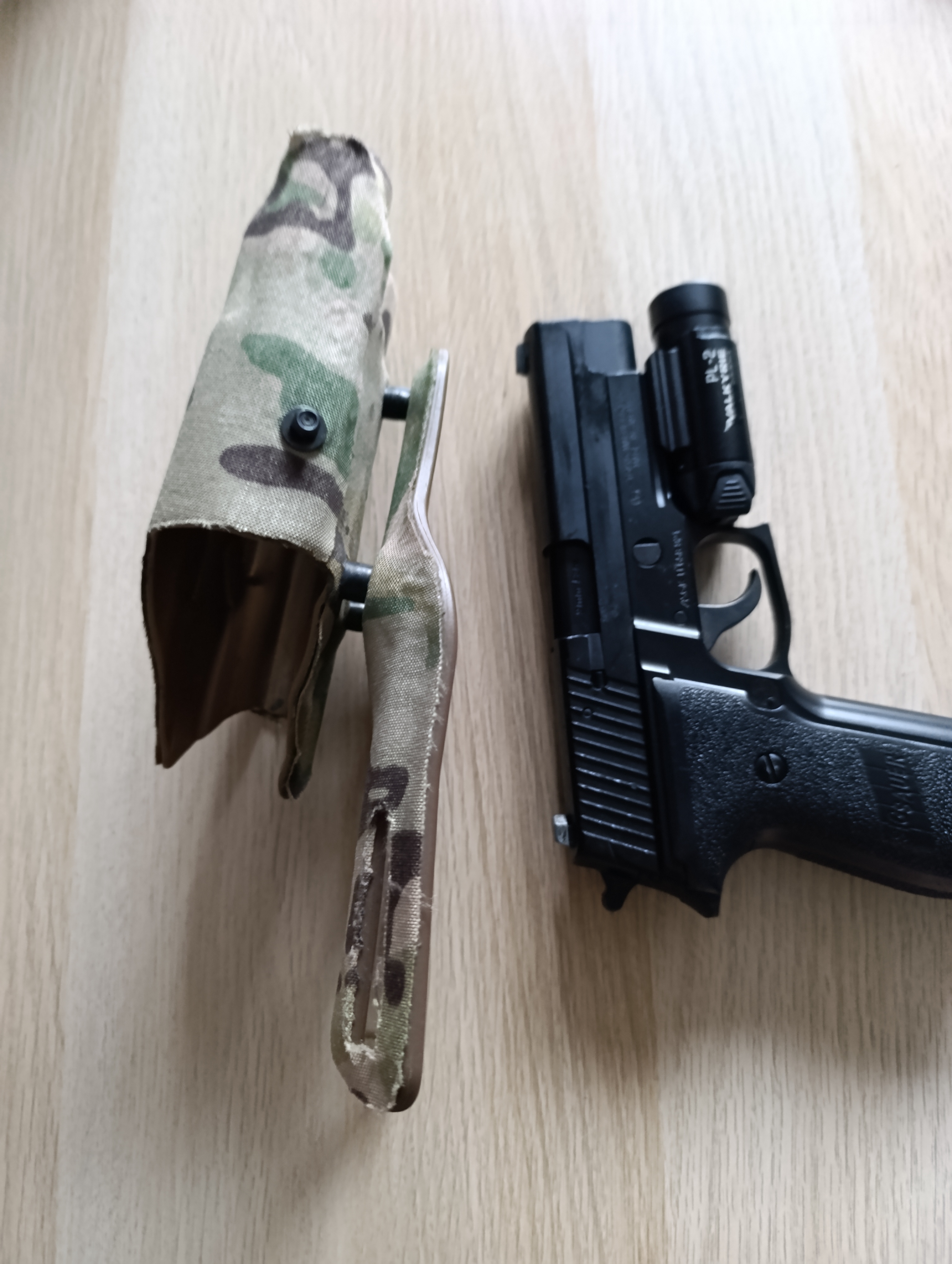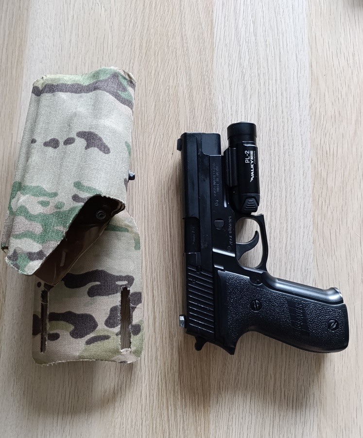 Sprzedam kaburę kopię do P226 z latarką, w multicam. Na zdjęciach z P226 TM z latarką olight PL-2 valkyrie - najlepiej pasuje z tą latarką. Replika i latarka, tylko jako rekwizyt, nie są na sprzedaż.
