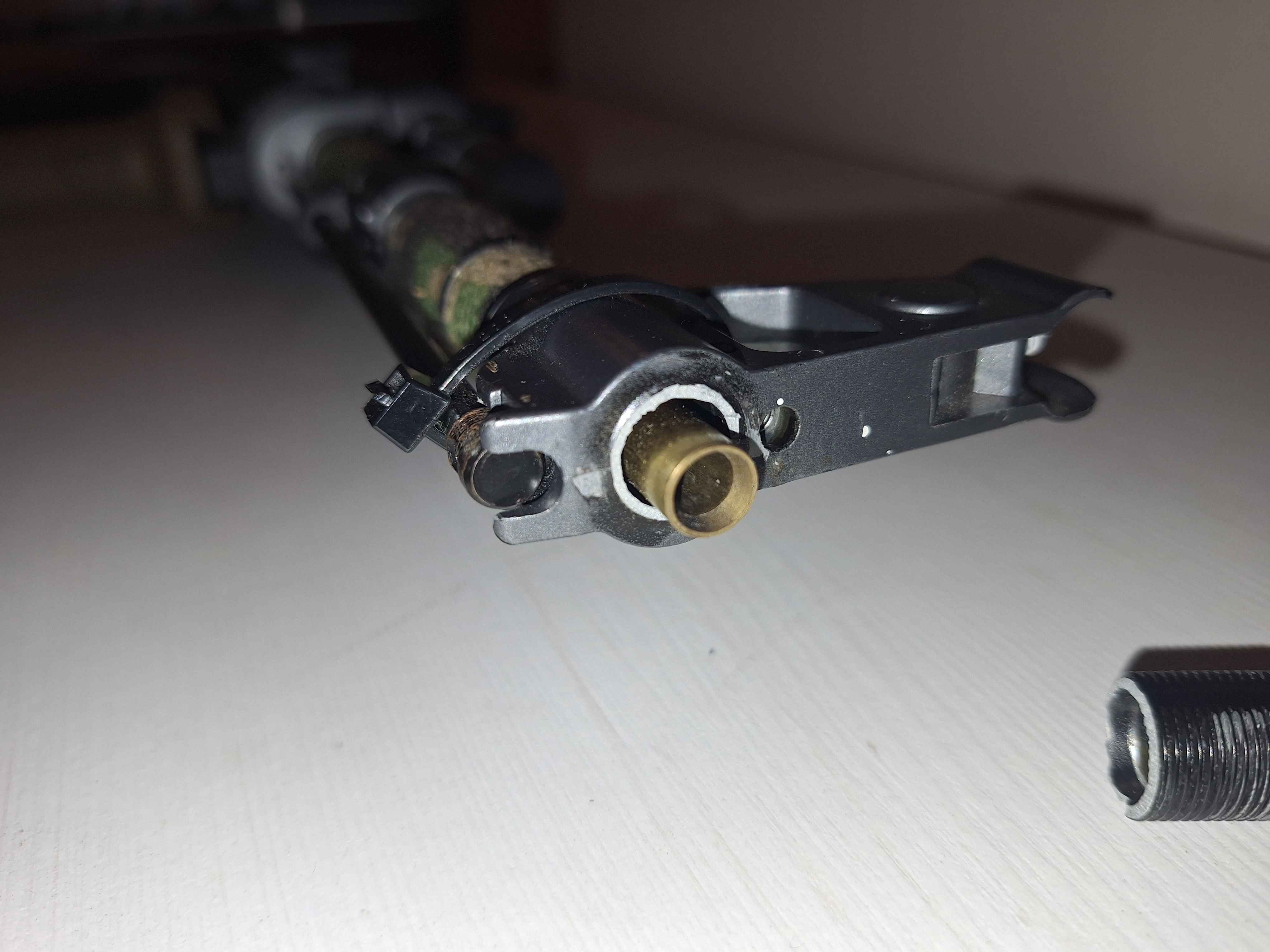 Sprzedam karabinek, który spędził ze mną ok 15 strzelanek. Wszystko stock'owe. REPLIKA NIE POSIADA GWINTU! Niestety miałem zamontowany tłumik i replika upadła na niego odłamując gwint. To chyba jedyne uszkodzenie w tej replice. Replika strzela bardzo celnie, wystrzeliwuje ok. 410 FPS. Nigdy nie miałem z nią problemów. Sprzedaję ponieważ przeniosłem się na lepszą replikę, ta była tylko sprawdzianem, czy polubię przygodę z ASG. Innym początkującym też polecam, ta replika pomimo braku gwintu na spokojnie nada się na lasówki. Do repliki dorzucam magazynek Hi-cap, magazynek Mid-cap, uchwyt Delta Armory [tan], oryginalne pudełko z wyciorem, odłamany gwint oraz klucz do szczerbinki. Możliwość wysyłki kurierem za opłatą.